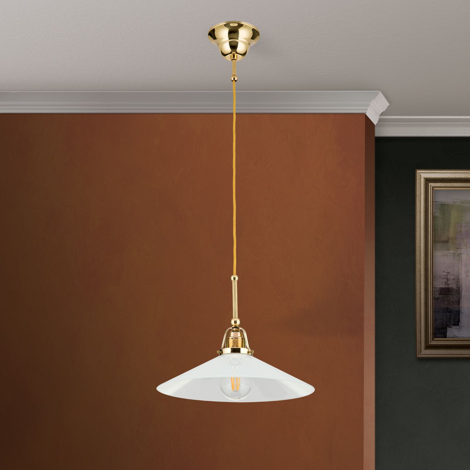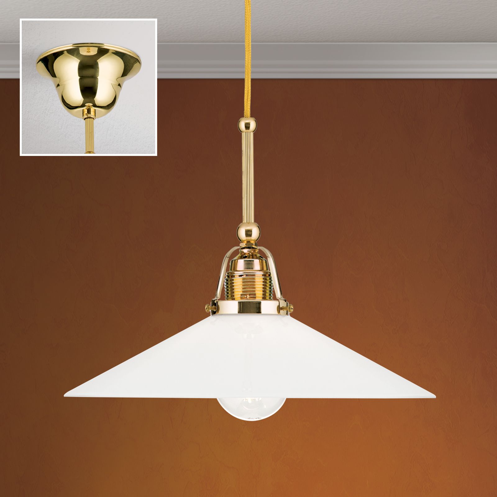 ARTDESIGN závěsné svítidlo, 1 světlo, lesklá mosaz, s opálovým sklem