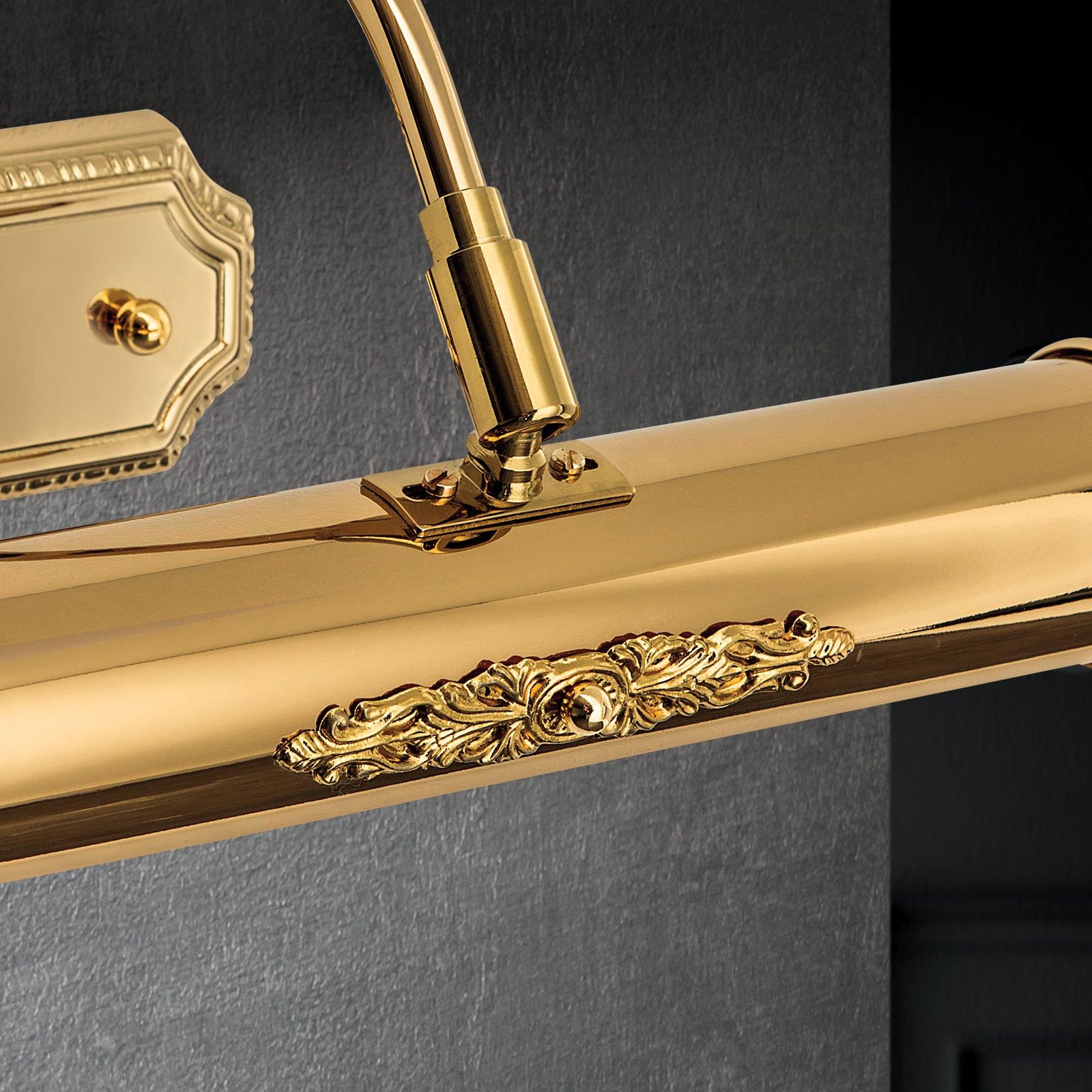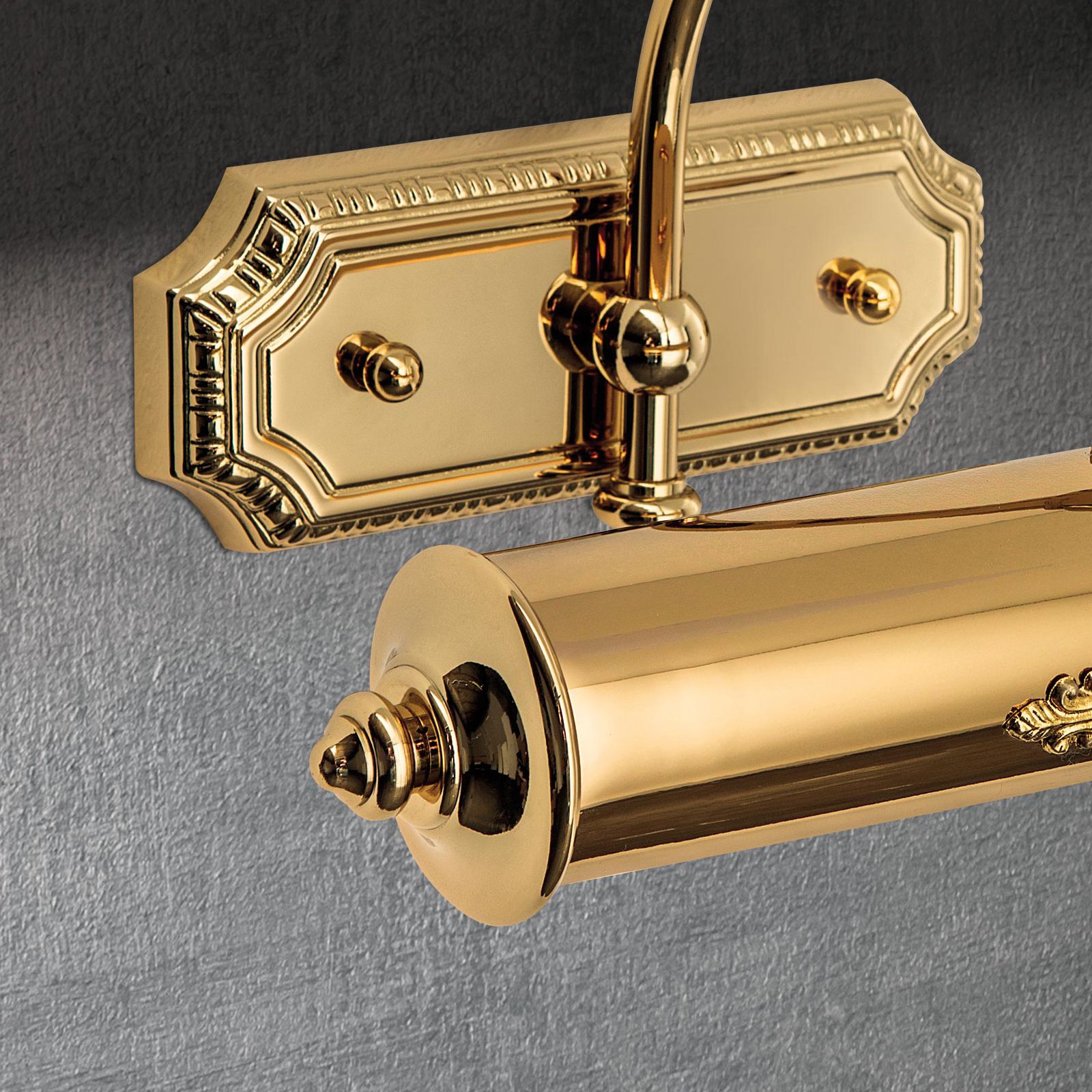 Odpovídající prezentace kreseb, uměleckých tisků nebo maleb je dosaženo pomocí obrazového světla od vídeňského výrobce osvětlení ORION, které staví hodnotná umělecká díla do správného světla. Díky svému stylovému, starožitnému vzhledu dokonale ladí se starožitnostmi a klasickým nábytkem. Dekorativní deska pro montáž lampy, stínidlo a tyč jsou vyrobeny z masivní mosazi a jsou k dispozici se zlatou nebo ručně stínovanou patinou. Vnitřní strana stínidla je natřena bílou barvou, která odráží světlo a prospívá osvětlení objektu. Kloub, ke kterému je stínítko připevněno, umožňuje vyrovnání hlavy lampy a přizpůsobení světelného paprsku velikosti a poloze osvětlovaného předmětu. Toto nástěnné svítidlo, které je vybaveno 2 paticemi G9 a může být provozováno s maximálním výkonem 28 wattů na jednu patici, se vyznačuje vysokou kvalitou a odolností.