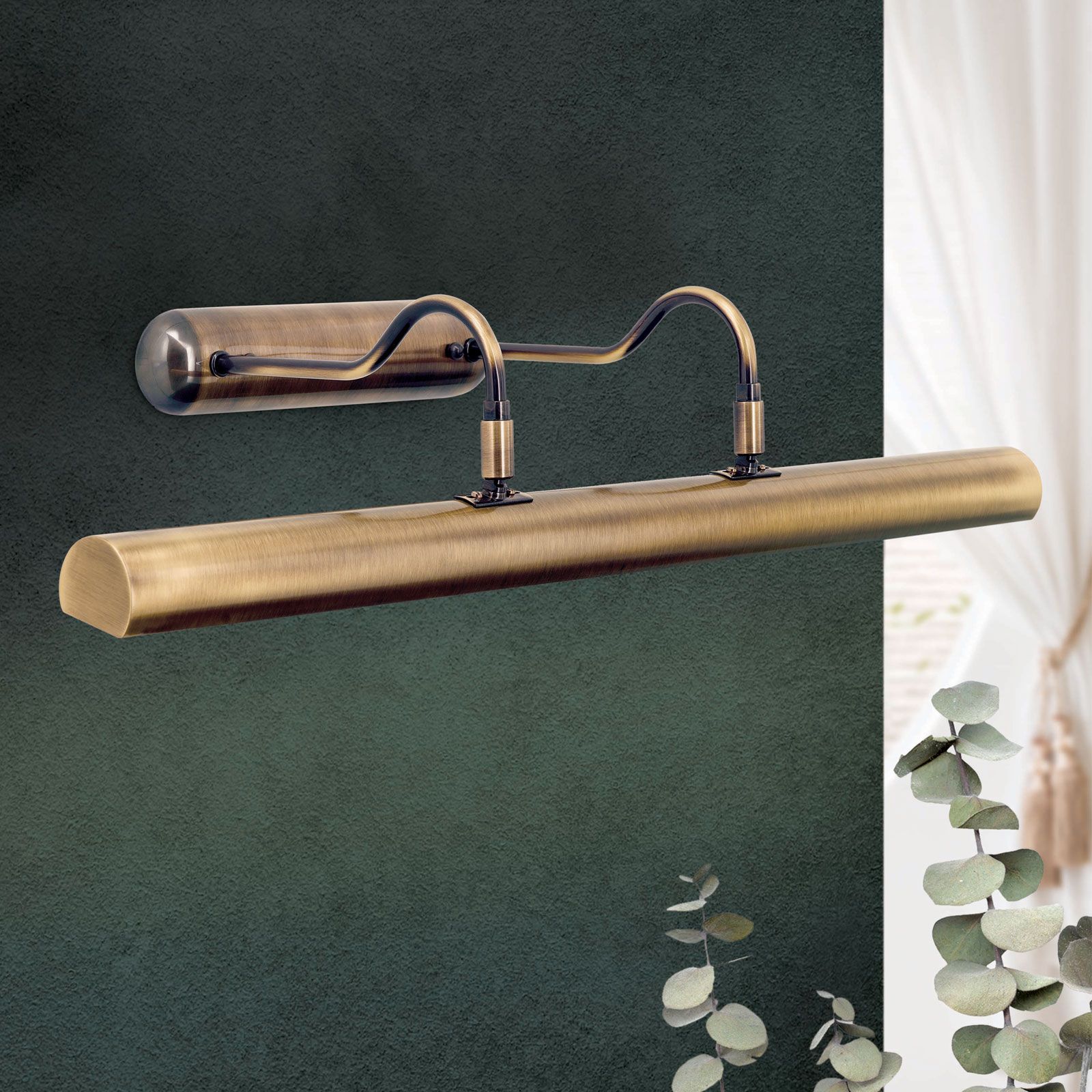 Optimální inscenace velkoformátových obrazů je dosažena tříplamenným obrazovým světlem o délce 65 centimetrů. Vnitřní strana stínidla je natřena bílou barvou a slouží jako reflektor, který zesiluje světlo. Vzhledem k tomu, že ramena lampy jsou vybavena klouby, lze světelný kužel stínidla vyrovnat s objektem pouhým otočením. Kromě těchto funkčních vlastností zaujme nástěnné a zrcadlové svítidlo svou elegantní estetikou a vynikající kvalitou zpracování. Nástěnná ozdobná deska, tyče a stínidlo jsou vyrobeny z masivní mosazi a jsou k dispozici s povrchovou úpravou v matné mosazi nebo patině a jejich kombinace tvoří trvanlivý světelný objekt vyrobený v továrně na osvětlení ORION ve Vídni. Zrcadlo a obrazové světlo má 3 patice E14 a může být vybaveno maximálně 40 watty na jednu patici. Pro cenné umělecké předměty se doporučují LED lampy s nízkým vývinem tepla a dobrým podáním barev.