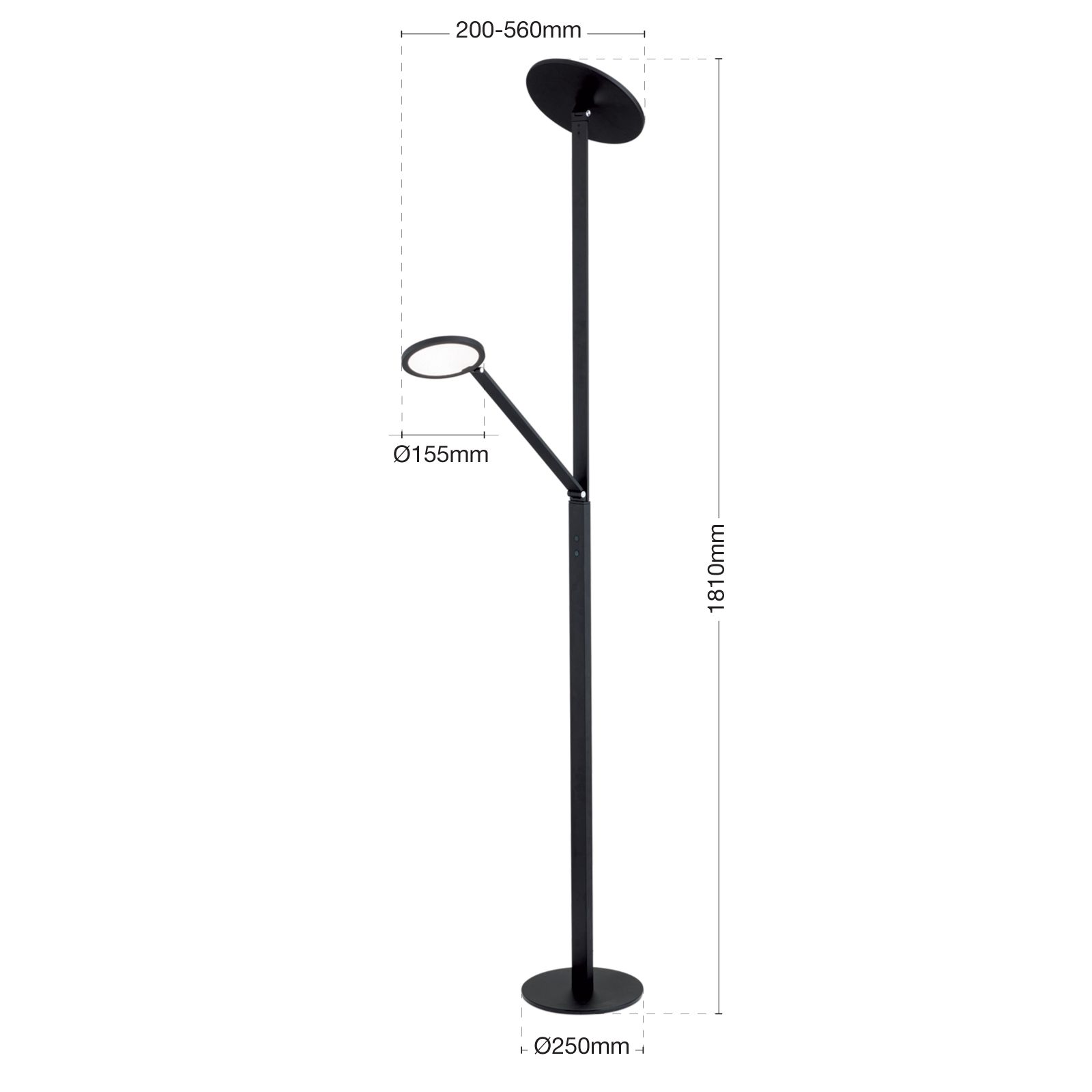 LED Stojací lampa FATI, s lampičkou na čtení, černá