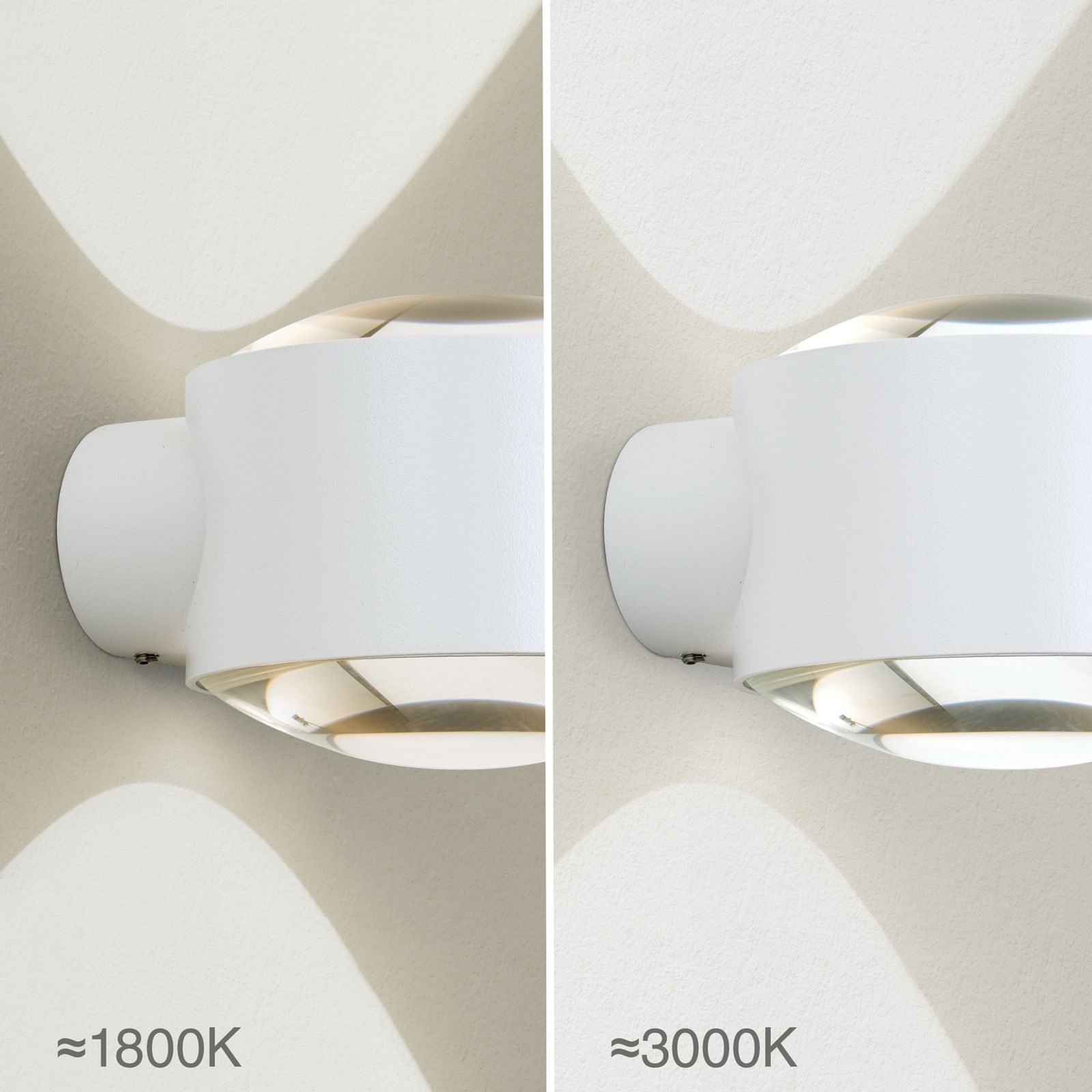 Inovativní technologie Dim to Warm vám umožní flexibilně regulovat osvětlení. Rozsah barevné teploty 1800 až 3000 kelvinů umožňuje regulovat jas a teplotu světla podle vašich potřeb a vytvářet příjemnou atmosféru. Nástěnné svítidlo TATRA svítí směrem nahoru i dolů, čímž zajišťuje rovnoměrné a stylové osvětlení vašich vnějších stěn.