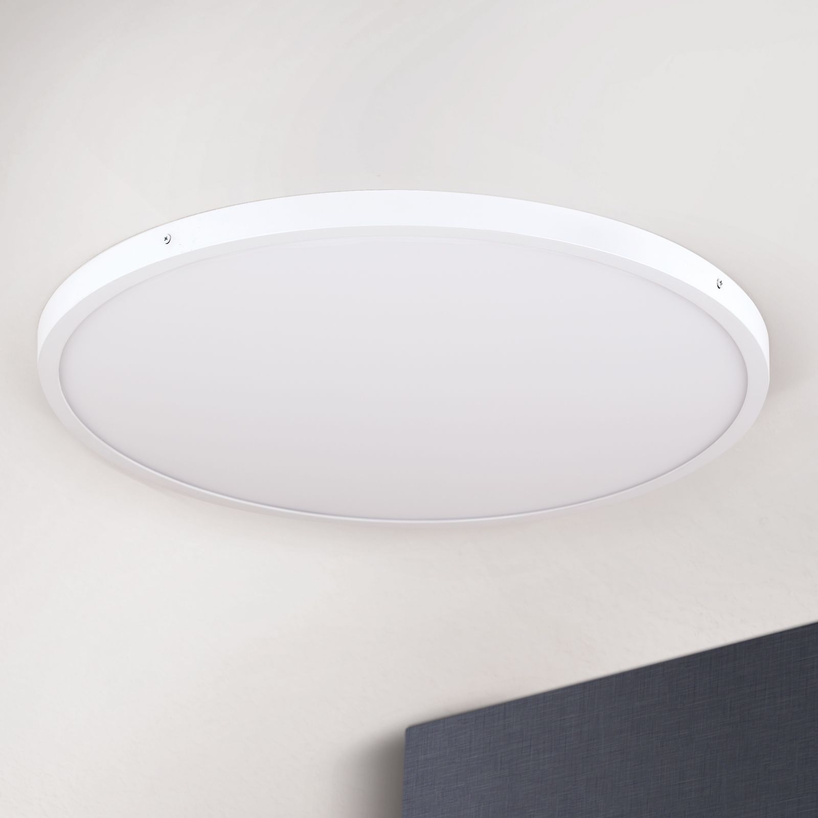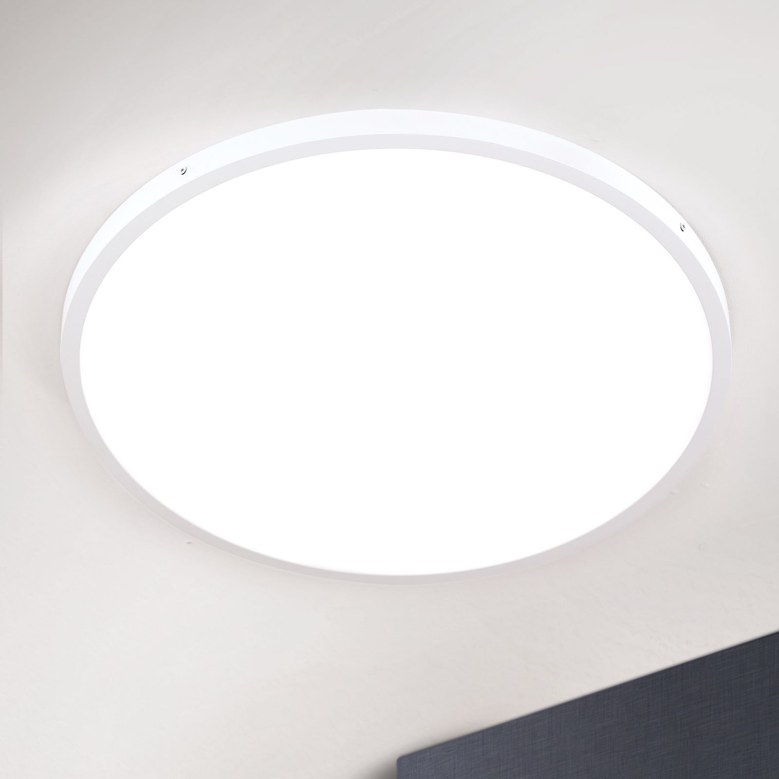 V ultra plochém stropním svítidle LERO s výškou pouhých 2,9 centimetru a průměrem 60 centimetrů je instalováno celkem 4 400 lumenů. Díky svému technicky střízlivému vzhledu je ideální do interiérů v puristickém, čistém stylu nebo minimal chic, kde zajišťuje atmosférickou čistotu a klid. Opálově matné akrylátové sklo plynule přechází do bílého svítidla. Žádné zbytečné kudrlinky odvádějí pozornost od jeho plochého, válcového tvaru. Pokud oceníte silné, teplé světlo ve vaší kuchyni, pracovně nebo obývacím pokoji, pak je toto svítidlo perfektní volbou. Jako LED světlo přispívá k udržitelnému osvětlení vašich obytných nebo pracovních prostor, které lze také stmívat.