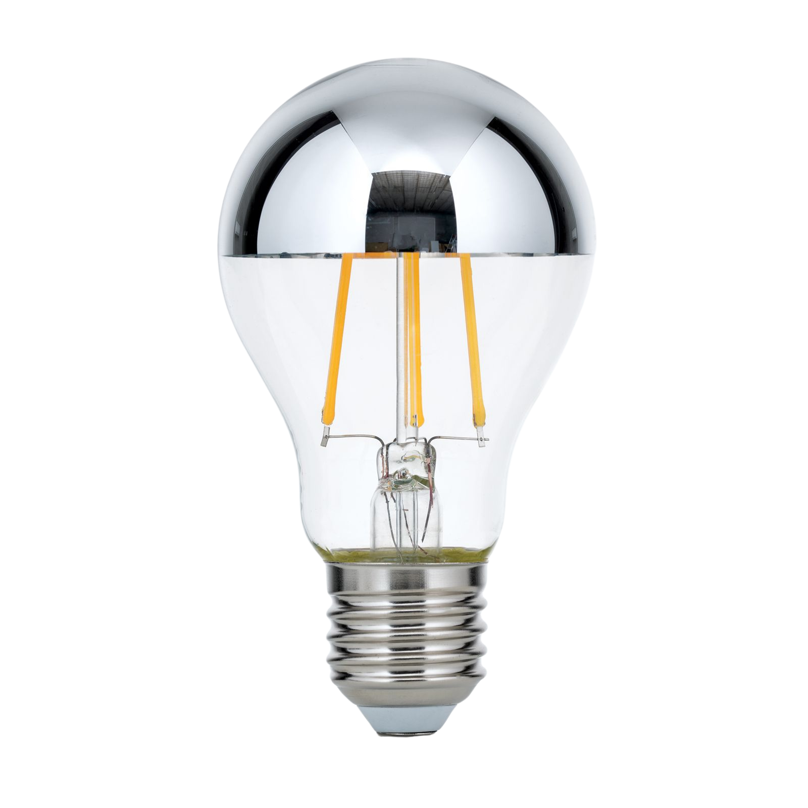 Tato LED lampa je ideální pro všechny typy světel, kde je možný přímý pohled na žárovku. Díky stříbrně zrcadlové hlavě poskytuje tato LED lampa s paticí E27 neoslňující osvětlení. LED lampa je stmívatelná a nabízí teplé bílé světlo (2700 K).
