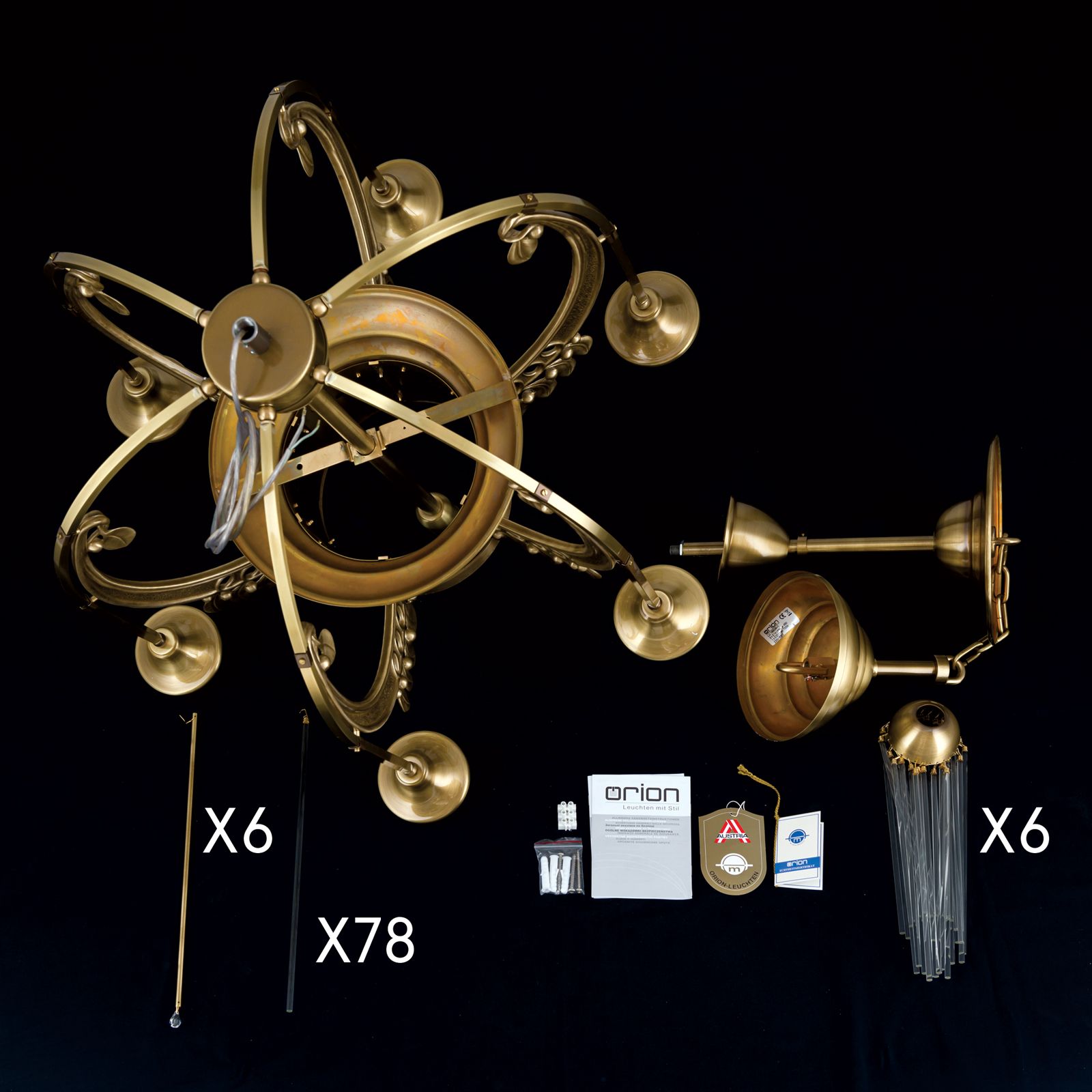Lustr ADELE, 7 plamenů, stará mosaz, s klacíky