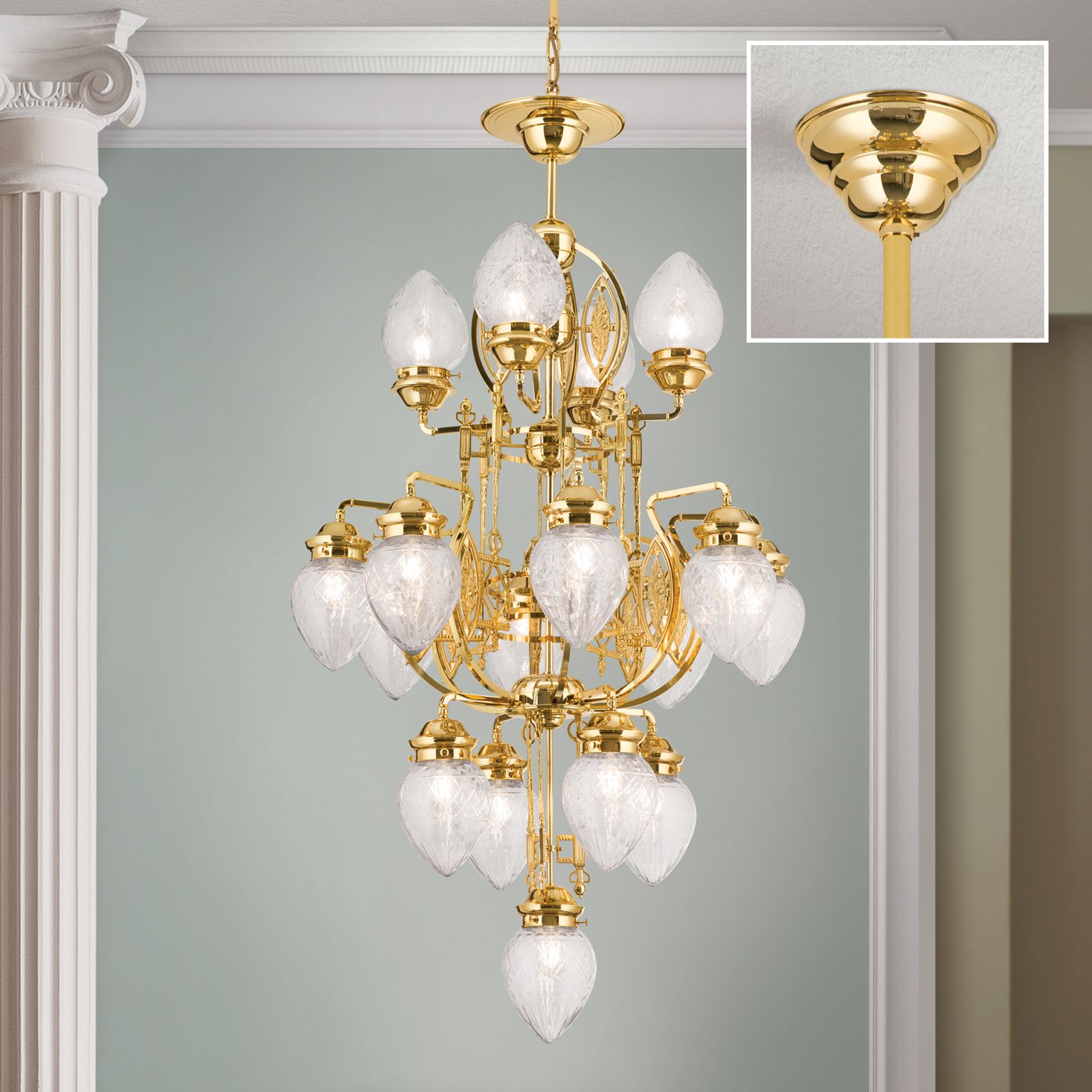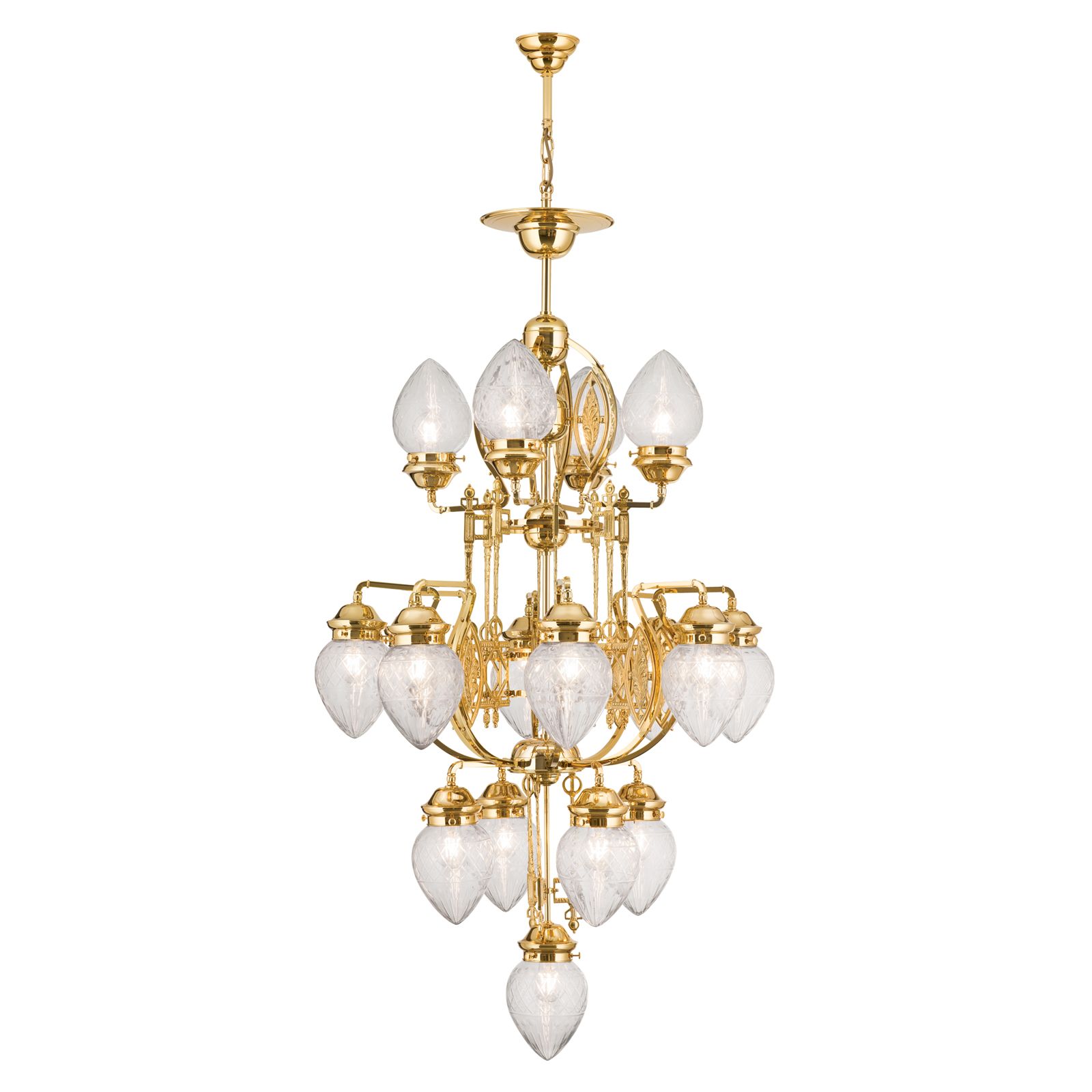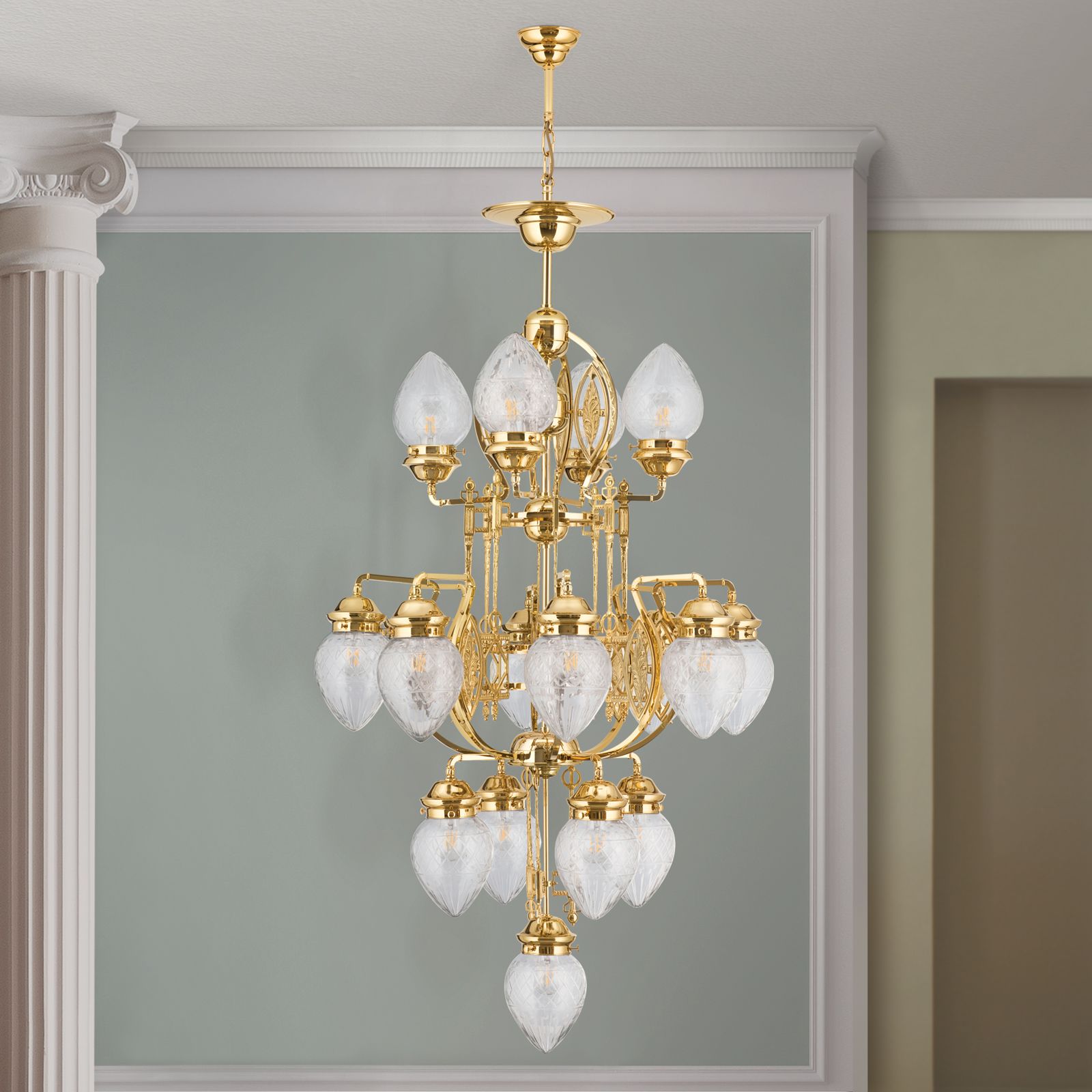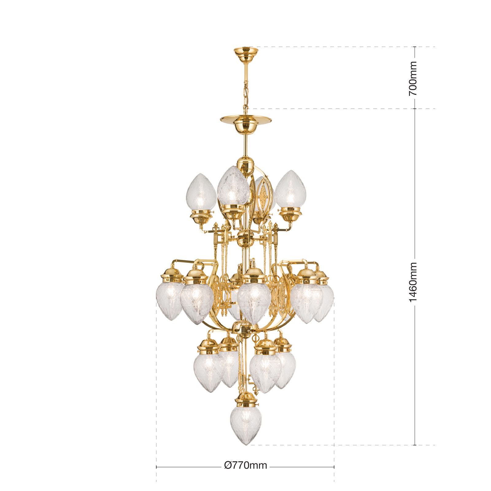 - čtyřpatrový lustr se 17 plameny