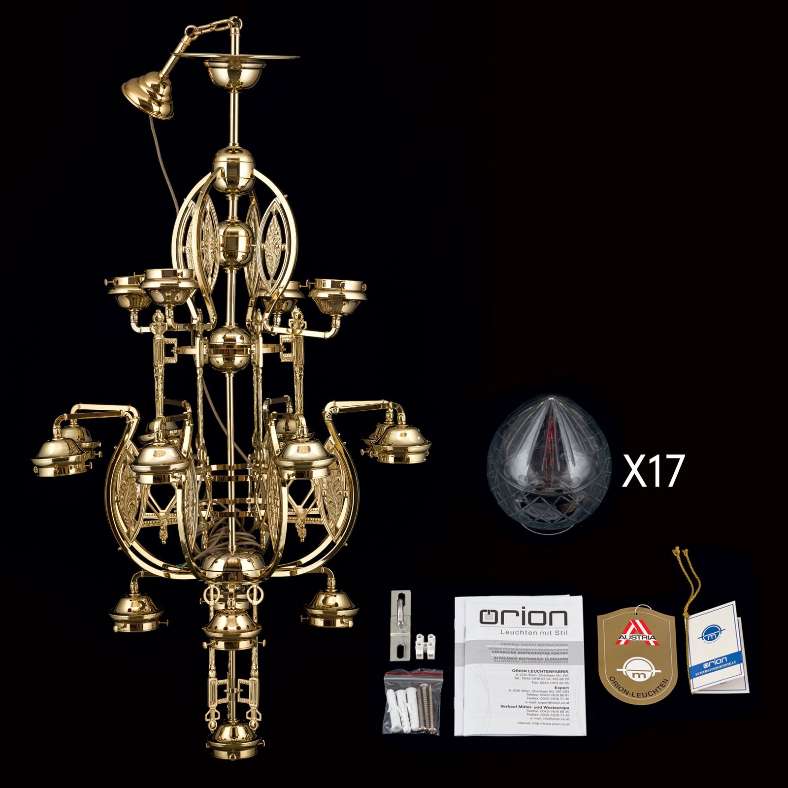 Lustr se 17 plameny ze série BUDAPEST je oslnivou ukázkou symbiózy krásy a užitku. Bujaré šperky vyrobené z prvků secese, baroka a maďarské tradice se snoubí s promyšlenou světelnou úpravou. Horní řada svítí nahoru, největší prstenec světla uprostřed osvětluje místnost kolem dokola. Spodní halo a centrální koncová lampa nasměrují stínidla dolů, aby zajistily dobré osvětlení přímo pod lustrem. V hotelovém atriu, restauraci nebo na bohoslužebném místě s vysokou kupolí tento lustr poskytne světlo a možná i osvícení okamžiky. Lustr má 17 patic E27, každá s maximálním výkonem 60 wattů.
