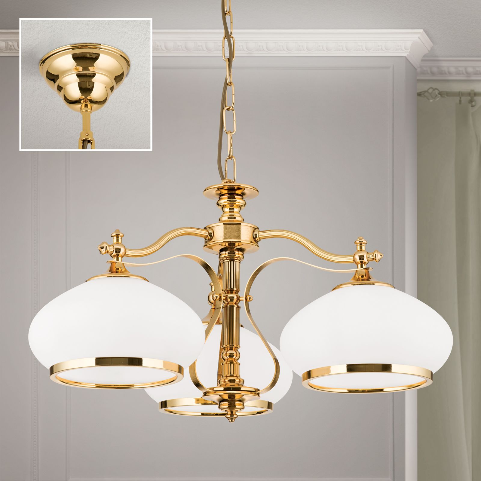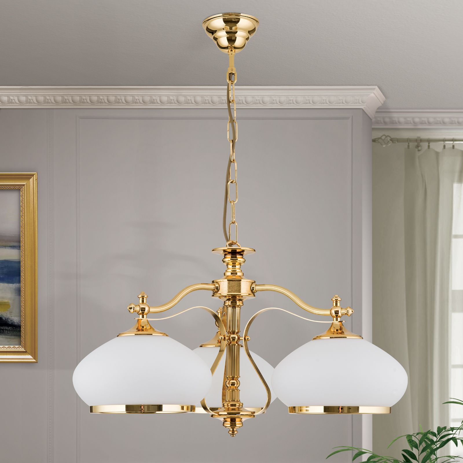 Lustr EMPIRE, 3-žárovkový, zlatý, s opálově zlatými skly