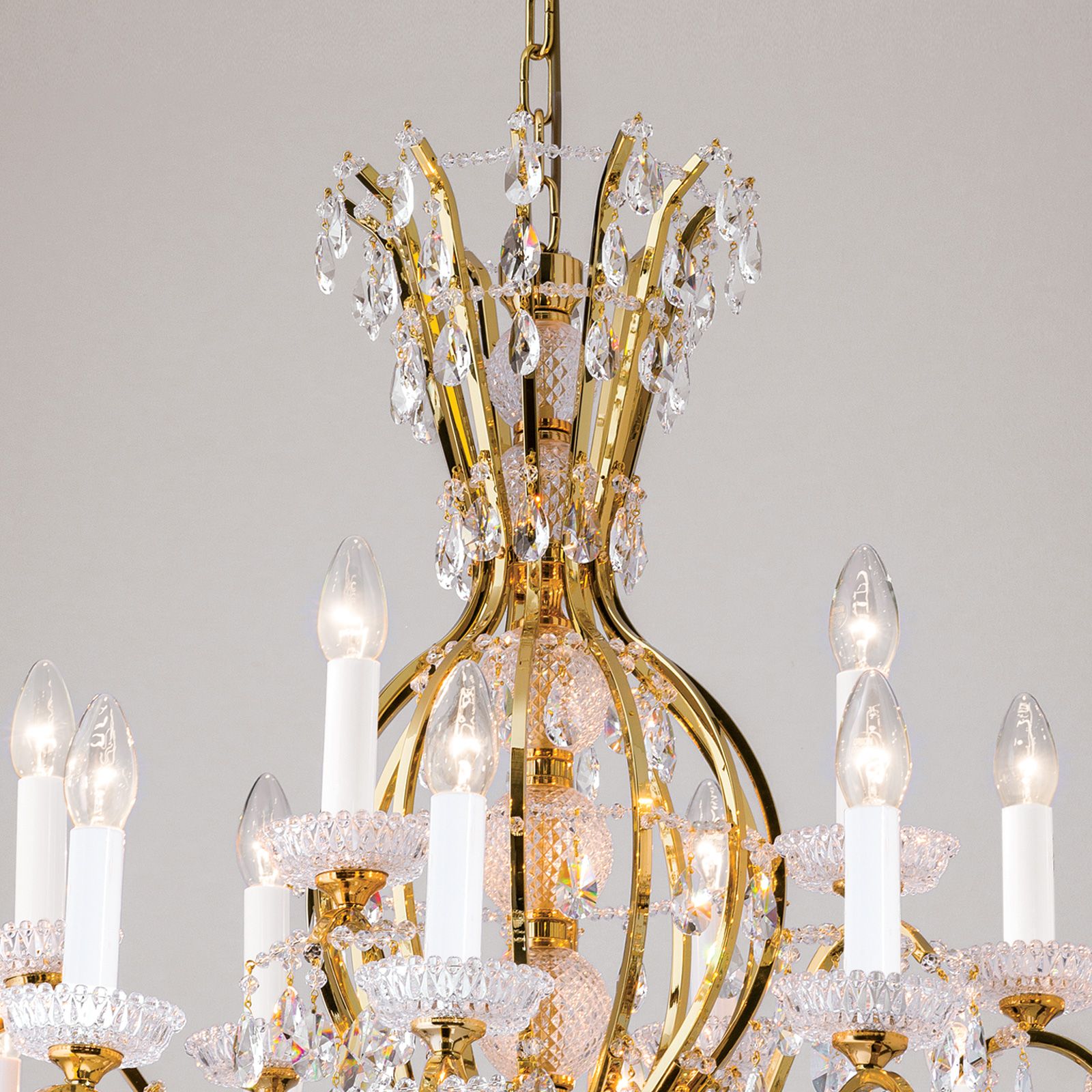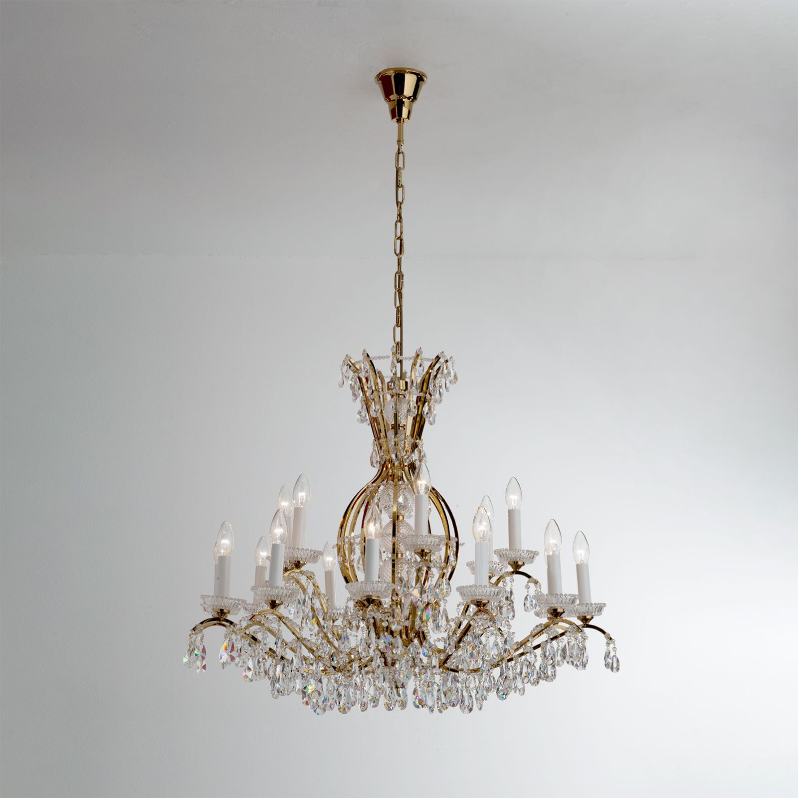 Lustr s 18 plameny ze série HIROHITO potěší nejen japonskou císařskou rodinu. Máte-li velkoryse dimenzované – a dostatečně vysoké – pokoje, můžete se také vyhřívat v císařské nádheře. Dvě úrovně plamenů obklopují střední hřídel ve tvaru sloupku z jemného křišťálu. Pozlacené spony přecházejí do S-oblouků paží, jak je známe z vlámského baroka. Duhové závěsy uzavírají konstrukci ve spodní části a vydávají do místnosti stonásobně třpytivé světlo. Opulentní světelný efekt se krásně kombinuje s měkkými, teplými látkami, matnými barvami stěn nebo gobelíny v elegantních obývacích pokojích nebo přijímacích místnostech. Lustr má osmnáct patic E14, každá s maximálním výkonem 40 wattů. Lustry HIROHITO jsou k dispozici v mnoha různých provedeních.