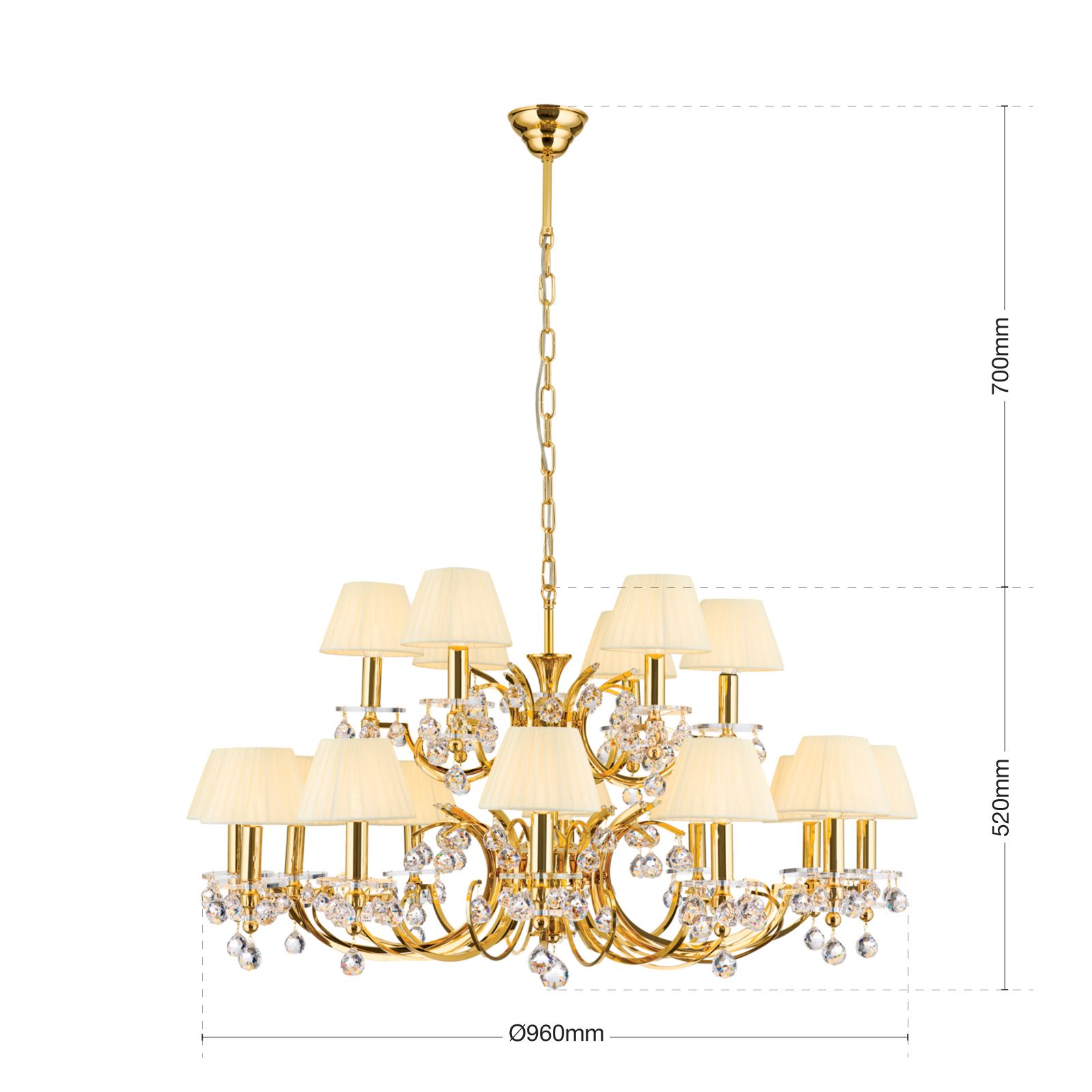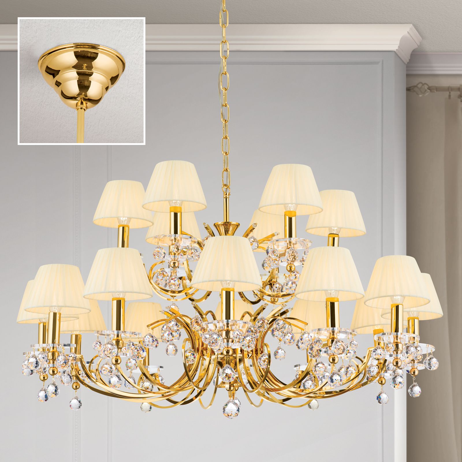 Lustr KRISTALLDESIGN, 18 plamenů, zlatá s odstínem champagne
