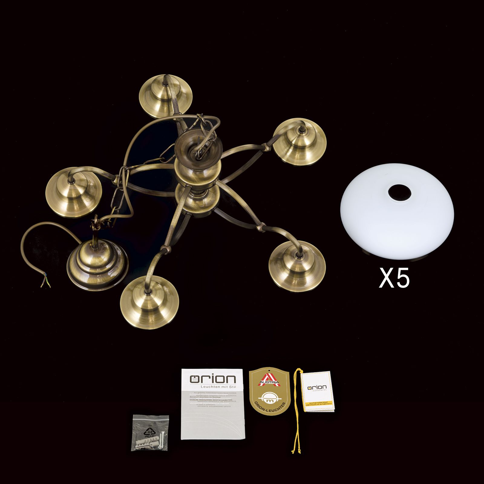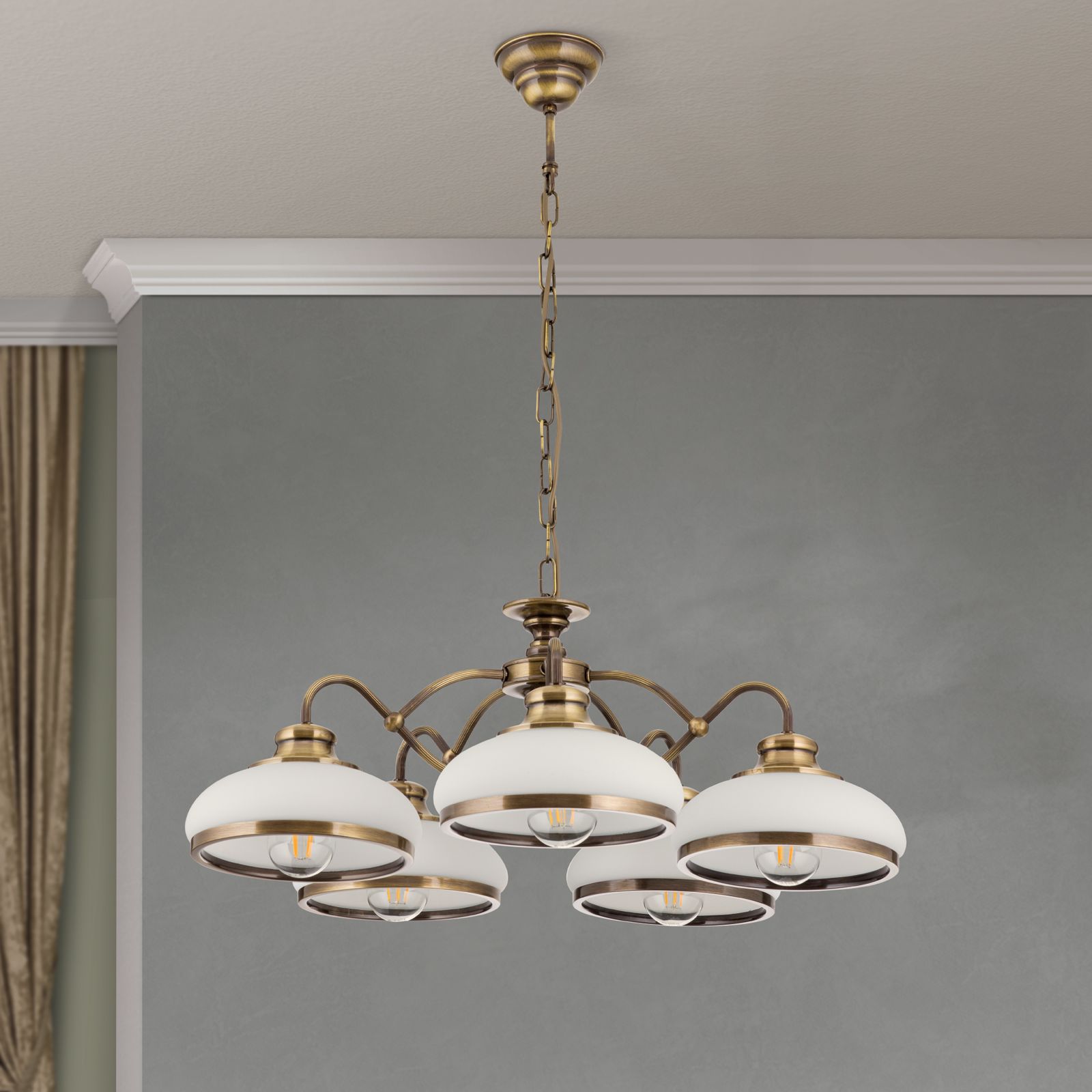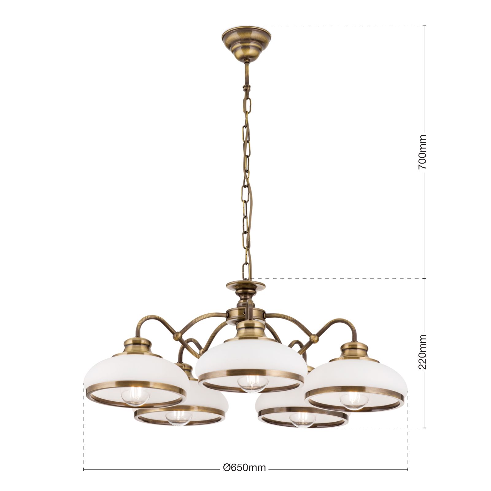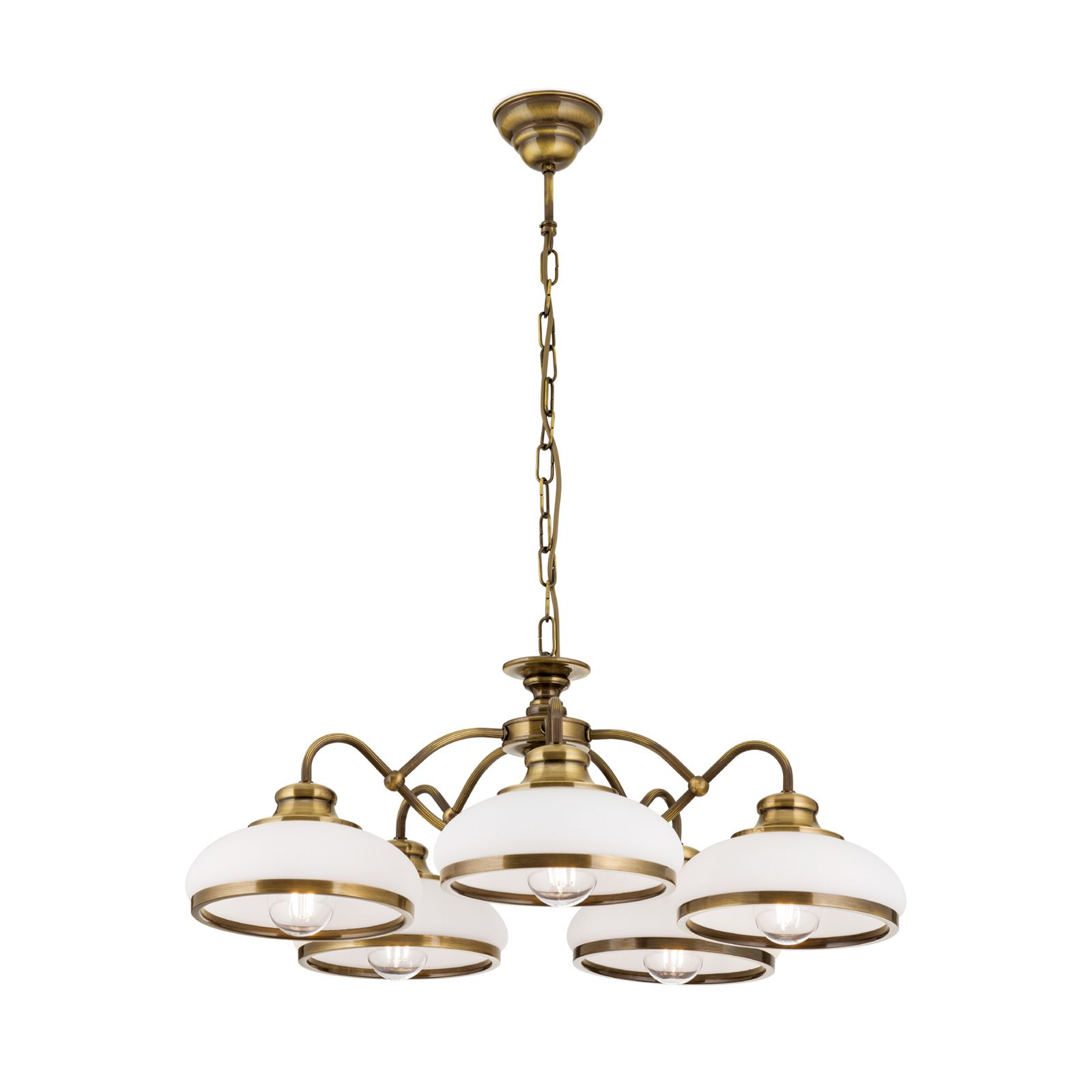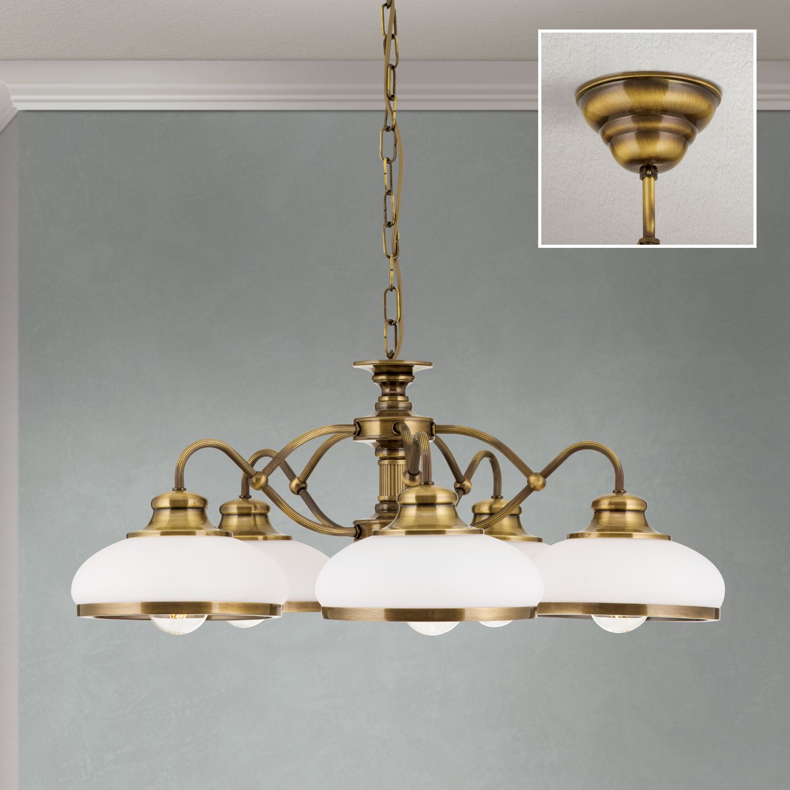 Lustr LANDHAUS, 5 světel, patina, s opálovým sklem