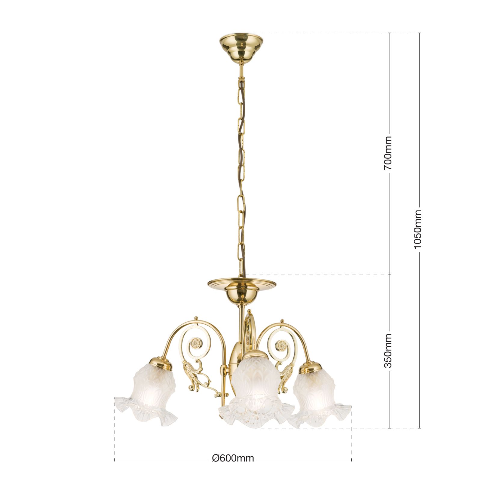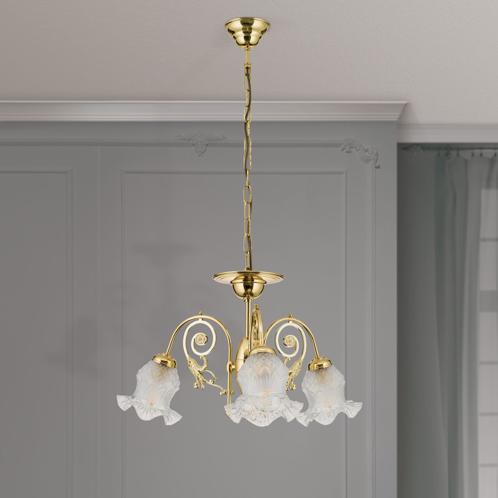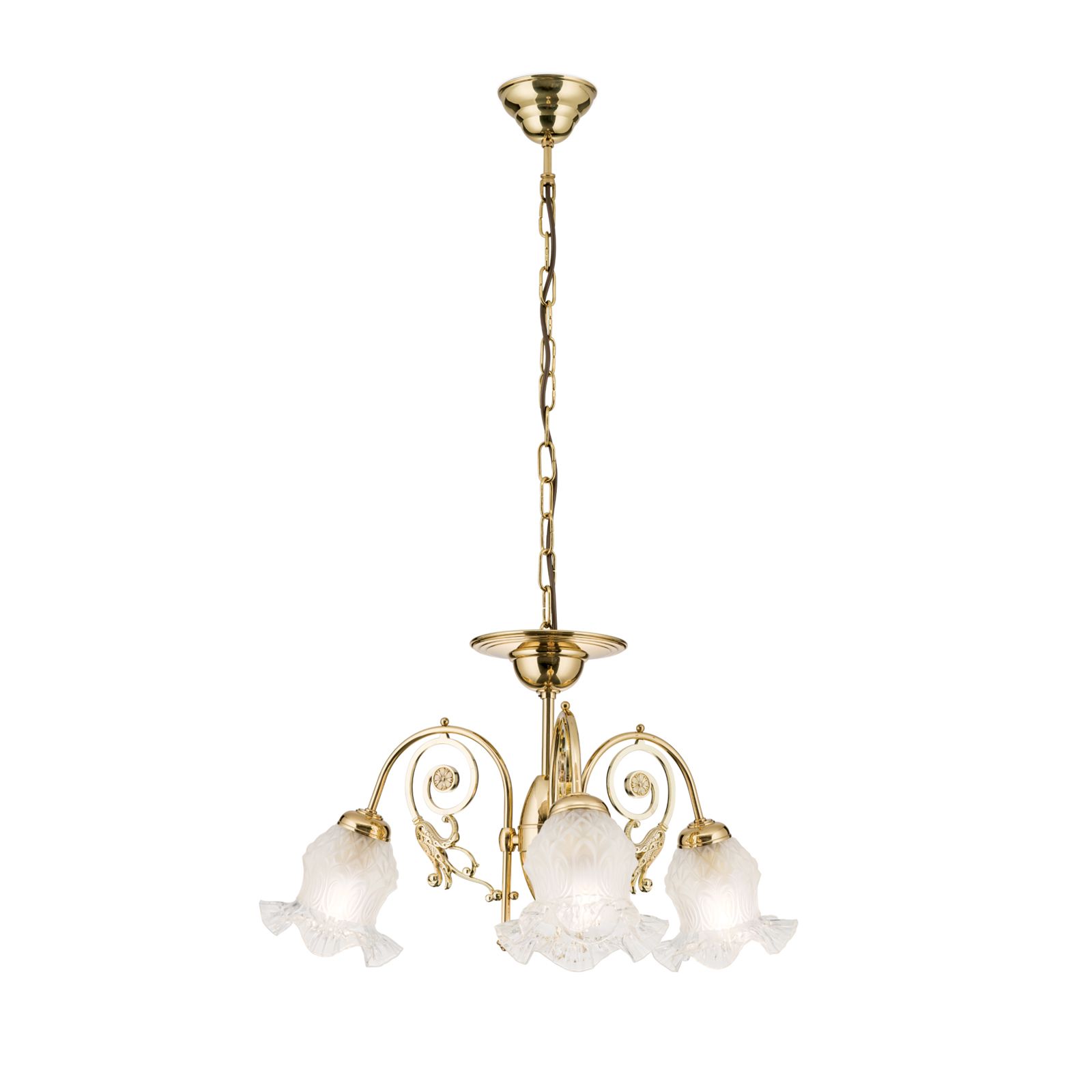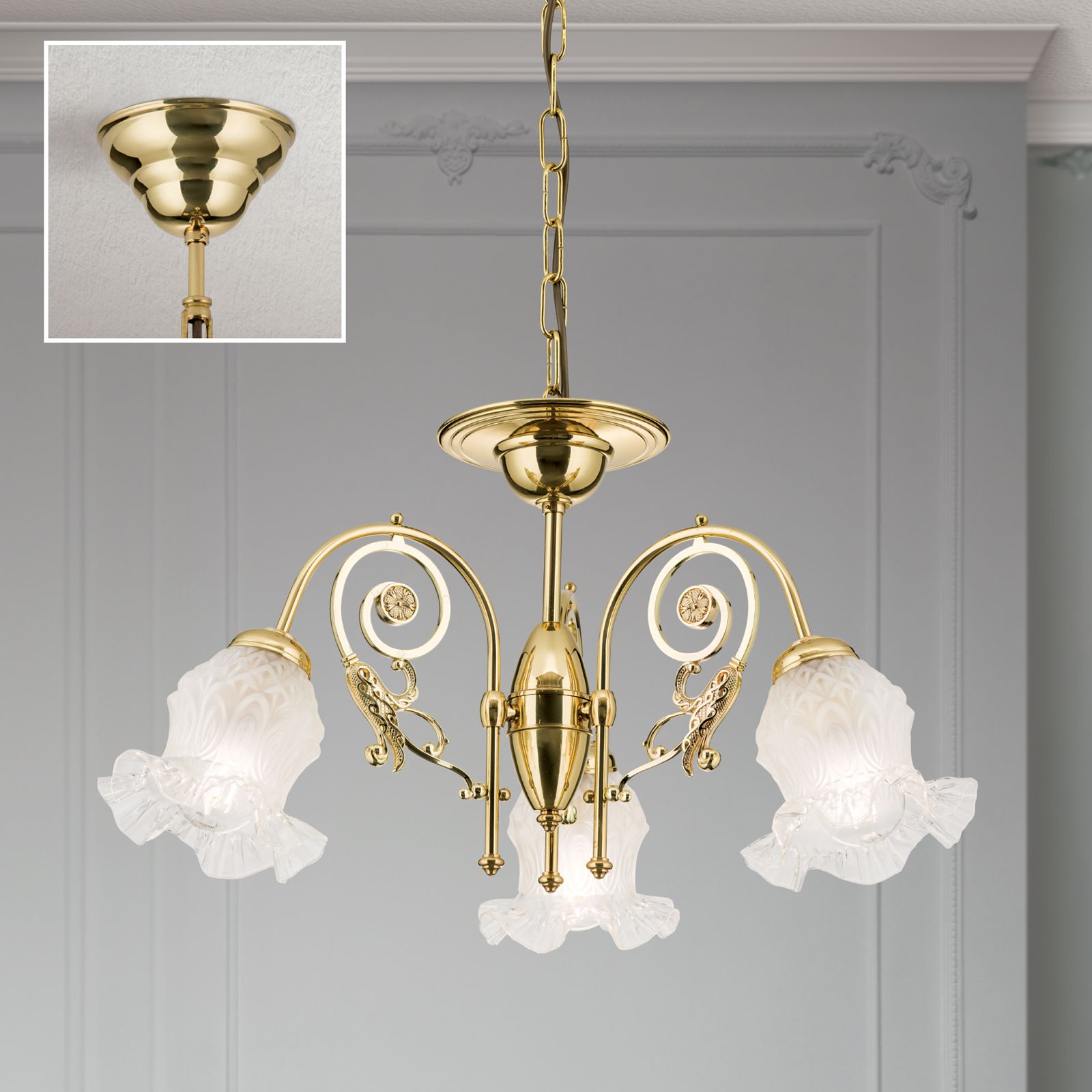 Lustr RINGSTRASSE, 3 světla, lesklá mosaz, s květinovým sklem