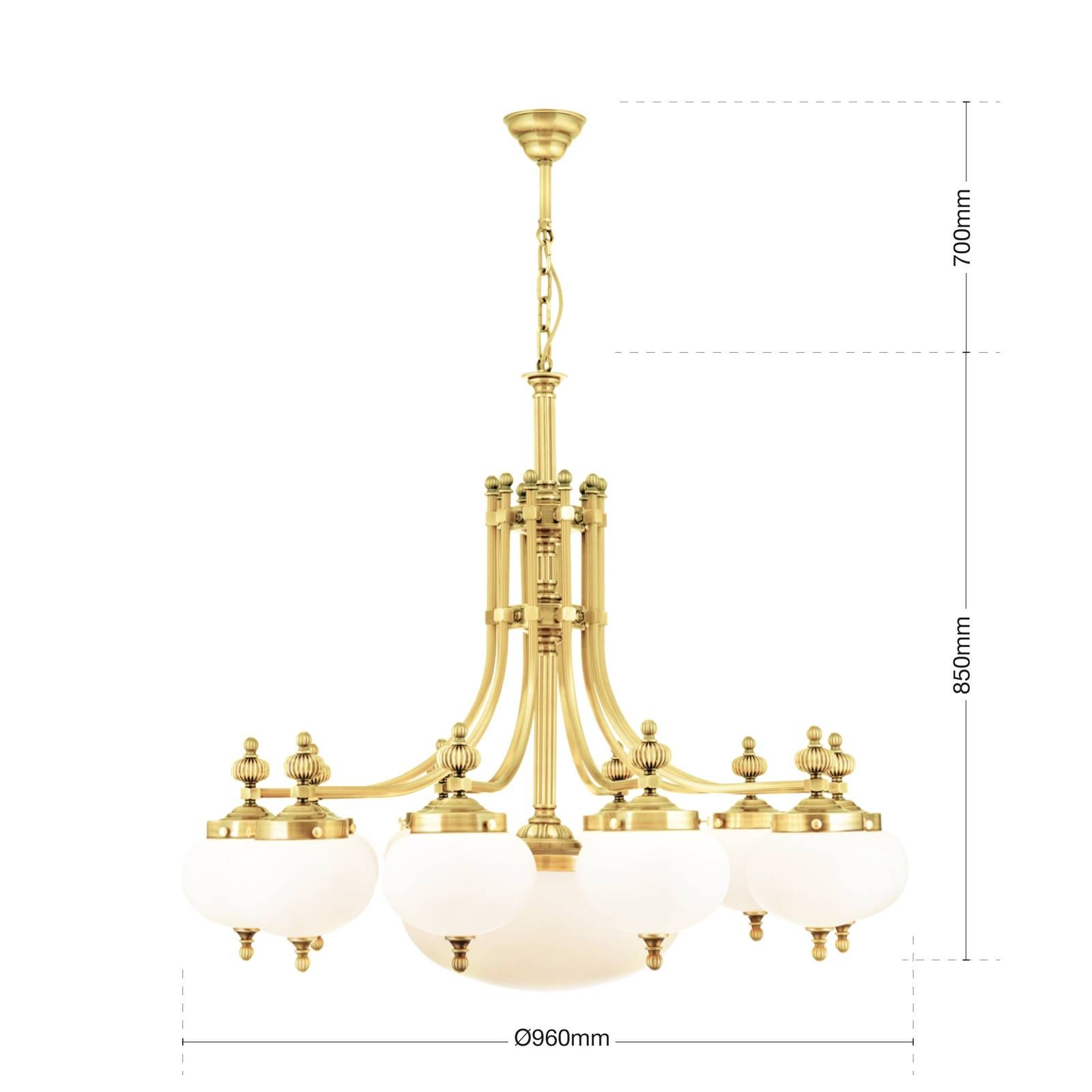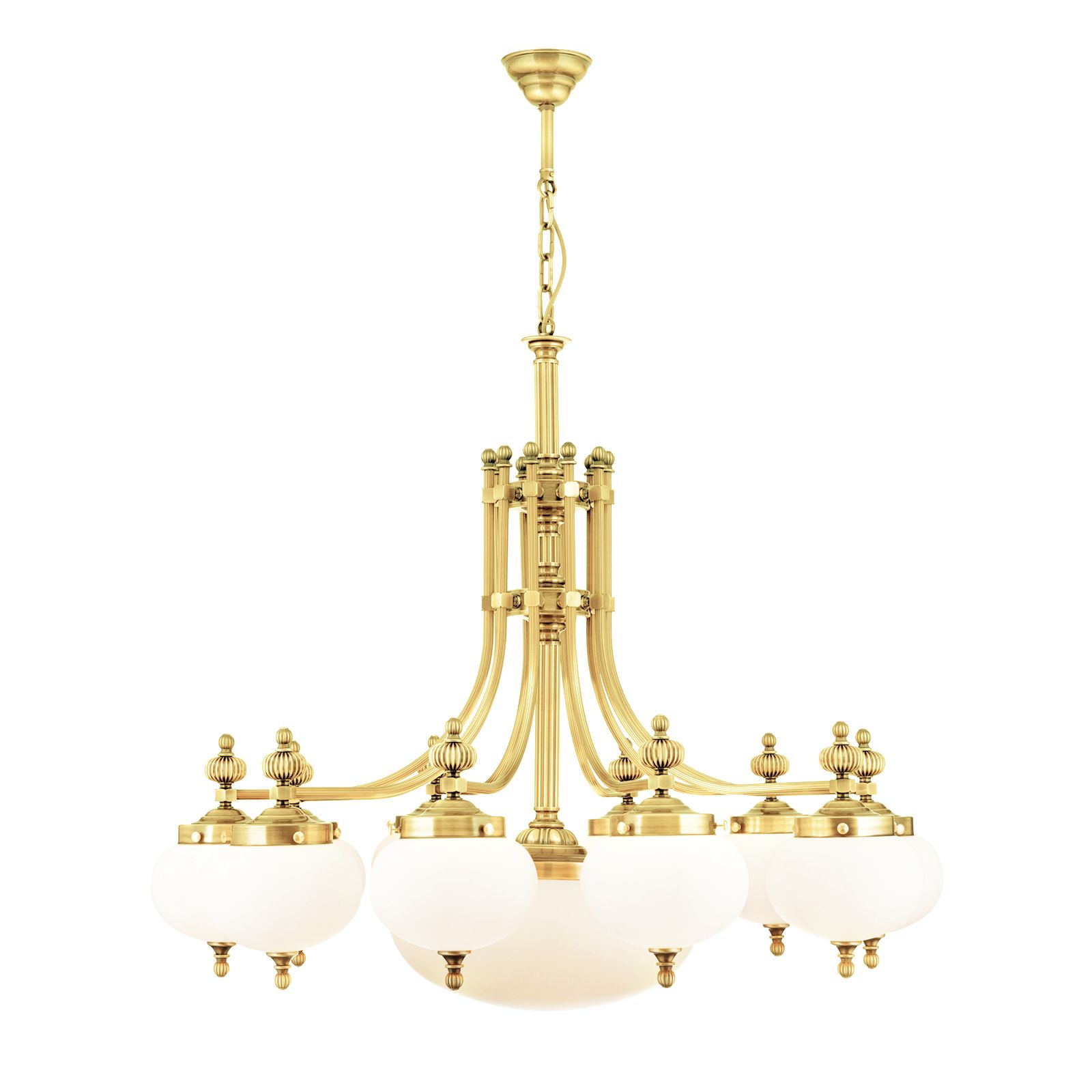 Lustr WIENER NOSTALGIE, 10+1 plamenů, lesklá mosaz, s opálově matnými skly, dolů