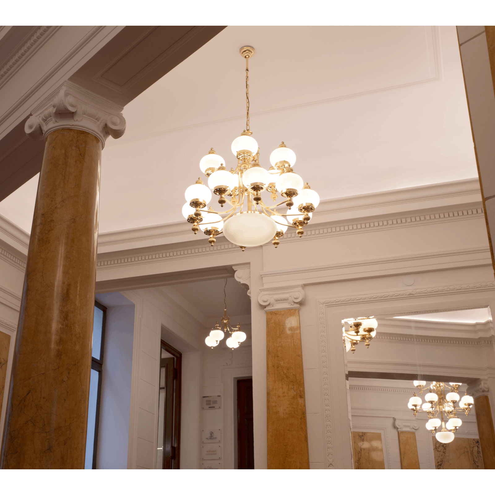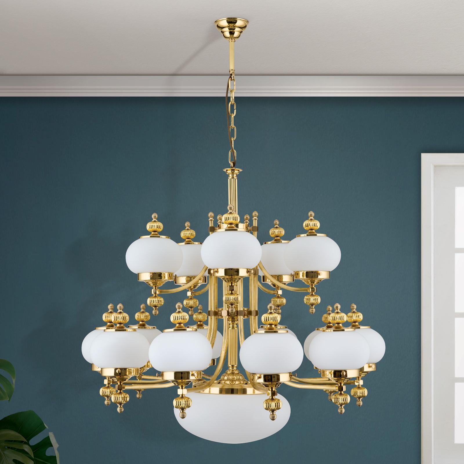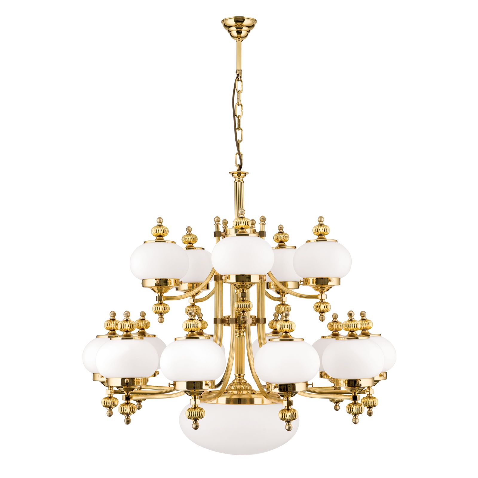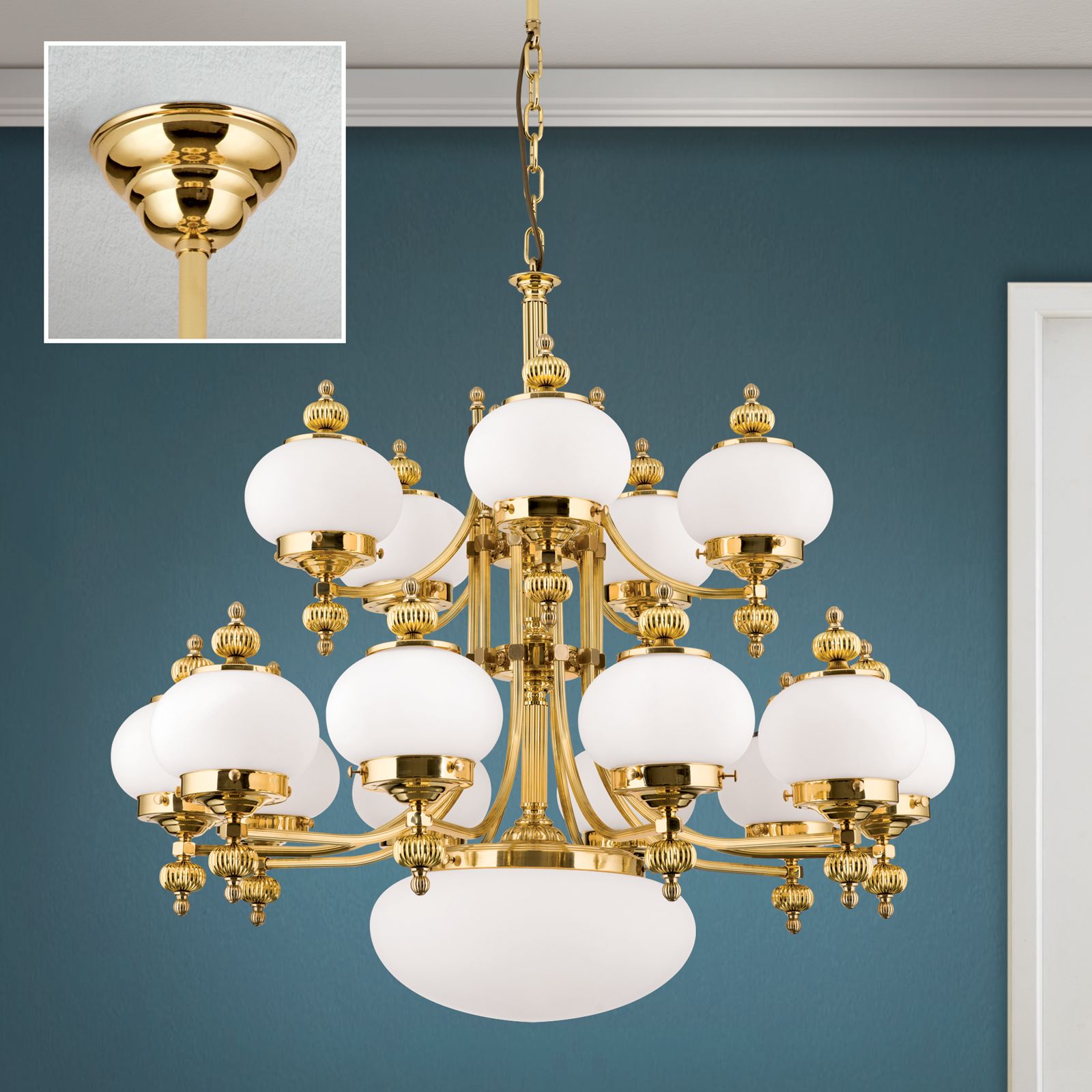 Lustr WIENER NOSTALGIE, 16 plamenů, lesklá mosaz, s opálově matnými skly, nahoru
