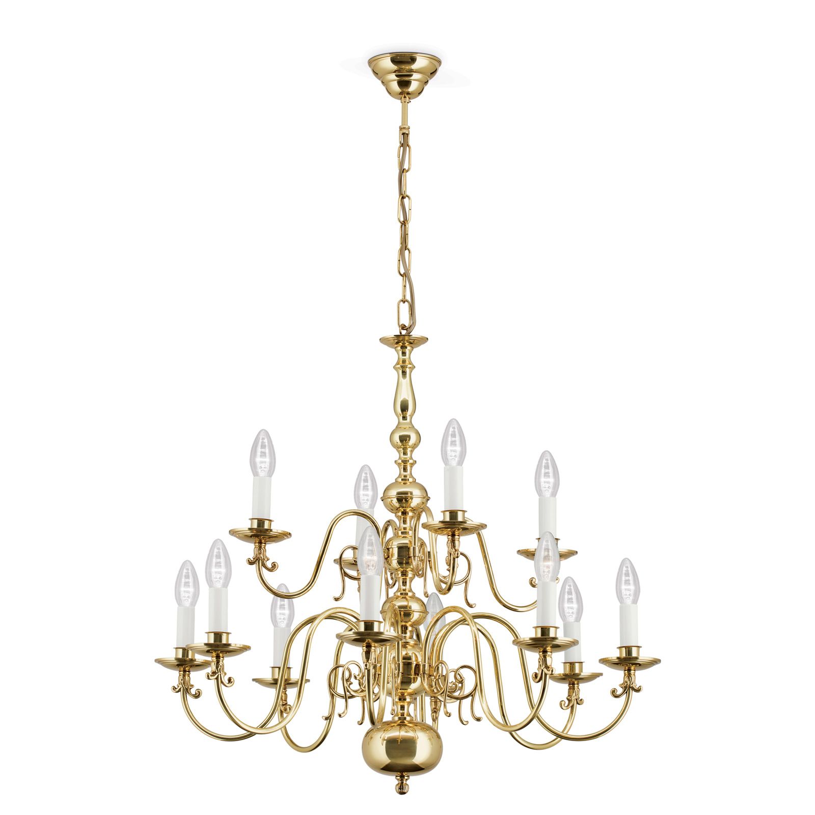 Lustr ve FLÄMISCH stylu, 12 plamenů, lesklá mosaz