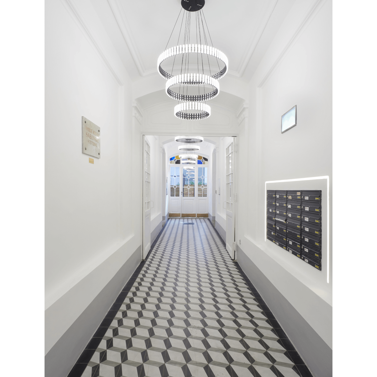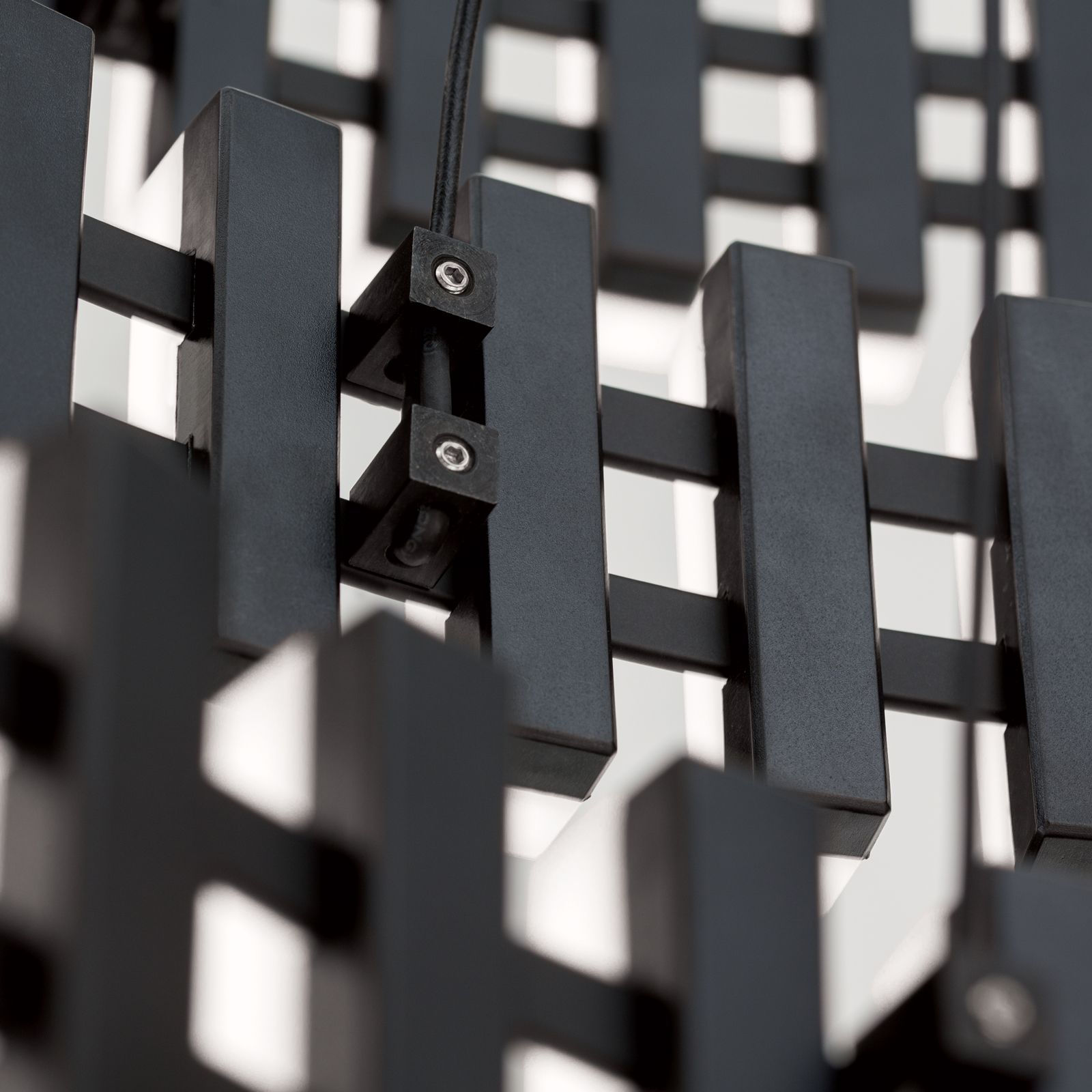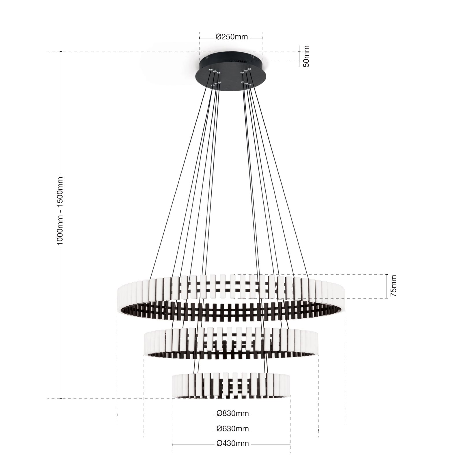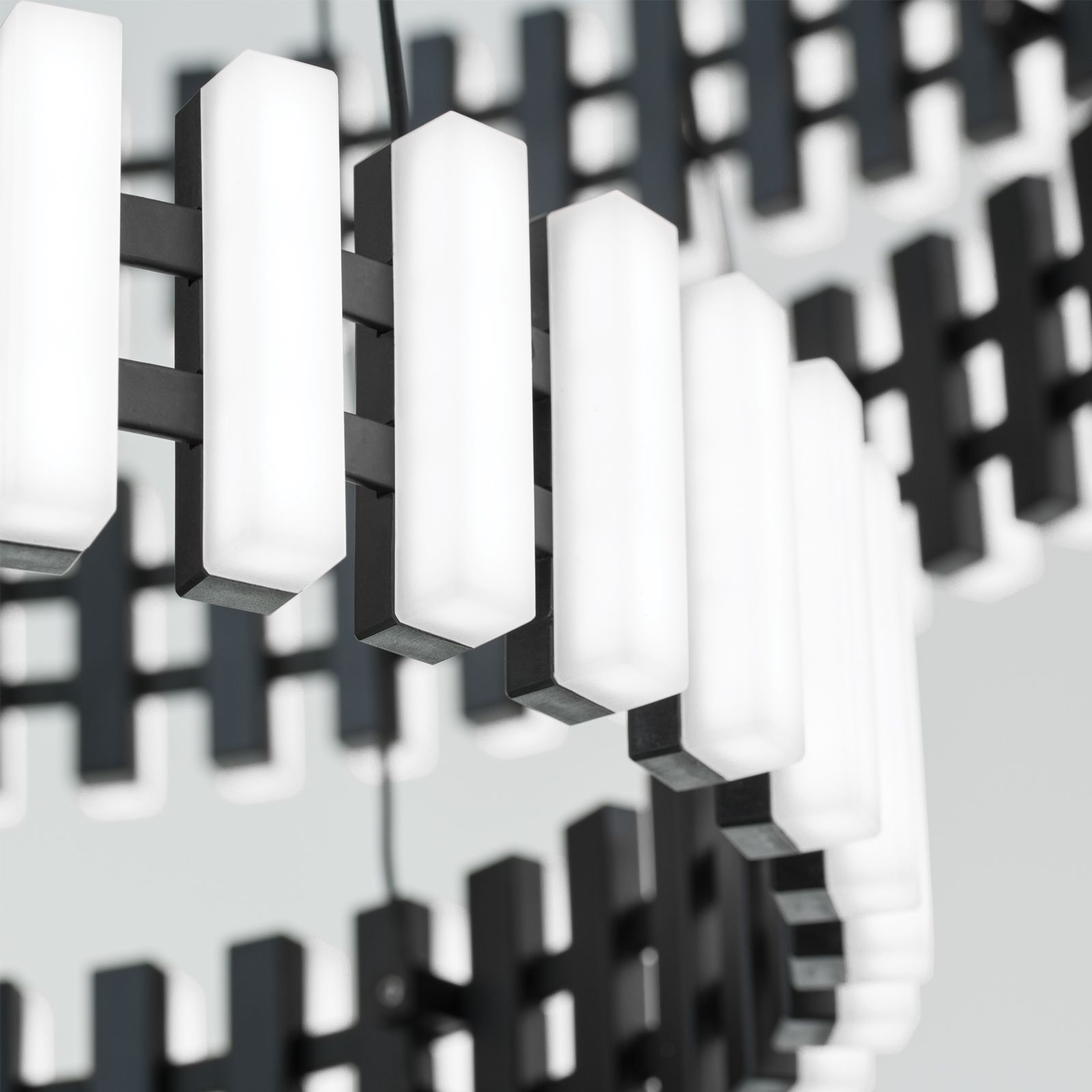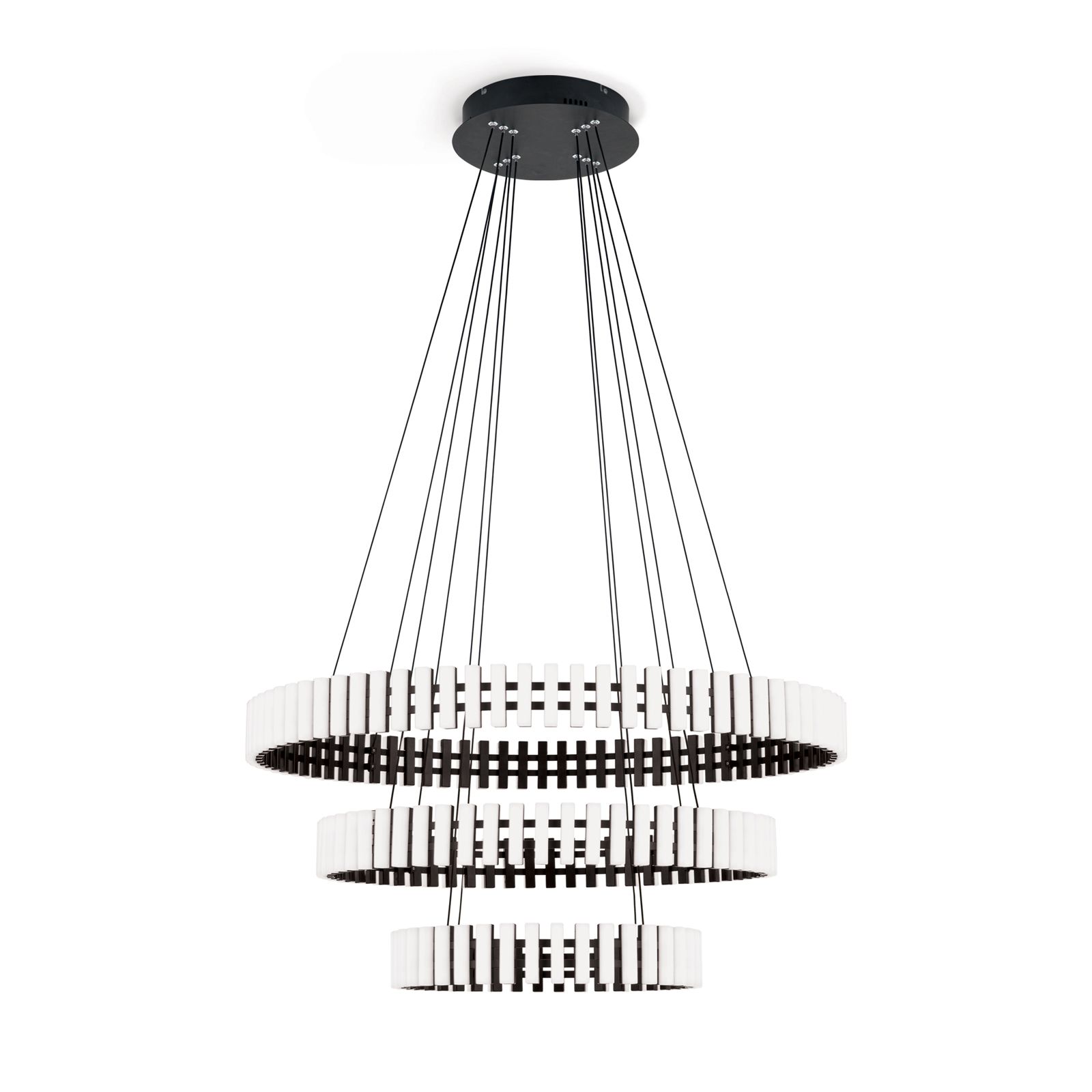 LED závěsné svítidlo MANSION je naprosto mimořádné závěsné svítidlo. Díky svému futuristickému vzhledu se hodí zejména do moderních interiérů. Světelné prvky, které připomínají klávesnici a jsou zevnitř černé a zvenku bílé, jsou uspořádány rovnoměrně vedle sebe, nabízejí vysoce kontrastní interakci a poskytují teplé bílé (3000 Kelvinů) světlo. Světelnou náladu a atmosféru v místnosti lze snadno ovládat v kombinaci se stmívačem zadní hrany nebo LED stmívačem. Celý rám je připevněn na tenkých ocelových lankách, která jsou připevněna k základně. Díky svému enormnímu světelnému výkonu 10 080 lumenů dokáže poskytnout reprezentativní vstupní prostor i prostorné salonky či obývací pokoje s příjemným základním osvětlením. Svítidlo má celkovou výšku 150 cm a průměr 83 cm, který lze v případě potřeby výškově upravit. LED žárovky lze v případě potřeby vyměnit sami.