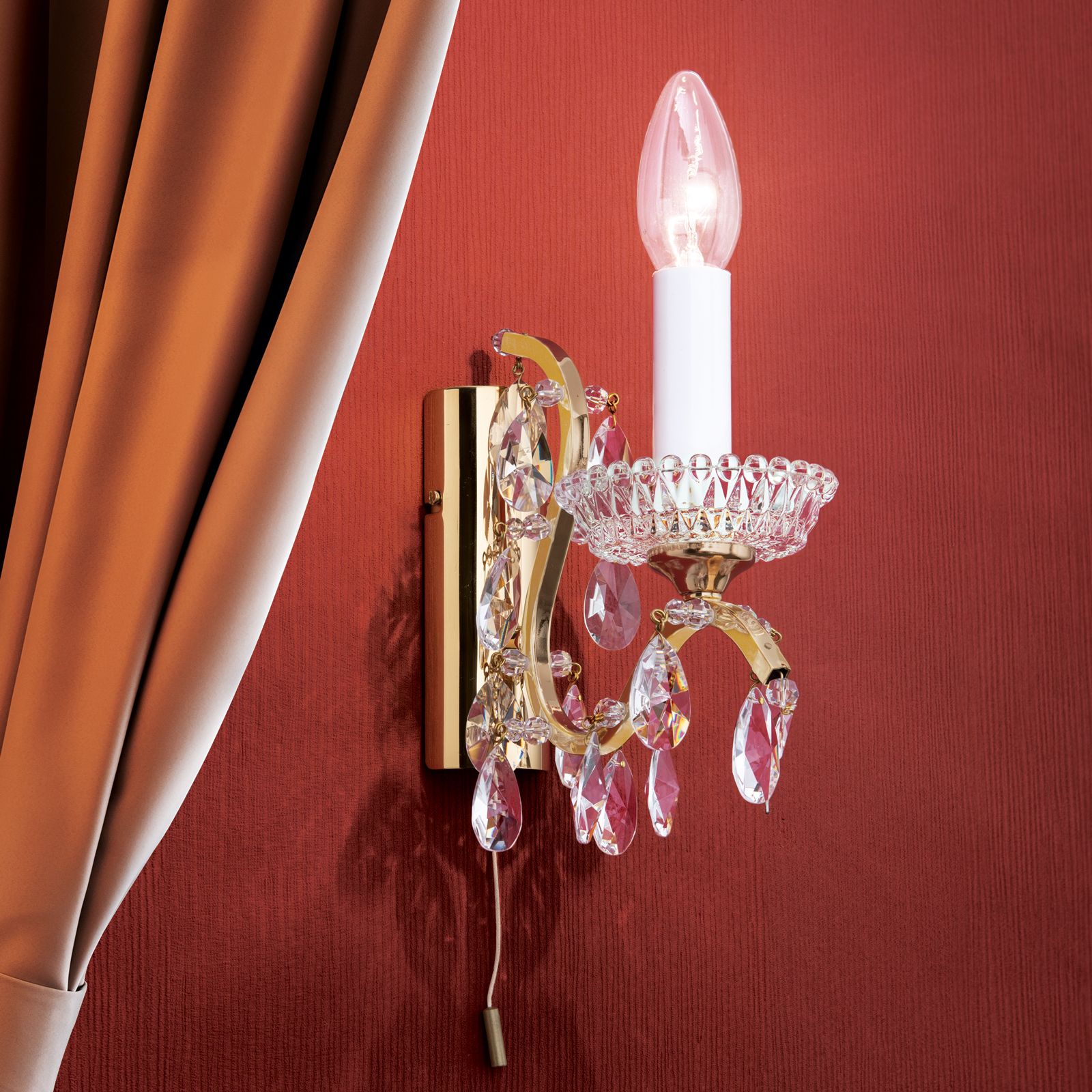 Nástěnné svítidlo s 1 žárovkou z kolekce HIROHITO přináší do vašeho domova kousek nádechu císařského domu. Vycházející ze stylu Marie Terezie si světla z této císařské série libuje i japonský Tenno. Důvody jsou rychle vyjmenovány: materiály a povrchová úprava nesplňují žádná přání. Olovnatý křišťál, 24 karátové pozlacení a masivní mosaz tvoří dokonalý základ pro velkolepý vývoj světla. Průchodka nad držákem lampy vytváří domácký vzhled svíčky. Připevněním nad dobový kus nábytku nebo nalevo a napravo od krásného čalouněného nábytku vytvoříte zářivý akcent interiéru. Zásuvka E14 pro až 40 wattů dodává lampě energii. Nástěnné svítidlo je k dispozici také ve verzi 2-žárovka a 3-žárovka.