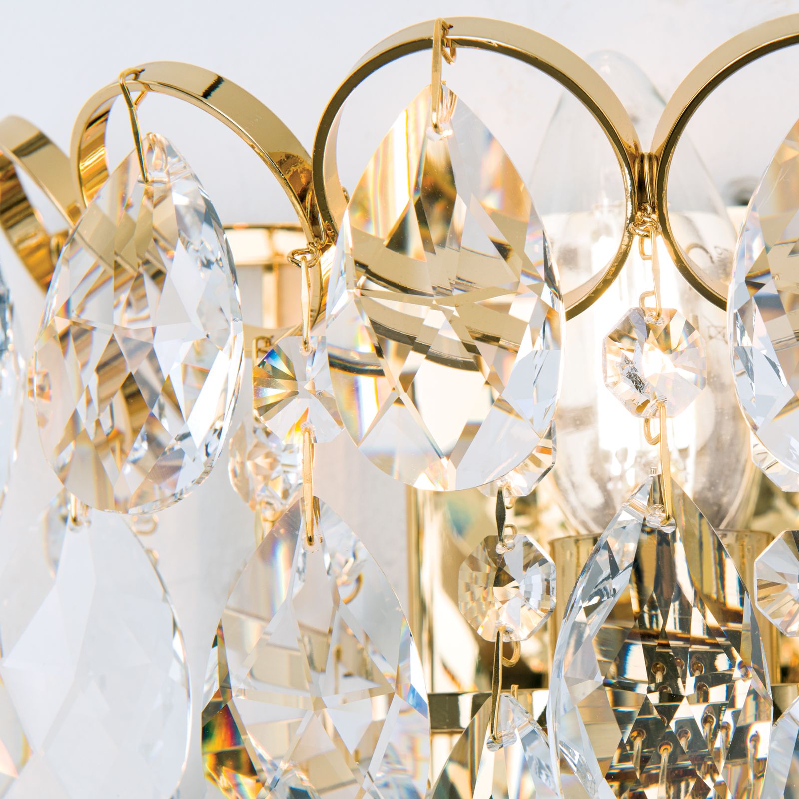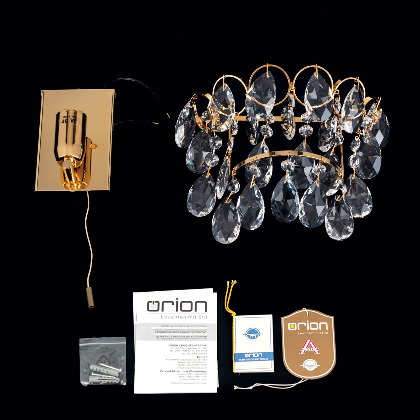 Nástěnné svítidlo KRISTALL KLASSISCH je vysoce kvalitní osvětlovací prvek vyrobený v Rakousku a kombinuje tradiční eleganci a půvab krystalů v klasickém designu. Lampa je zdobena atraktivním zlatým tónem, který navozuje pocit luxusu a tepla. Disponuje praktickým tahovým vypínačem, který umožňuje snadné zapnutí a vypnutí osvětlení. Zvláštností této lampy jsou vysoce kvalitní krystaly SPECTRA® Swarovski®. Tyto krystaly představují vynikající kvalitu a zářivý lesk. Lampa je navržena tak, že krystaly jsou osvětleny přímo žárovkami a vytvářejí tak fascinující hru světla. Krystaly zachycují světlo a lámou ho do nádherných barev a odlesků, které naplní místnost magickou jiskrou. Design lampy se vyznačuje filigránovými kroužky, které nesou četné nádherné křišťálové řetězy. Tyto řetězy obsahují býky a křepelky, což dodává celému osvětlení královský nádech. Kombinace třpytivých krystalů, jemných prstenů a opulentních dekorací vytváří působivou estetiku, která se perfektně hodí do klasicky elegantních interiérů. Nástěnné svítidlo KRISTALL KLASSISCH není jen světelným zdrojem, ale také uměleckým dílem, které předvádí krásu krystalů v celé jejich kráse. Je ideální pro obývací pokoje, ložnice, chodby nebo jakékoli jiné místo, kde chcete sofistikované a zářivé osvětlení.