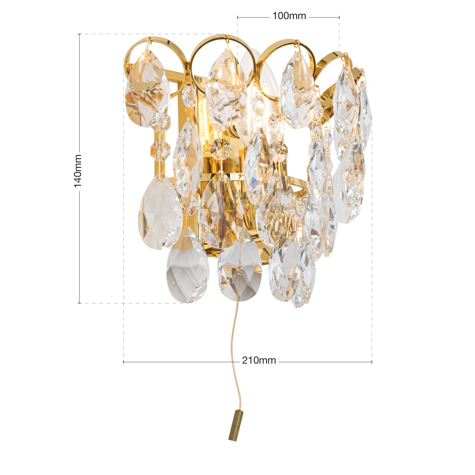 Nástěnné svítidlo KRISTALL KLASSISCH, 1-žárovka, zlaté, s tahovým vypínačem