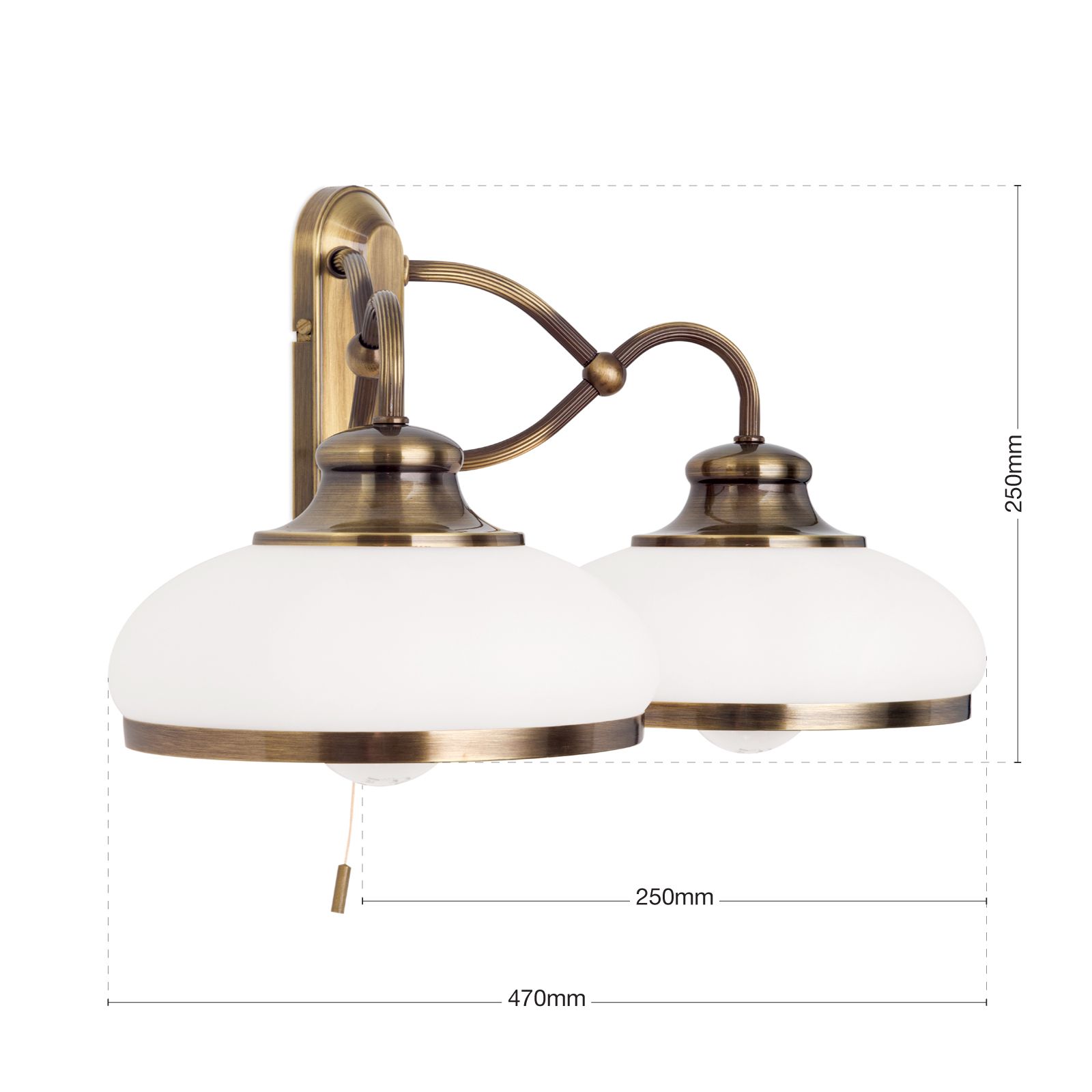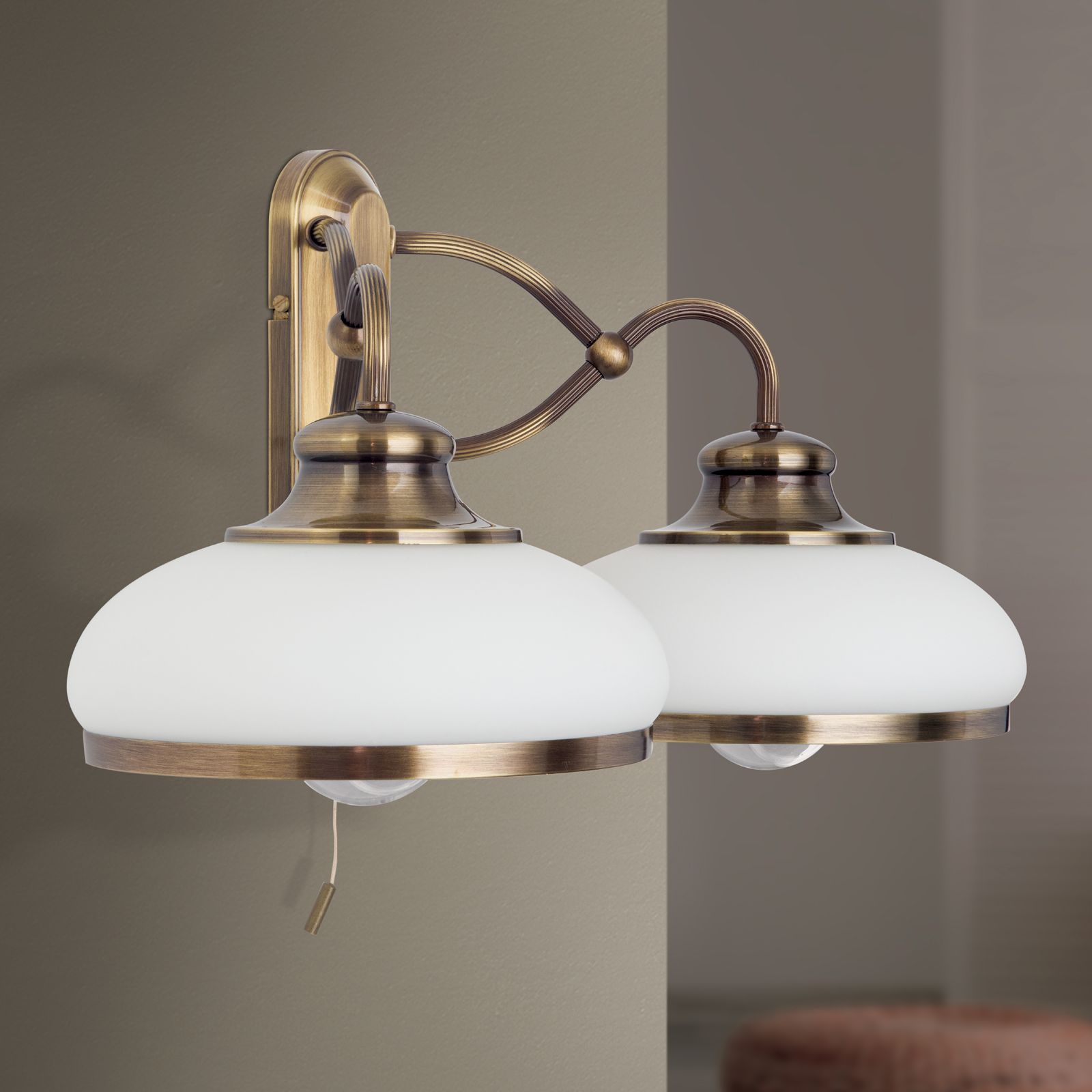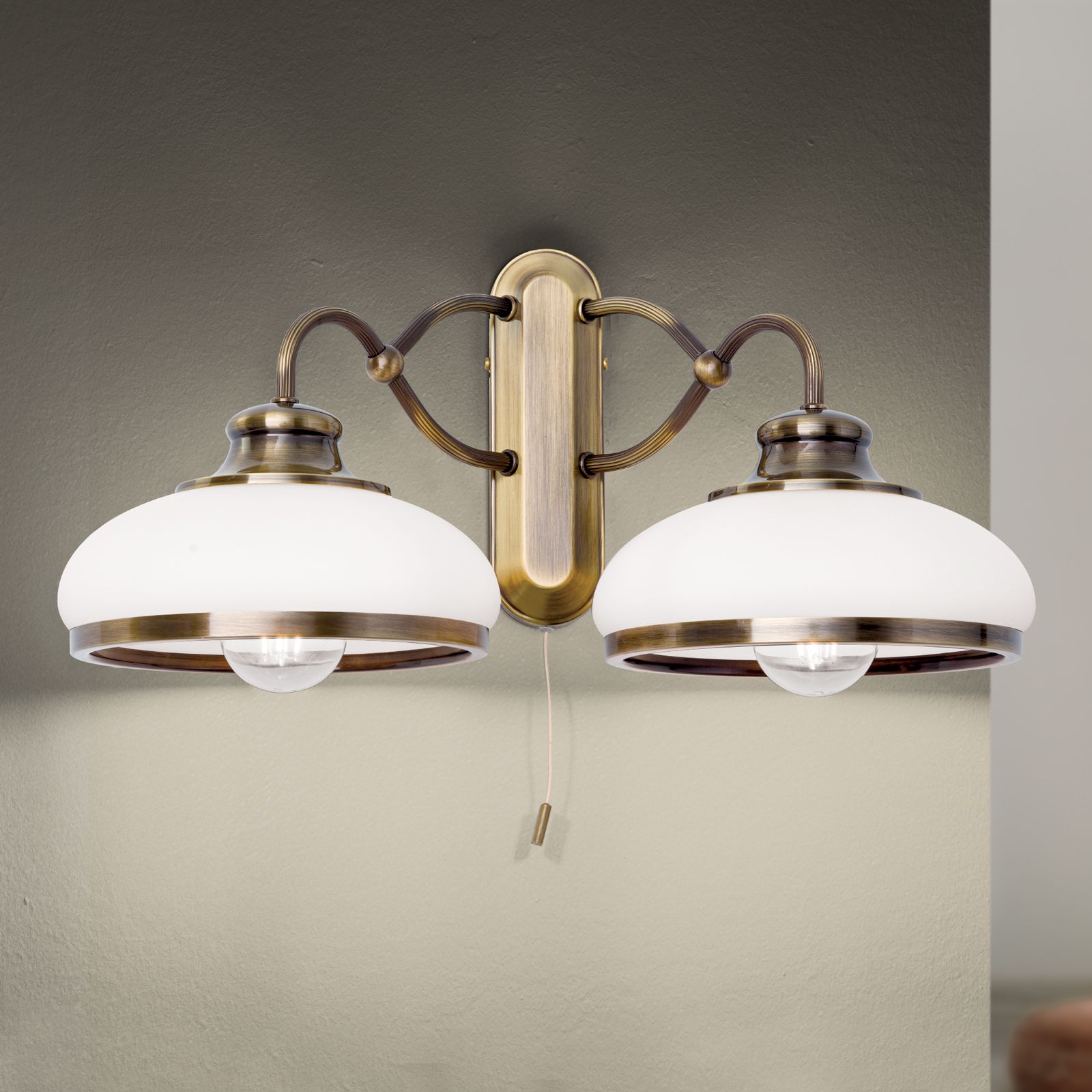 Nástěnné svítidlo LANDHAUS, 2 světla, patina, s opálovým sklem