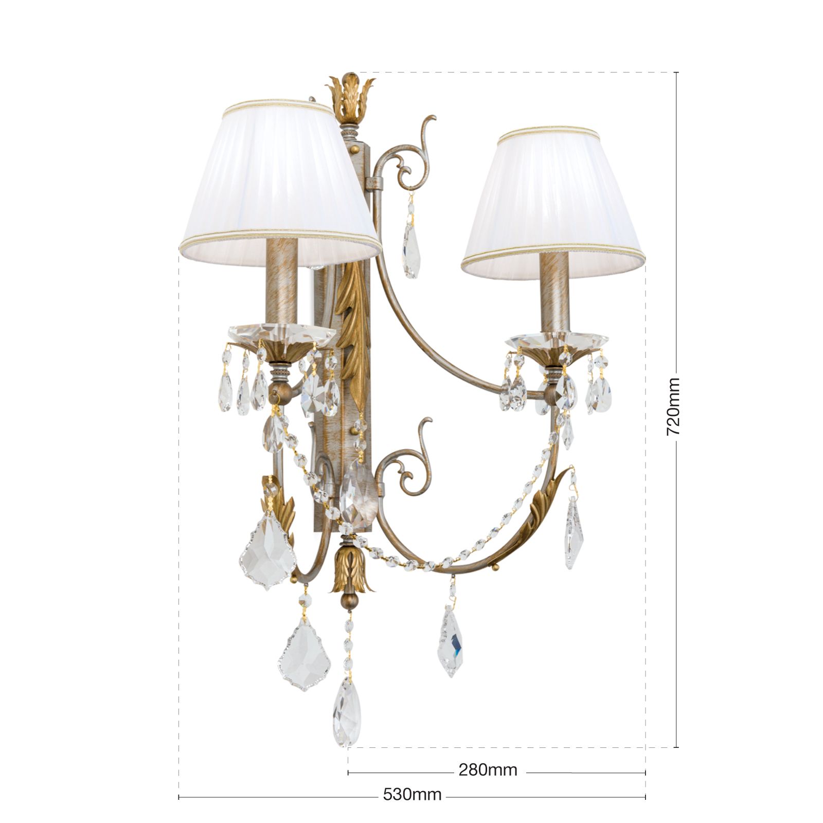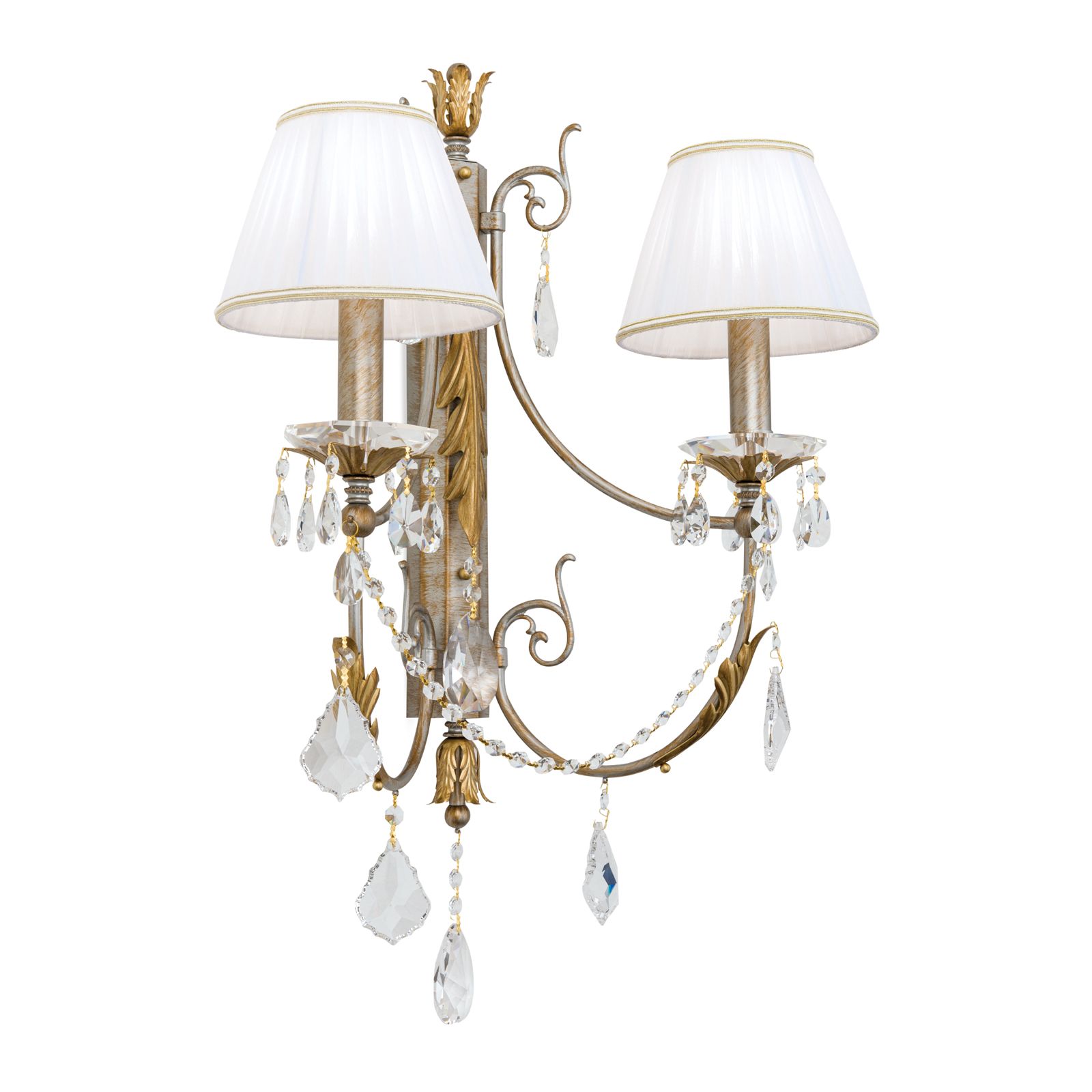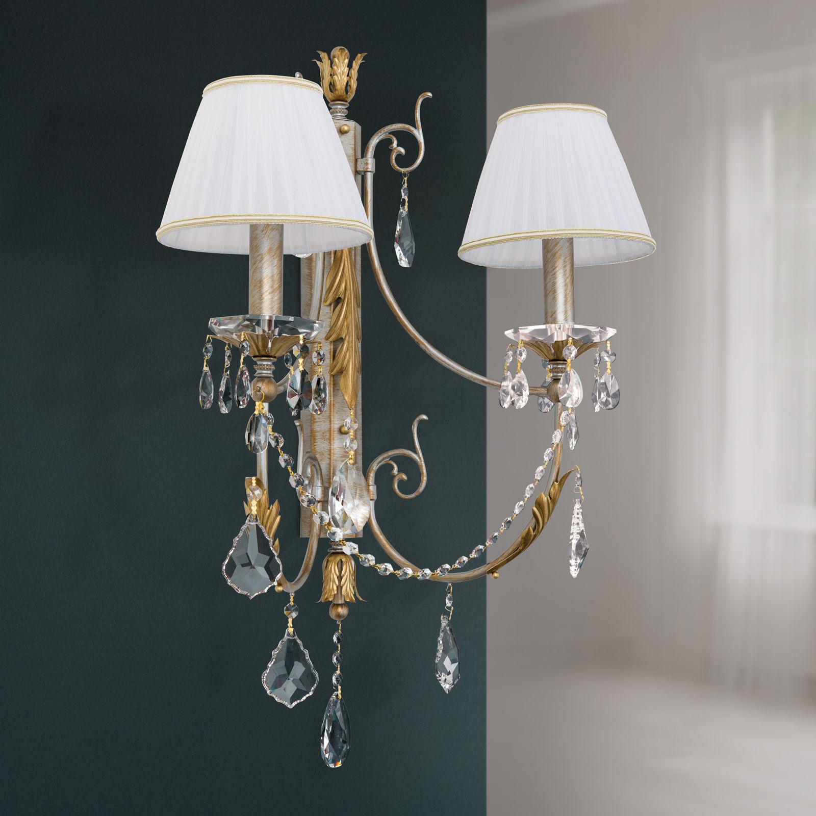 Nástěnné svítidlo MIRAMARE, 2 světla, stříbrně zlaté, s bílými stínidly z organzy