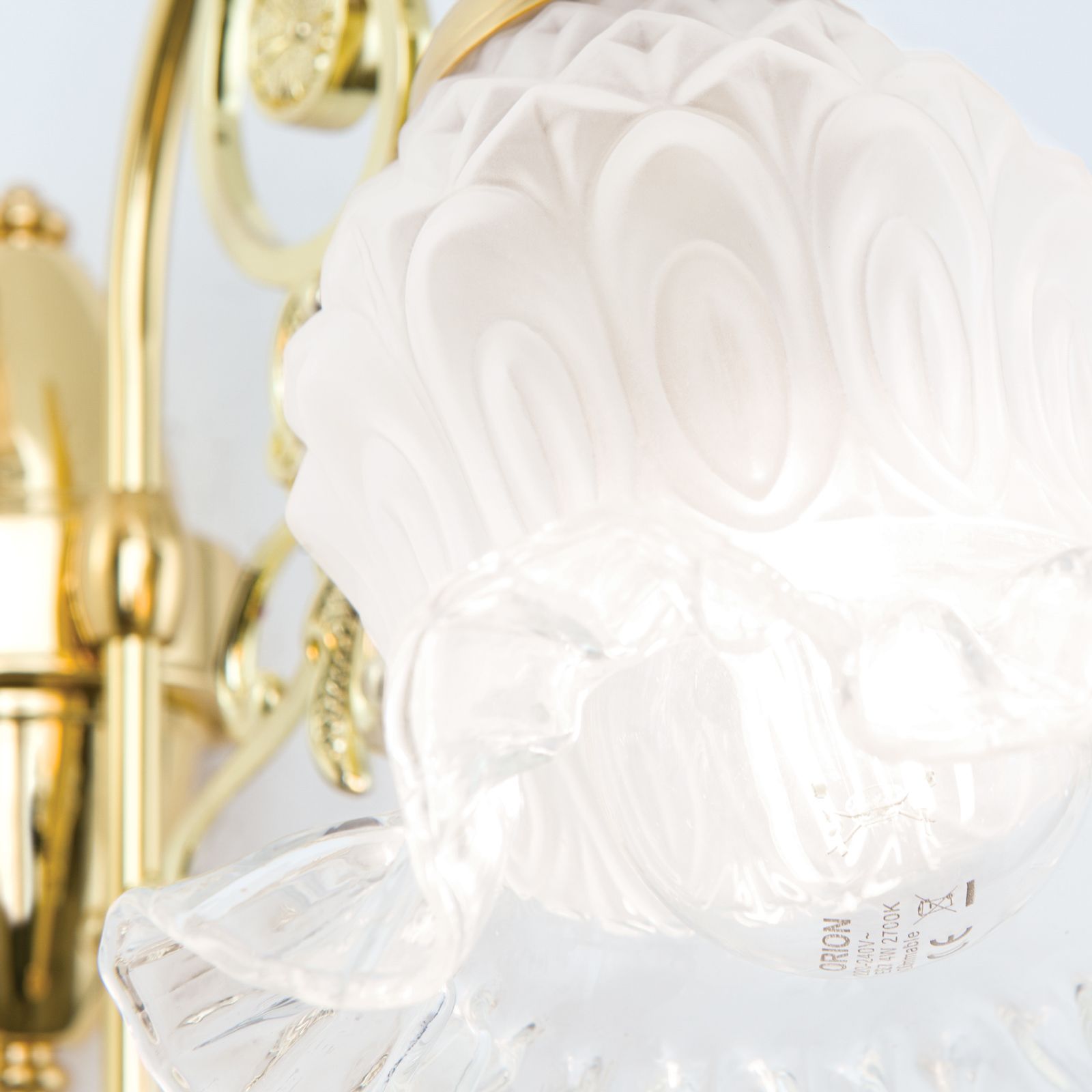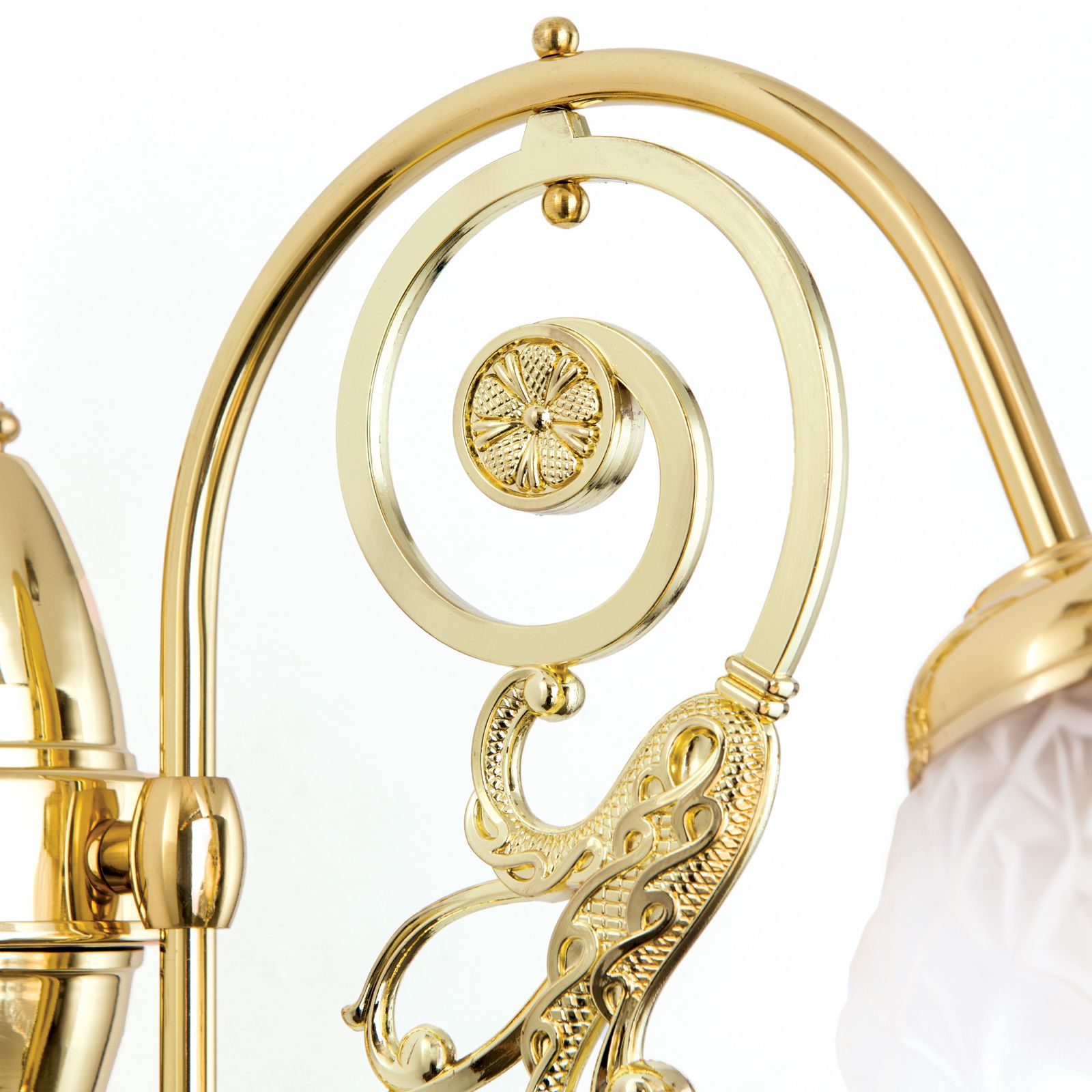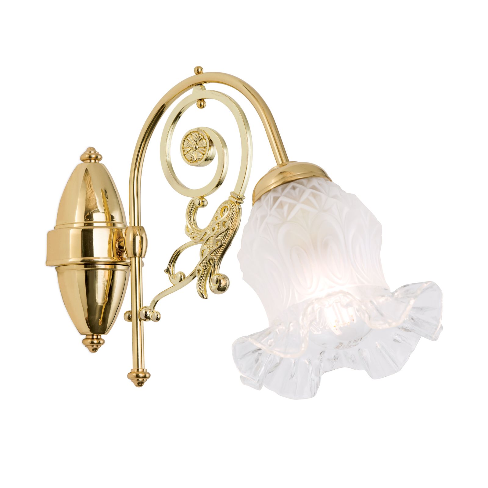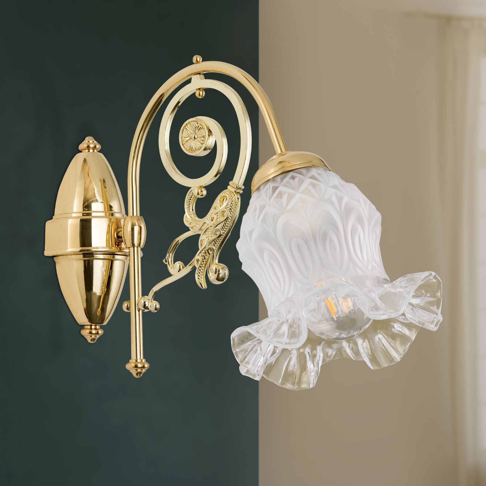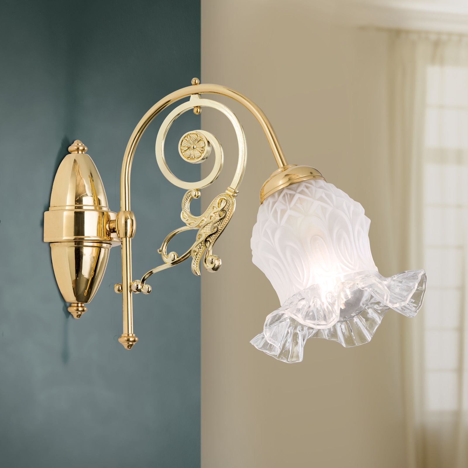 Nástěnné svítidlo RINGSTRASSE, 1 světlo, lesklá mosaz, s květinovým sklem