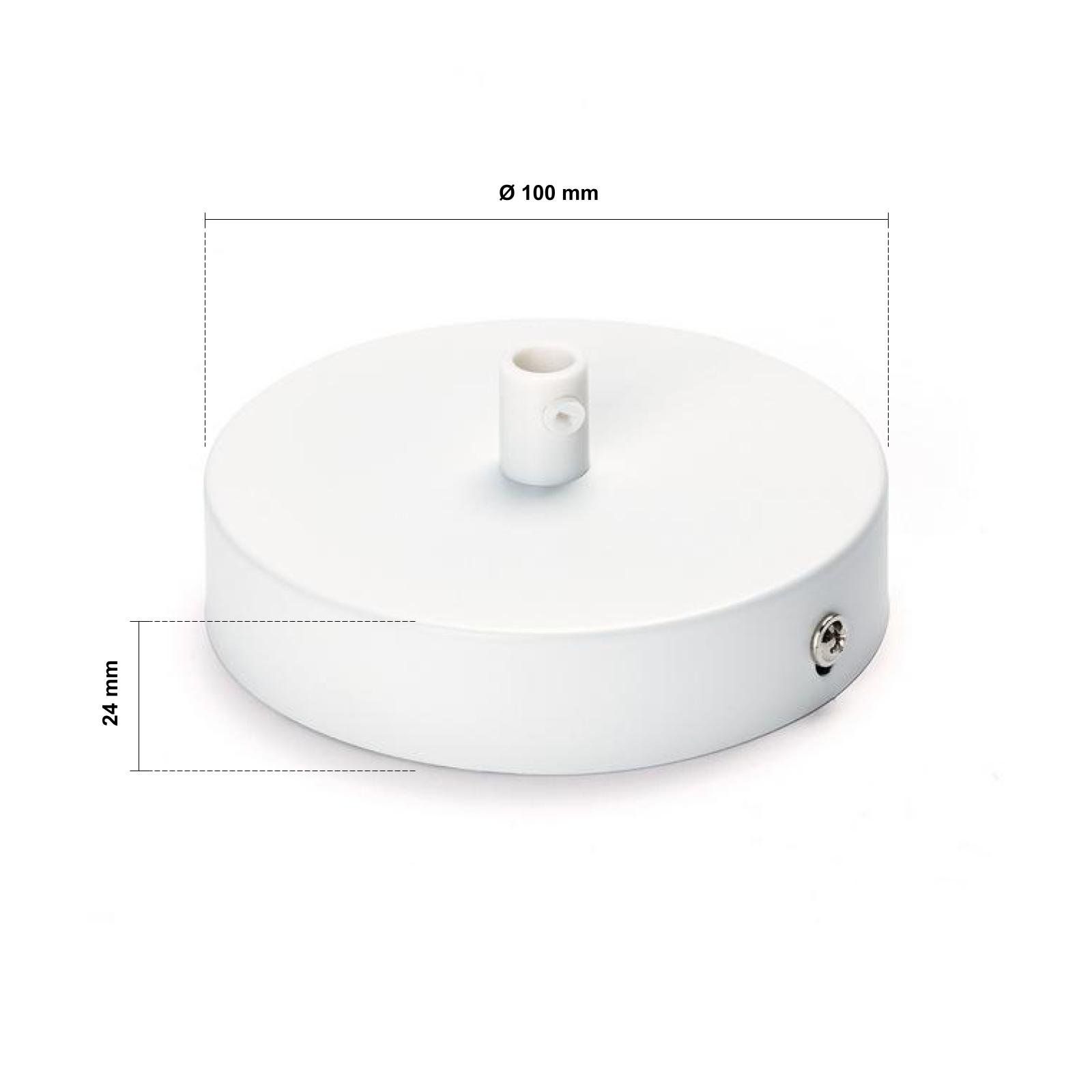 Elegantní stropní baldachýn z robustního kovu spojuje funkčnost a estetický design. S průměrem 100 mm je tato rozeta dokonalým řešením pro stylové zakrytí nevzhledných kabelových přípojek na stropě. Vysoce kvalitní bílý lak zajišťuje nadčasový a nenápadný vzhled, který harmonicky zapadá do každého interiéru.