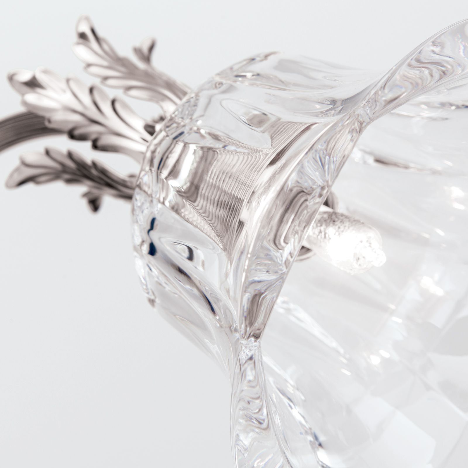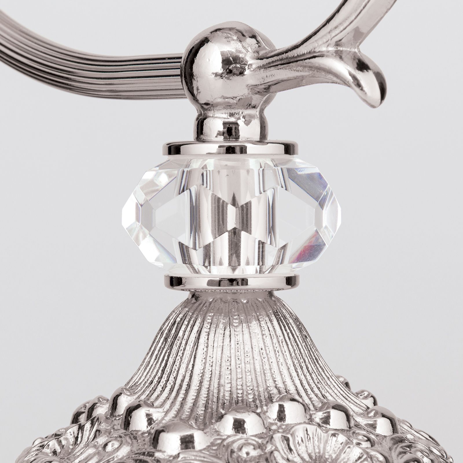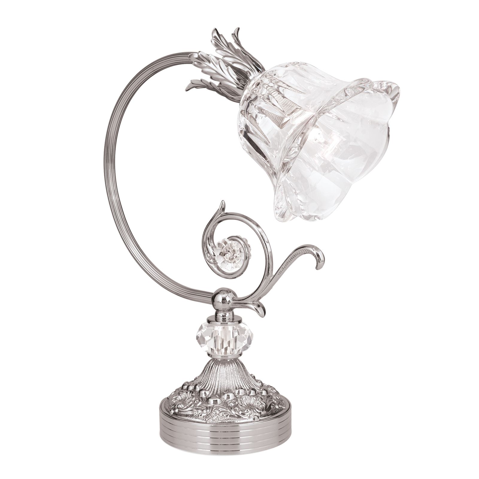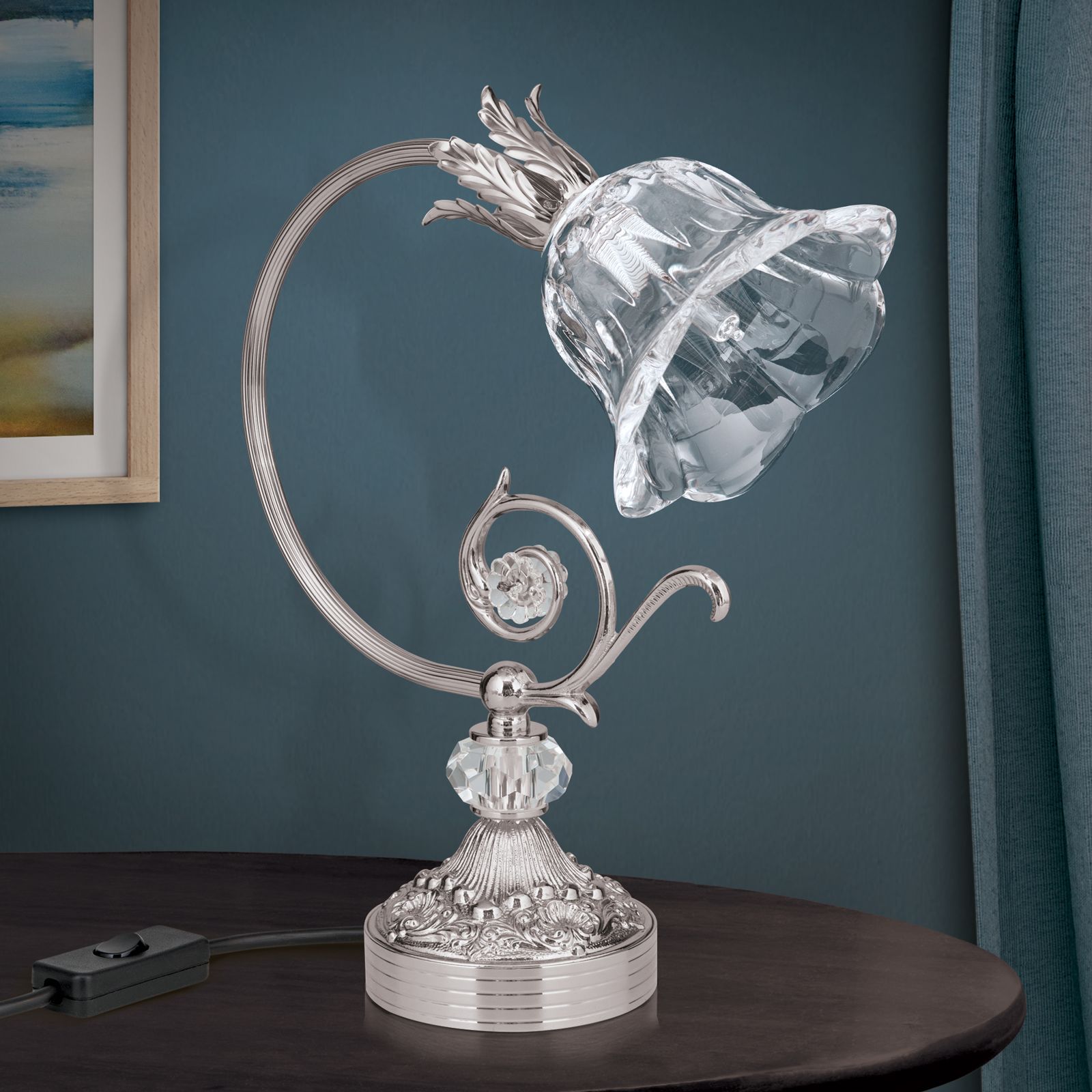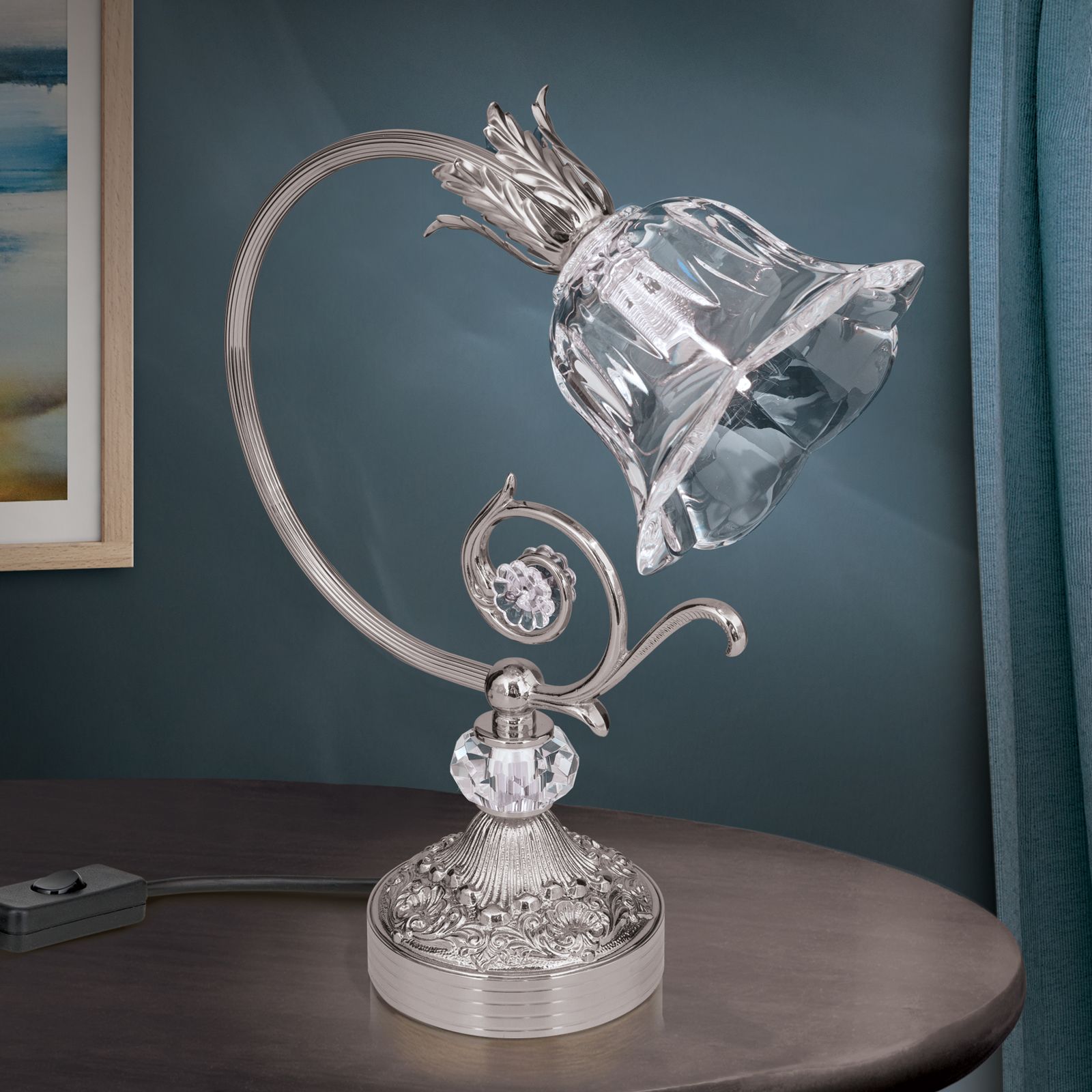 Díky svému propracovanému vzhledu se stává zvláštním magnetem pozornosti. Stojan je vyroben z masivního mosazi. Podstavec je zvláště umělecky zdobený a vybaven vypínačem pro zapínání a vypínání. Lampa připomíná květinu, a to především díky starostříbrným akantovým listům a čirému křišťálovému stínidlu ve tvaru květu. Kanelované, elegantně zakřivené rameno připomíná révu, která je navíc opatřena křišťálem s broušením 1A.