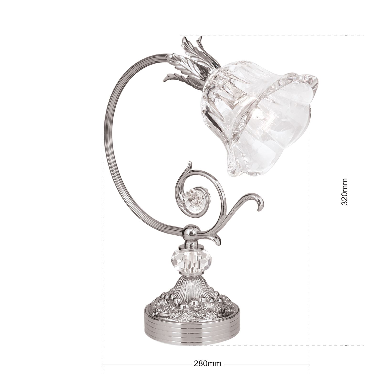 Žárovka v objímce G9 může mít maximální výkon 40 wattů. Stolní lampa je k dispozici v povrchových úpravách staré stříbro a zlato.