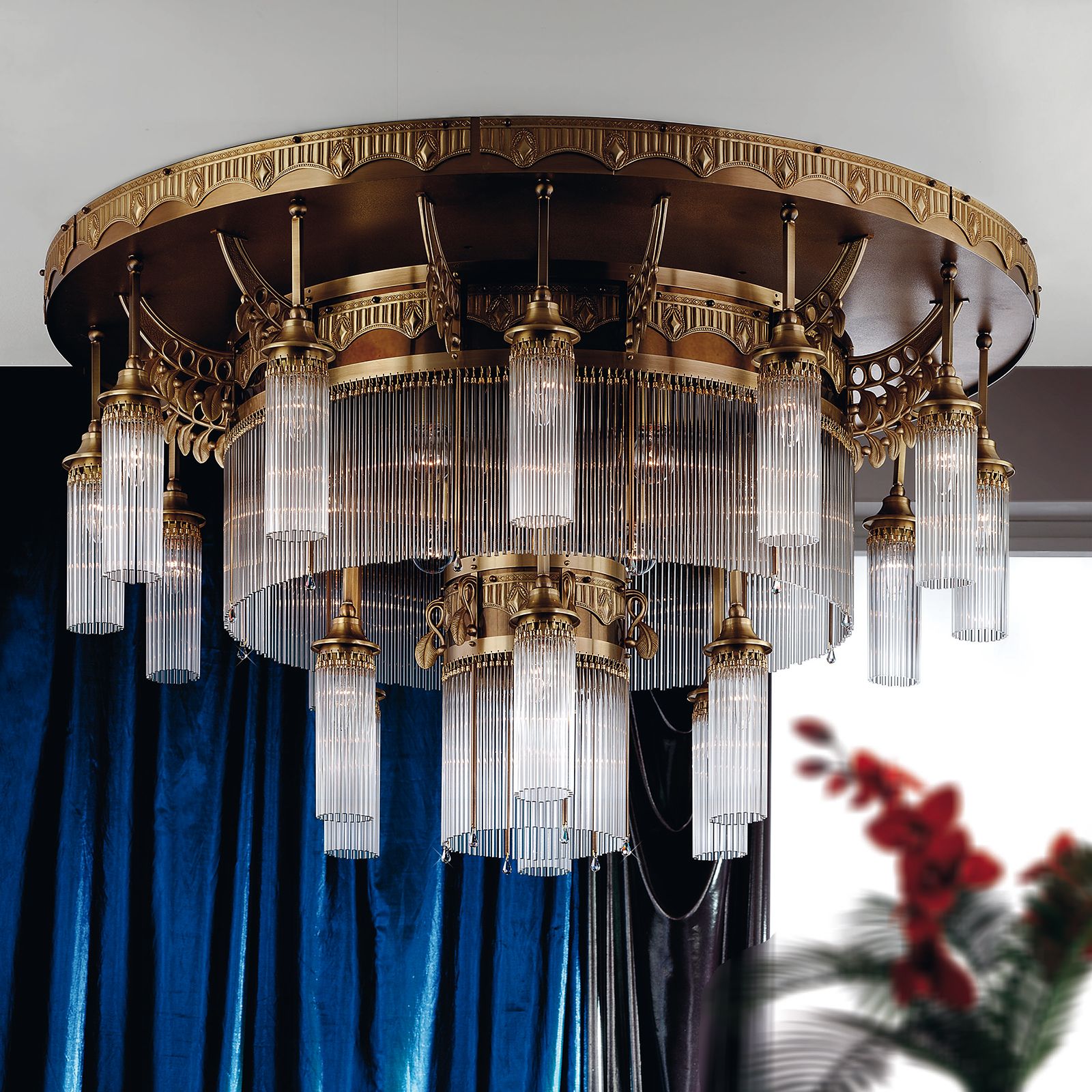 Stropní lustr ADELE, 25 plamenů, stará mosaz, s tyčemi