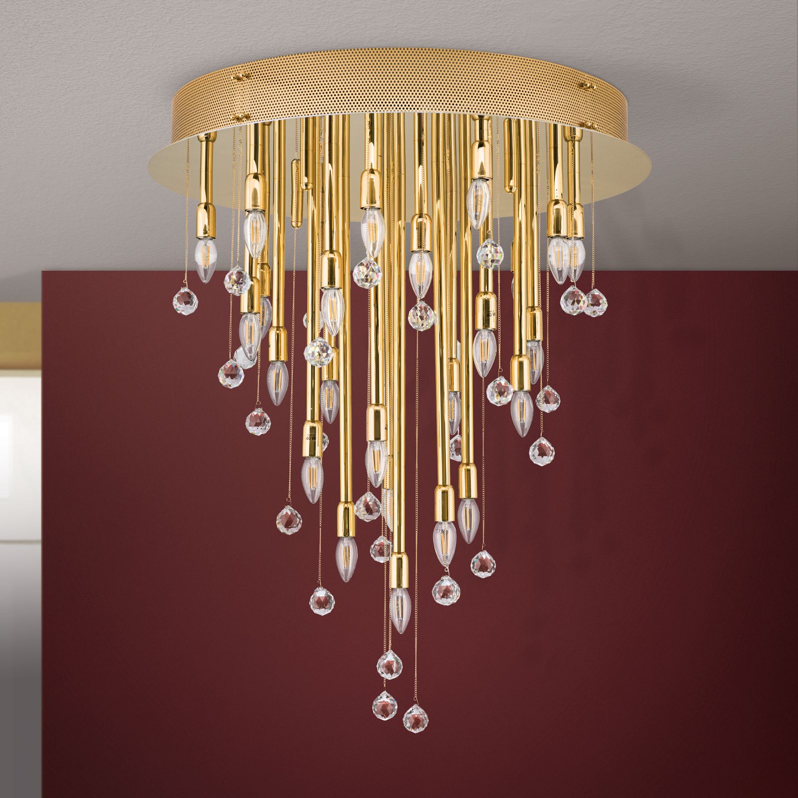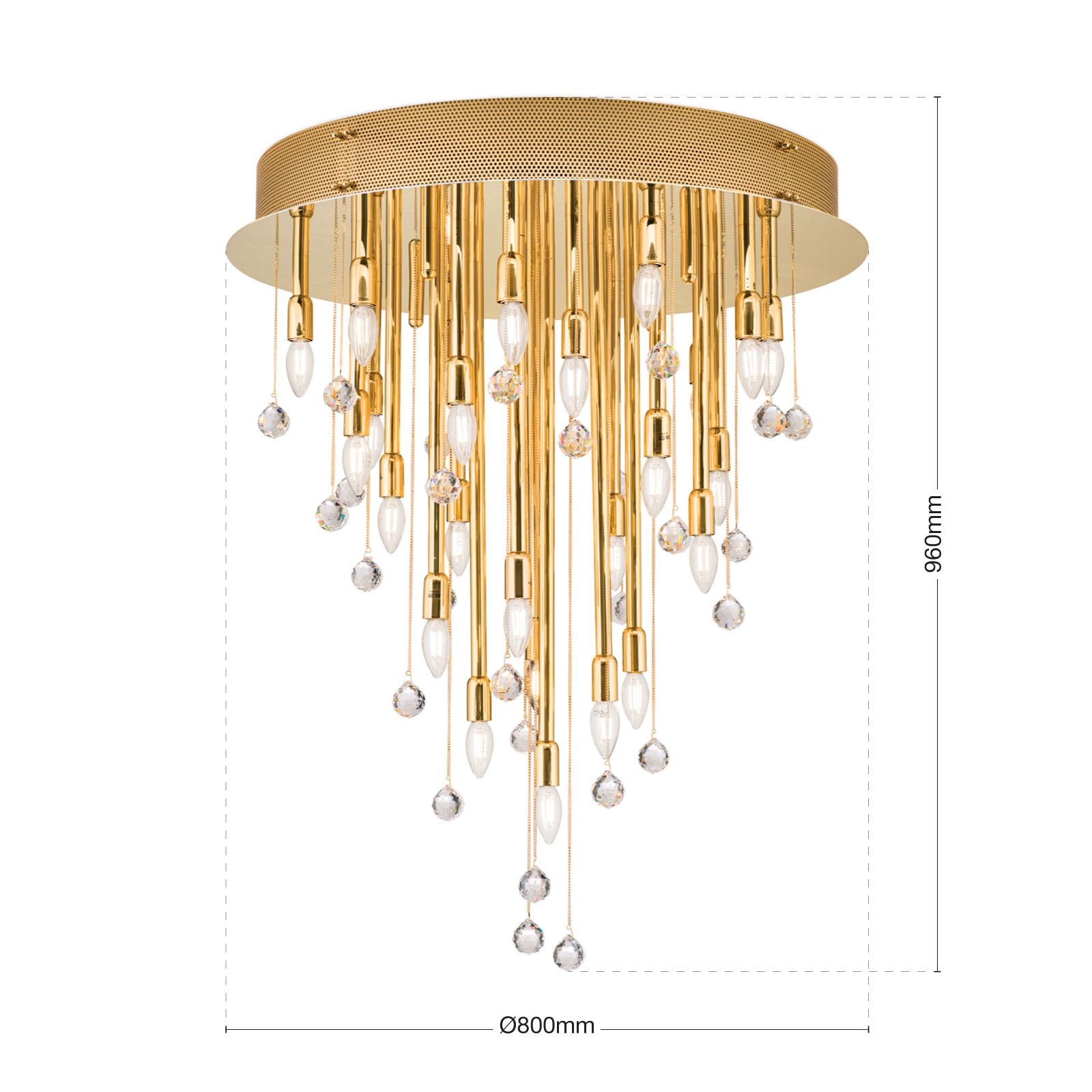Ponořte se do světa sofistikovanosti a luxusu se stropním lustrem GALAXY. Tento působivý lustr s 19 žárovkami E14 září v půvabné zlatavé záři a vyznačuje se jedinečným designem kosmického věku. S velkorysým průměrem 80 cm propůjčí lustr GALAXY každé místnosti téměř magickou přítomnost.