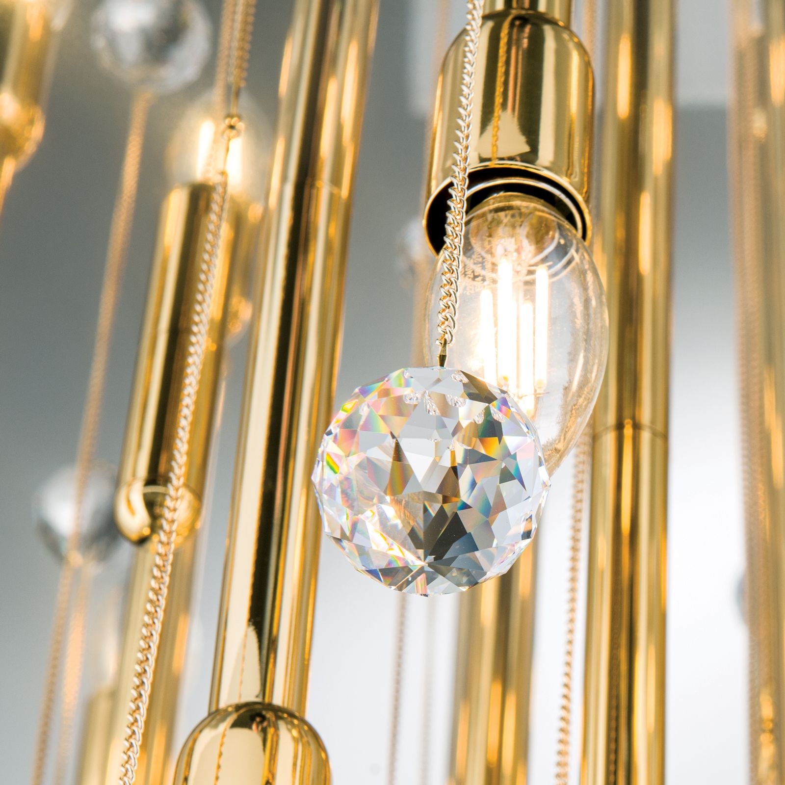 Nejvýraznějším rysem stropního lustru GALAXY je bezpochyby použití krystalů SPECTRA® Swarovski®, které dodávají místnosti jiskřivou záři a nádech extravagance. Tyto pečlivě rozmístěné krystaly zachycují světlo a vykouzlí na stropě a stěnách úchvatnou hru jisker, která místnost zahalí do kouzelné atmosféry.