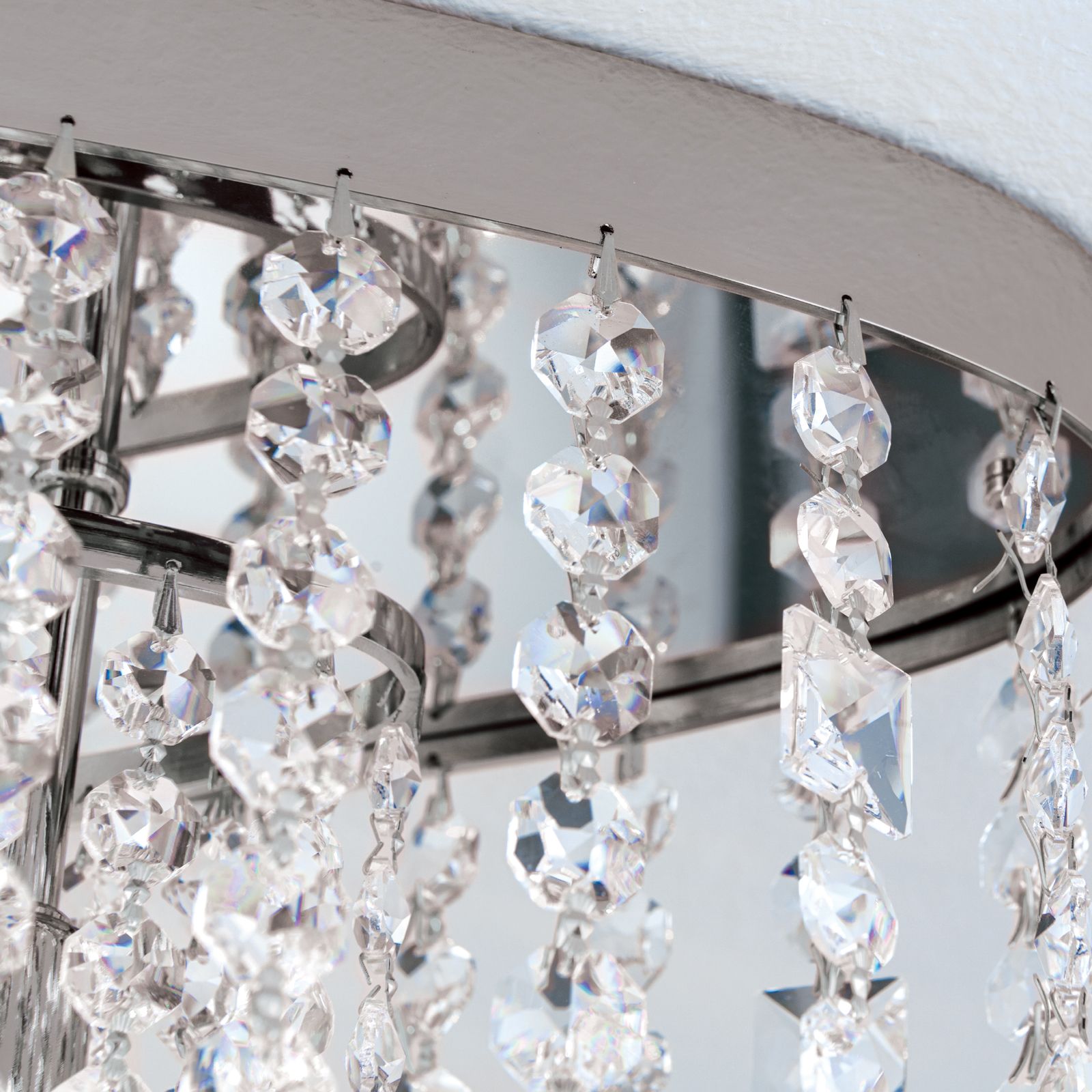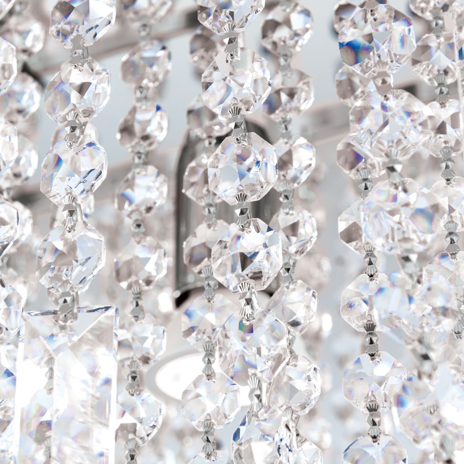 Ústředním prvkem tohoto lustru je bezpochyby nespočet broušených krystalů SCHÖLER CRYSTAL®, které se liší tvarem a jsou připevněny jak na vnějším prstenci, tak na základně rámu světla. Lesk a třpyt těchto krystalů kouzelným způsobem zachycuje světlo a rozptyluje ho do všech stran, čímž vytváří nepřekonatelnou atmosféru.