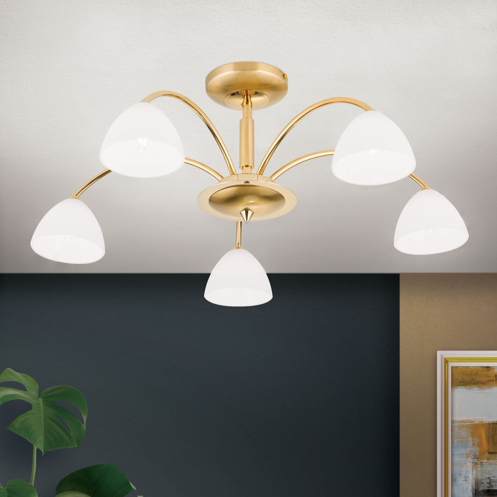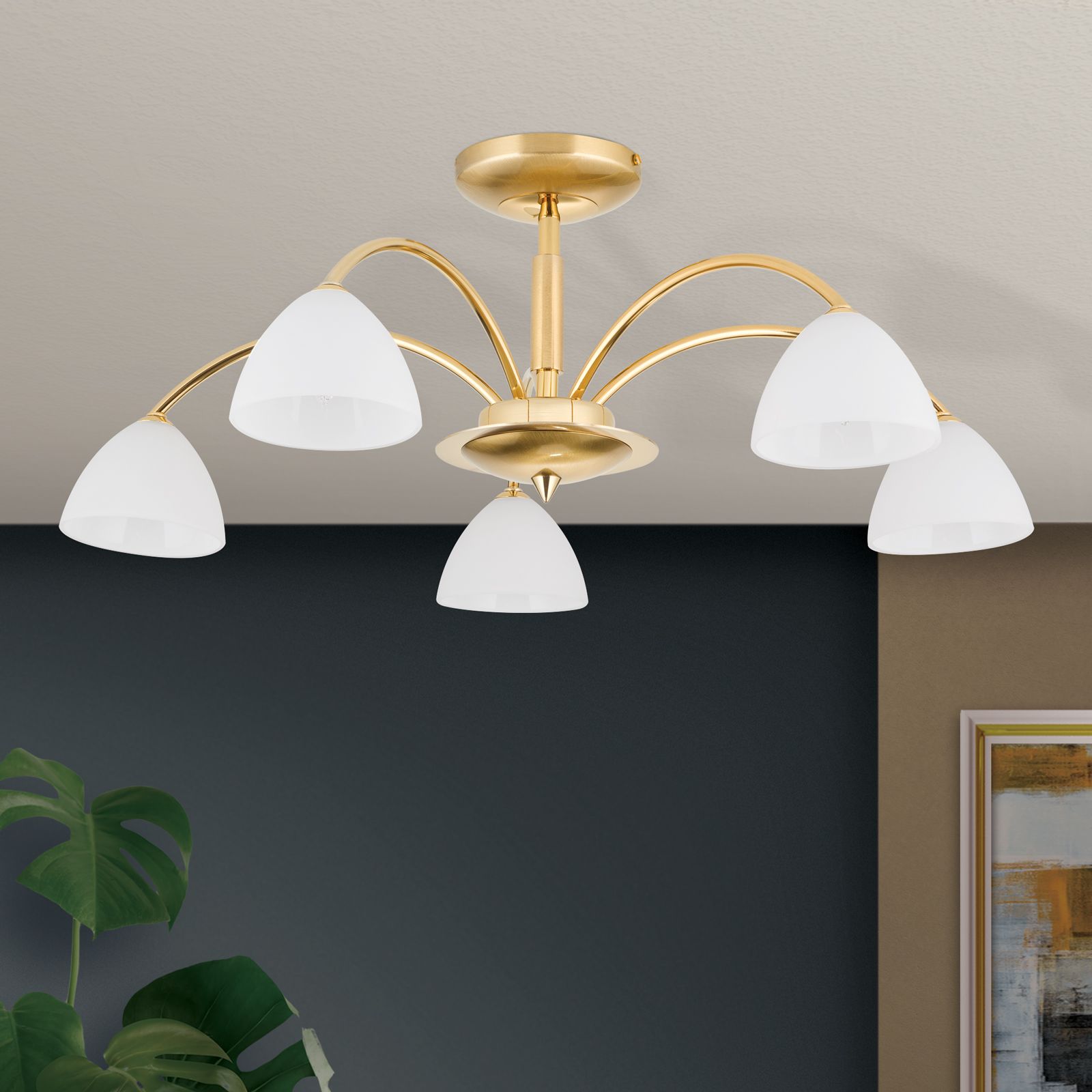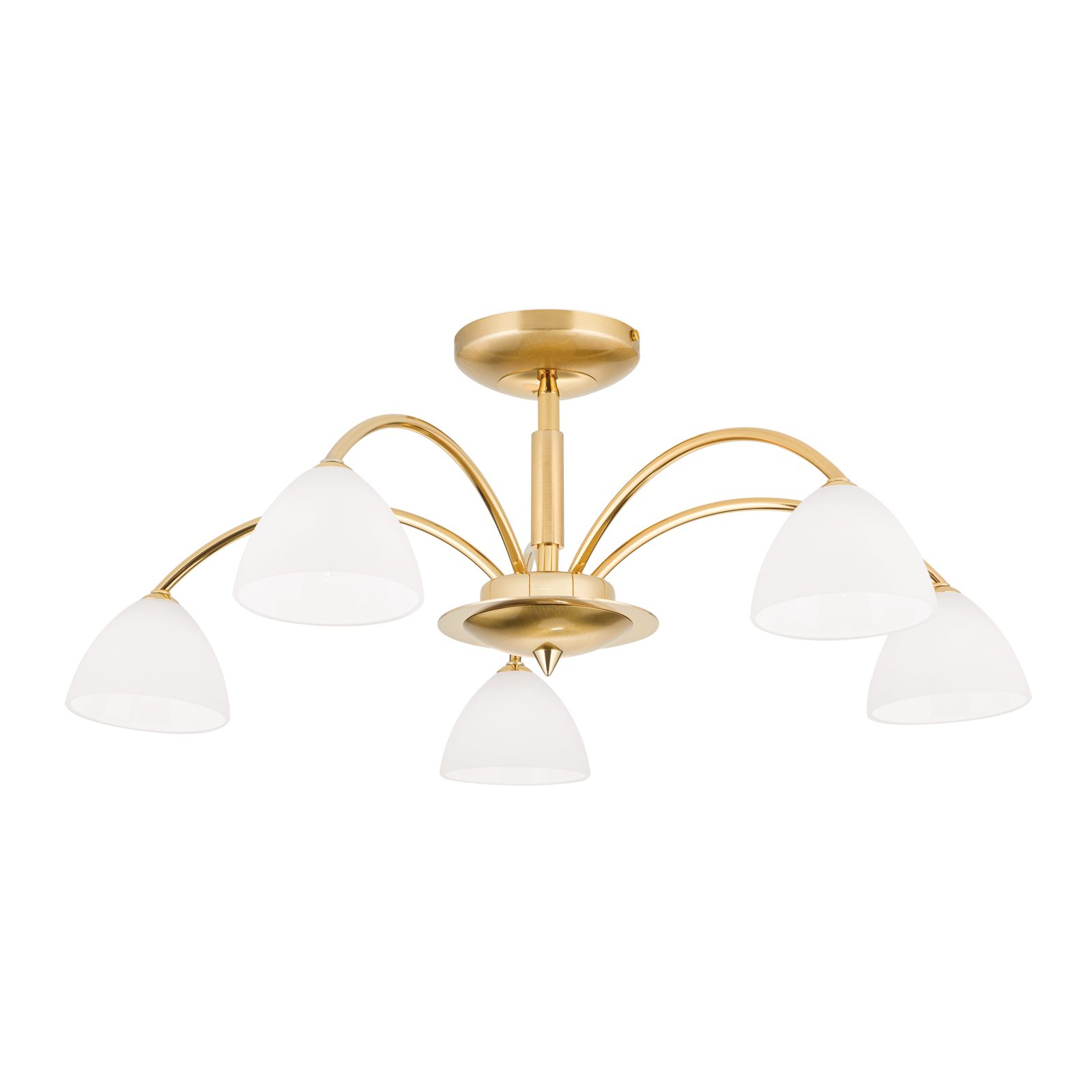 Stropní lustr OPALDESIGN, 5ti žárovkový, zlatý, s opálovým sklem