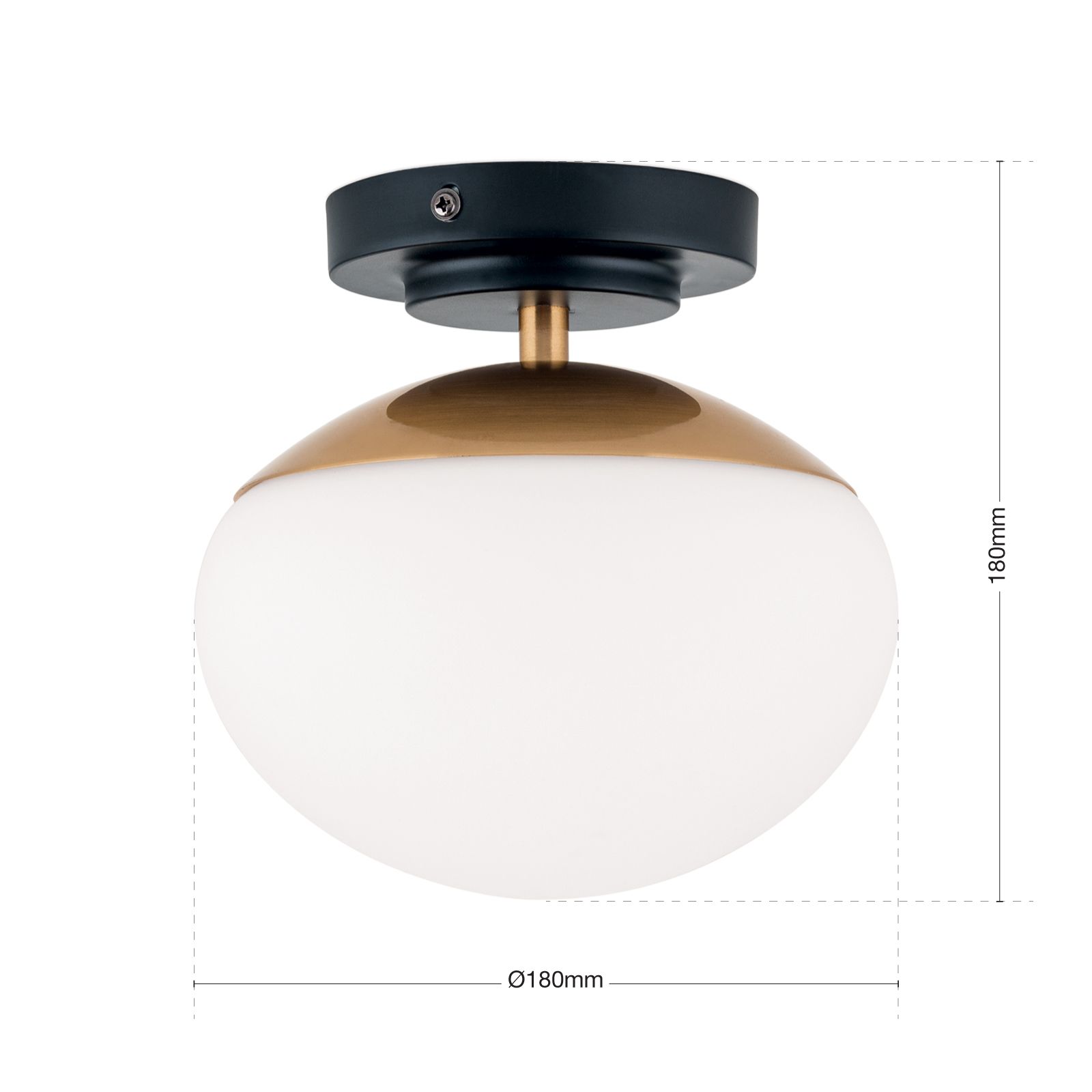 Stropní svítidlo JOSEPHINE je elegantní a nadčasový designový kousek, který je dokonalým řešením osvětlení každé místnosti. Stínidlo opálově bílého skla dodává světlu měkký a příjemný vzhled, zatímco zlatý kryt z matného materiálu dodává elegantní nádech. Série JOSEPHINE inspirovaná 60. lety nabízí nadčasový a klasický design, který dokonale zapadne do každého stylu interiéru. Ať už v chodbě, salonu, kanceláři nebo koupelně, toto světlo poskytuje příjemné a příjemné osvětlení, které vám pomůže relaxovat a odpočinout si. Díky žárovce E27 se stropní svítidlo JOSEPHINE snadno instaluje a ovládá. Jednoduše vyměňte žárovku, pokud již nefunguje a budete mít opět plně funkční světlo.