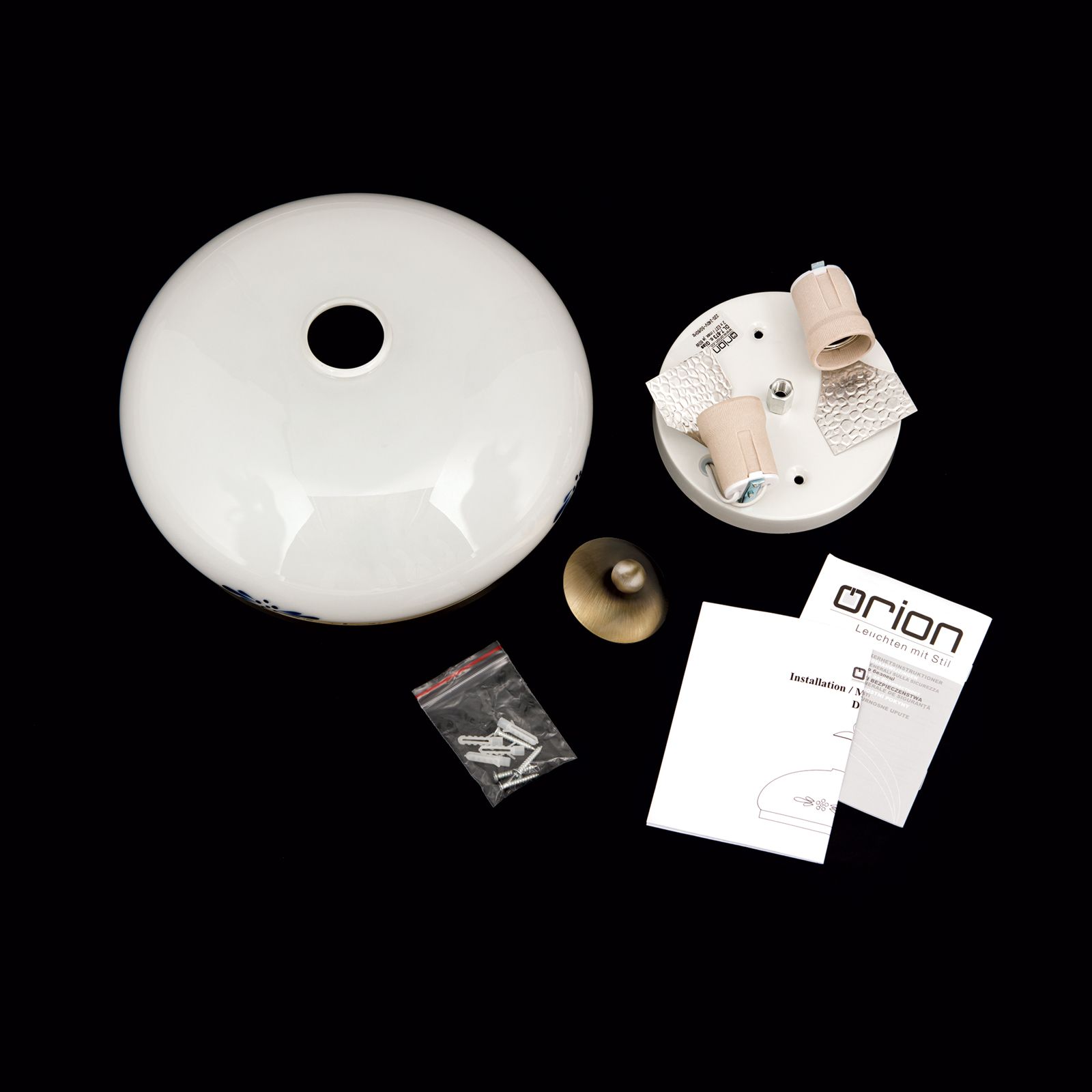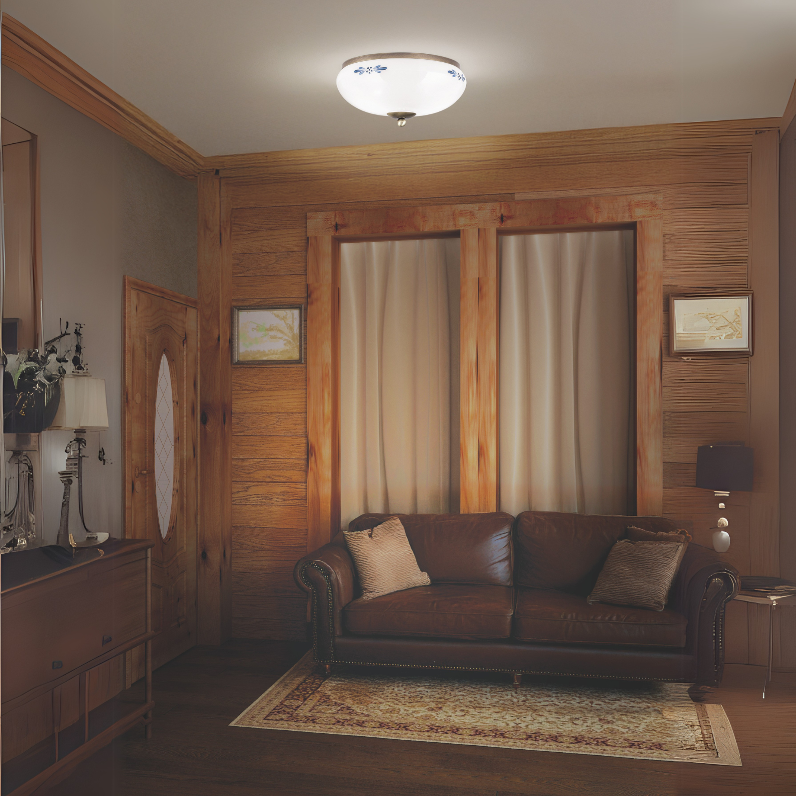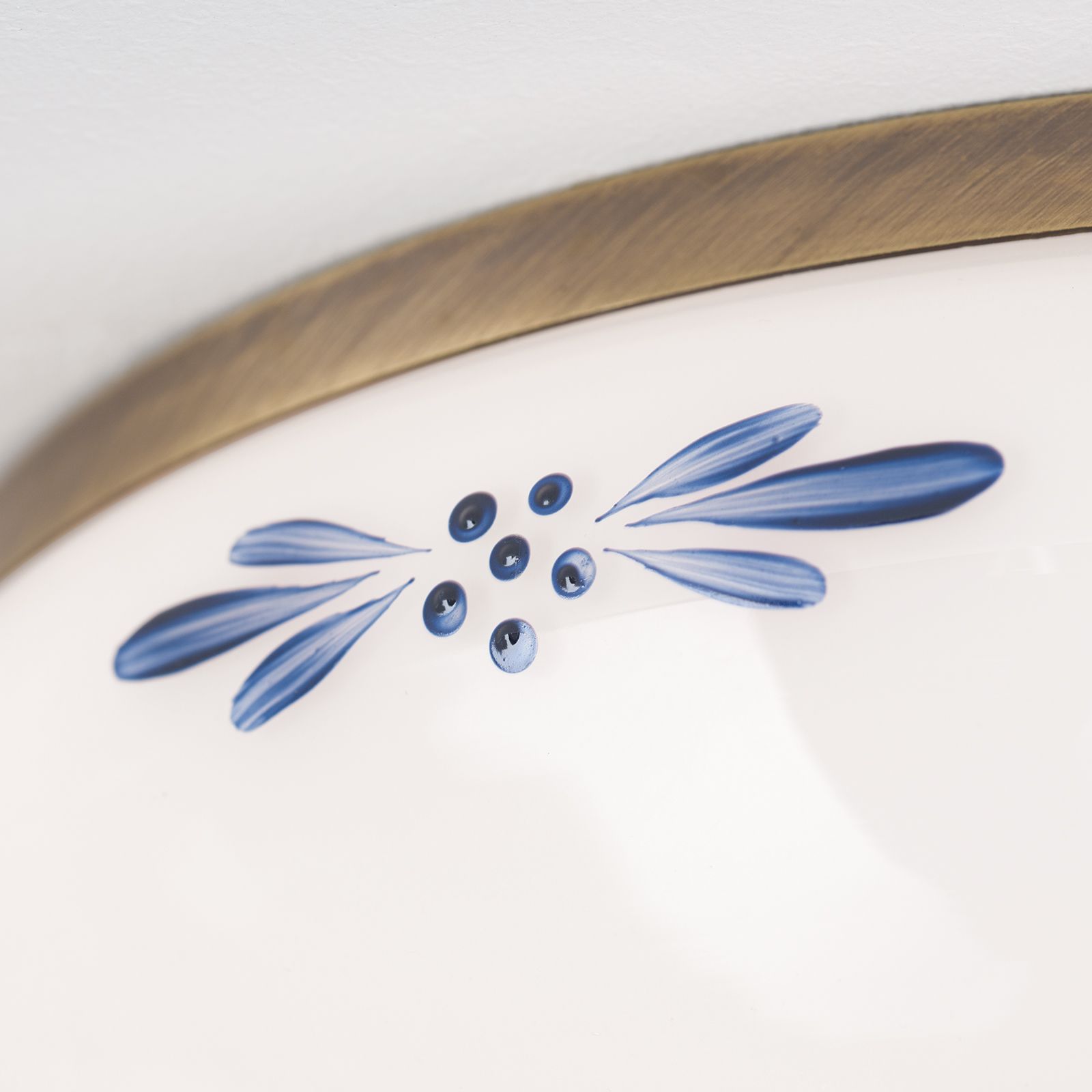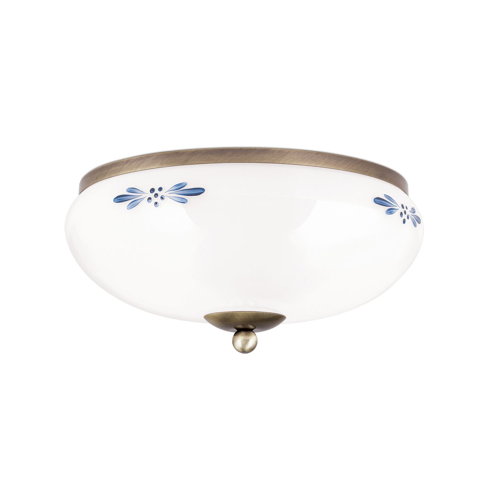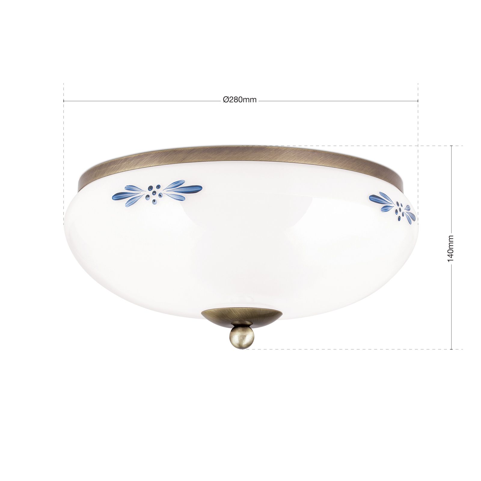 Stropní svítidlo LANDHAUS, patina, s modrým dekorem, s knoflíkem, Ø 28cm