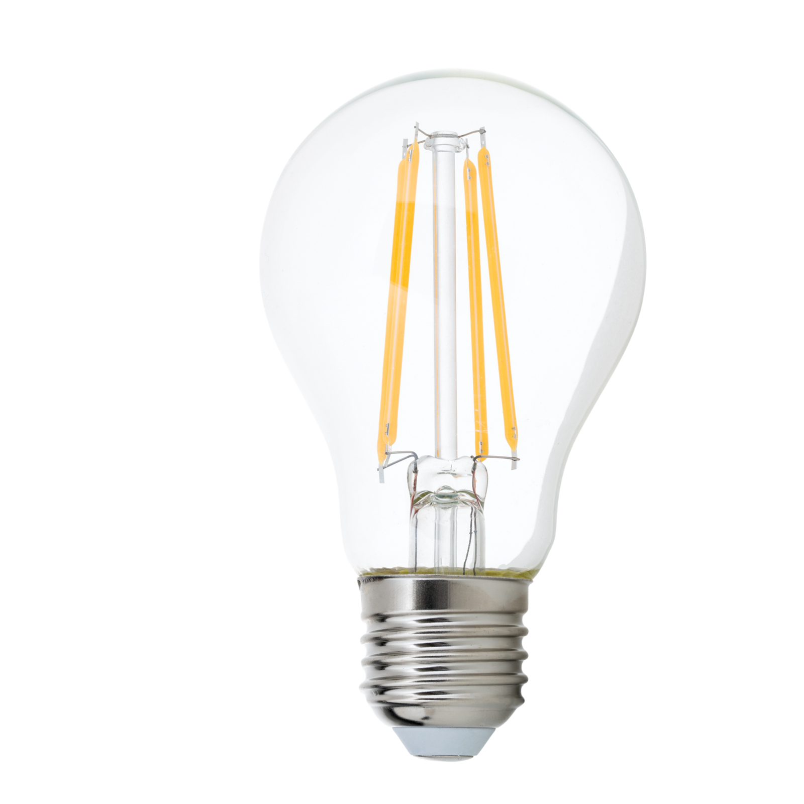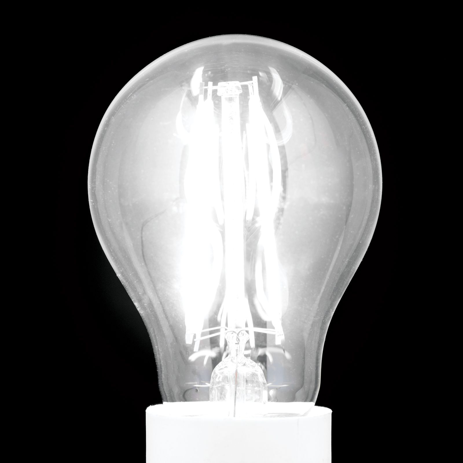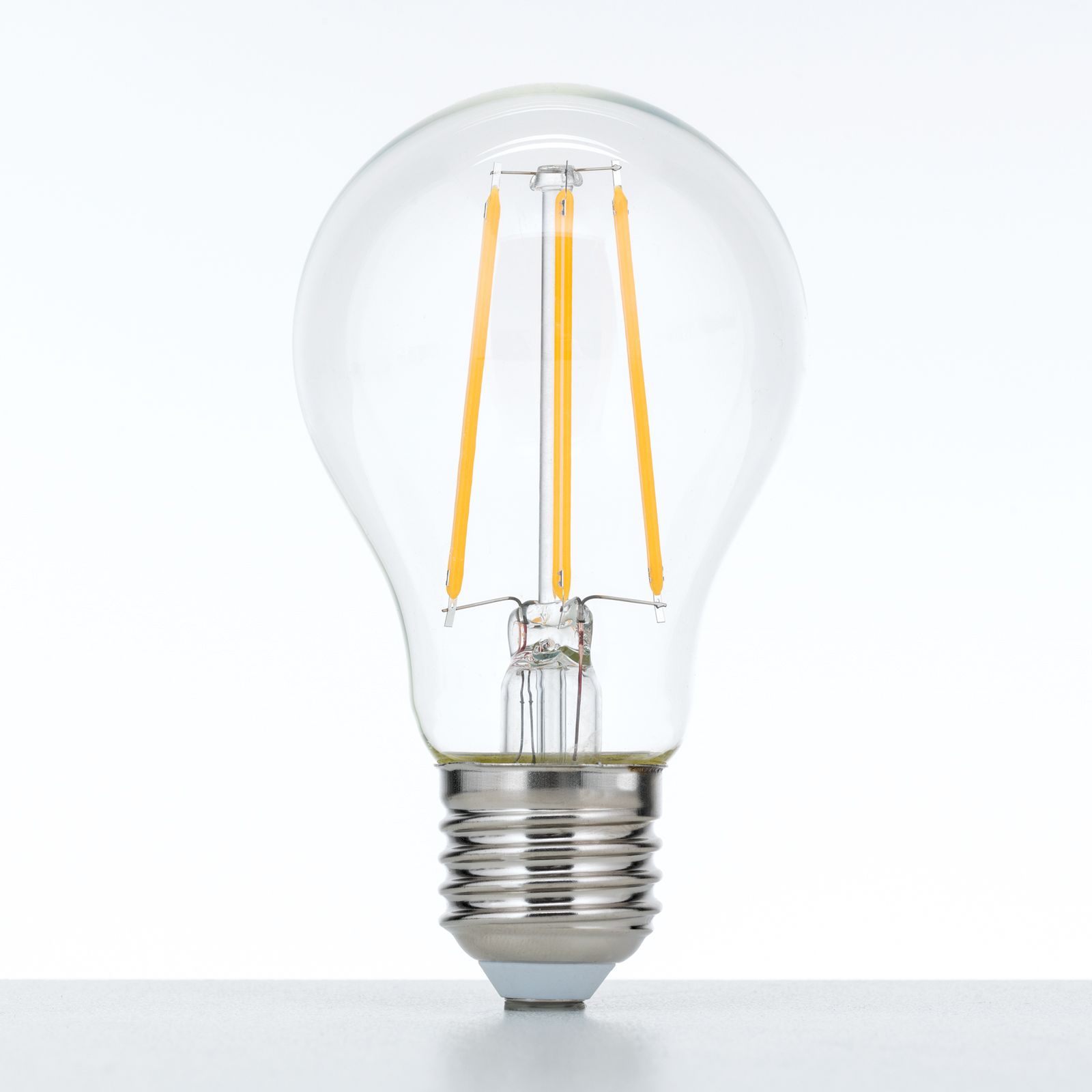 Vláknitá obvodová deska v čiré hruškovité LED lampě s paticí E27 napodobuje klasický vzhled žárovky a vytváří příjemné, teplé bílé světlo (2700 K). Tato stmívatelná LED lampa je ideální pro různé aplikace osvětlení.