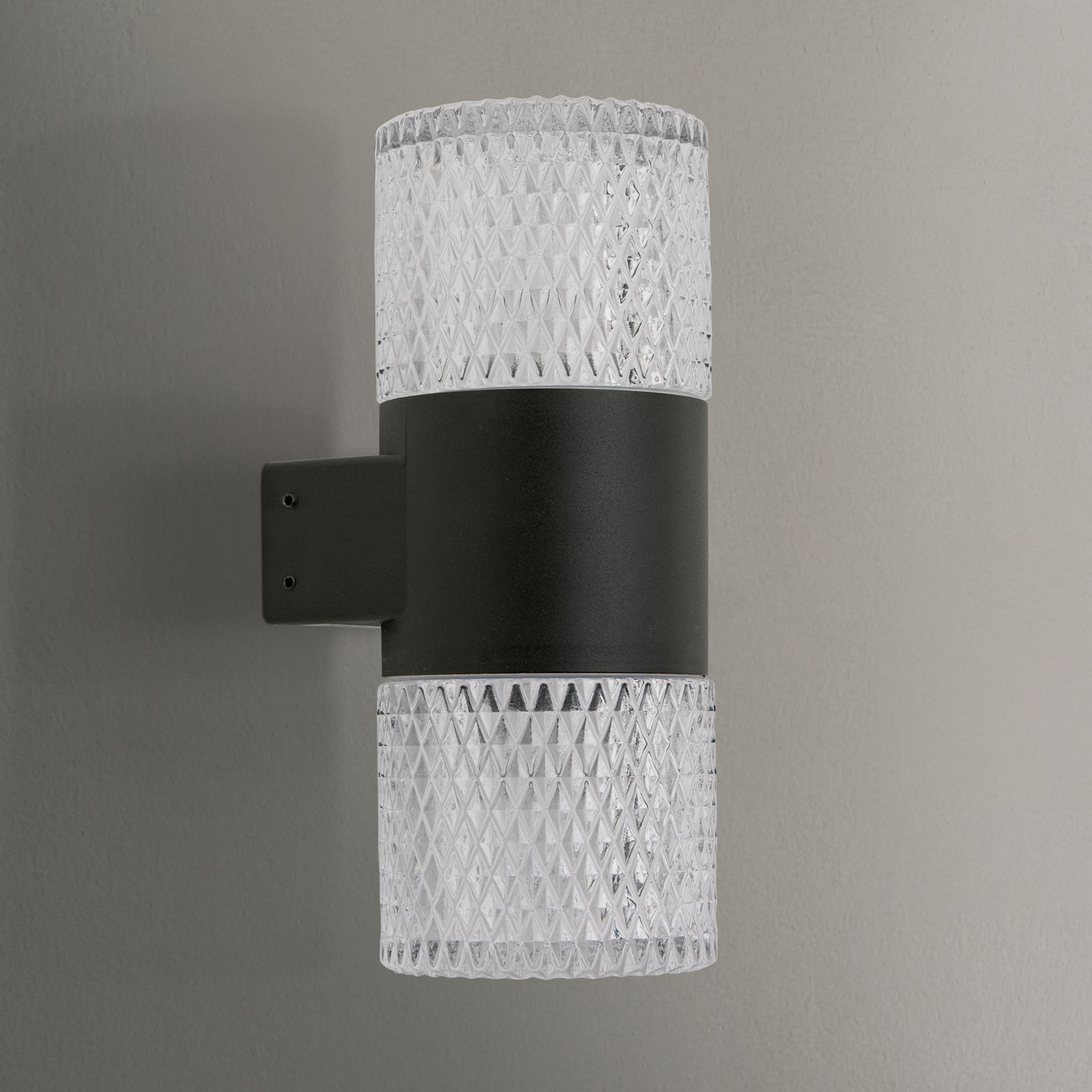 Venkovní nástěnné svítidlo ANTREX LED zaujme svým moderním a elegantním designem v klasické černé barvě. Toto 2svítidlo poskytuje fascinující rozptyl světla díky dvěma vysoce kvalitním křišťálovým sklům, které jsou umístěny nahoře i dole, a dodá vaší venkovní stěně zvláštní estetický vzhled.