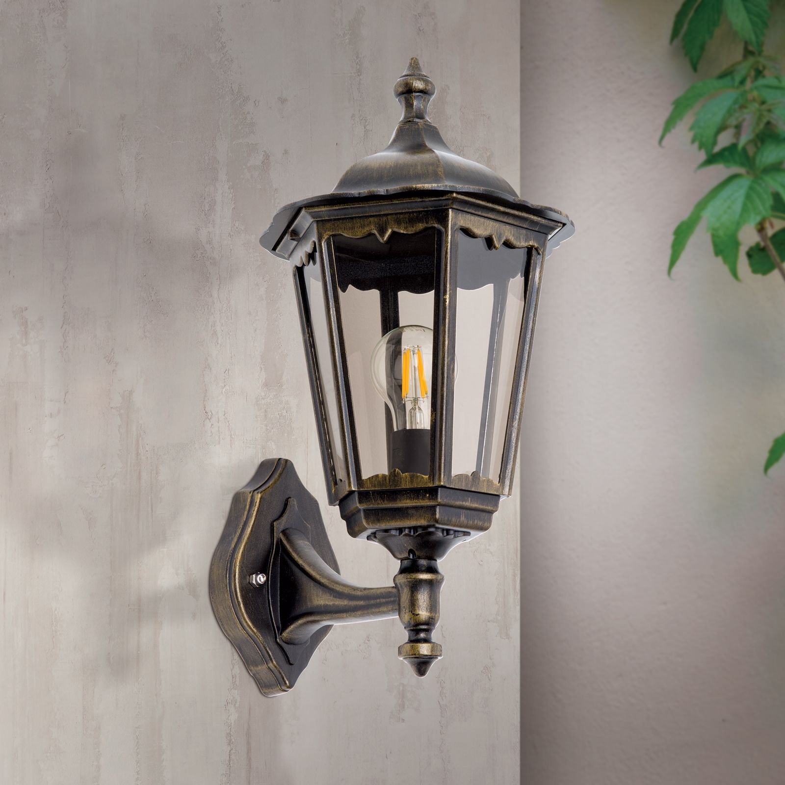 Venkovní nástěnné svítidlo PUCHBERG, černé zlato, nahoru
