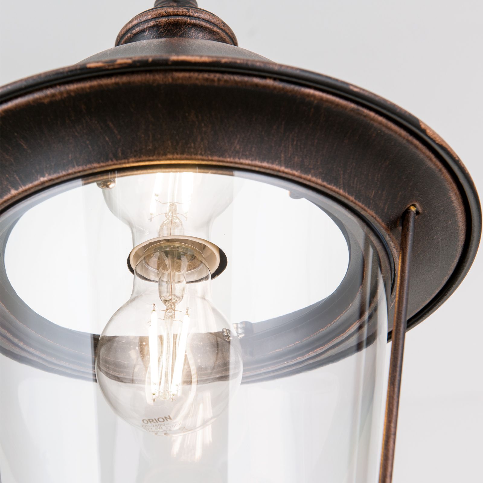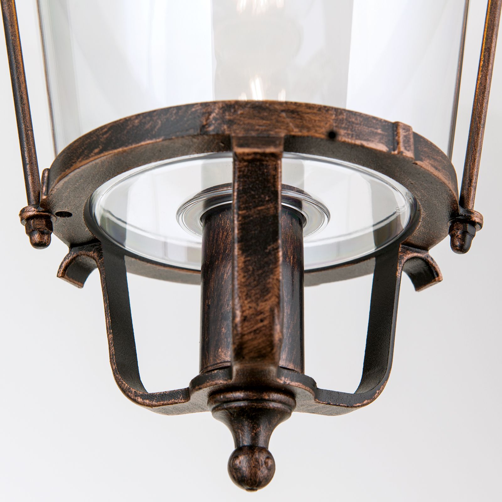 Jeho litinový design připomínající časy minulé dělá ze série venkovního osvětlení KENZO dokonalý designový prvek pro rustikální koncepty zahrady a terasy. Pod měděnou patinou je tělo lampy vyrobené z odolného litého siluminu, stínidlo lampy je opatřeno robustním průhledným akrylátovým sklem. Objímku E27 závěsného svítidla lze provozovat maximálně 75 watty, délku závěsu řetízku lze při montáži zkrátit dle potřeby.