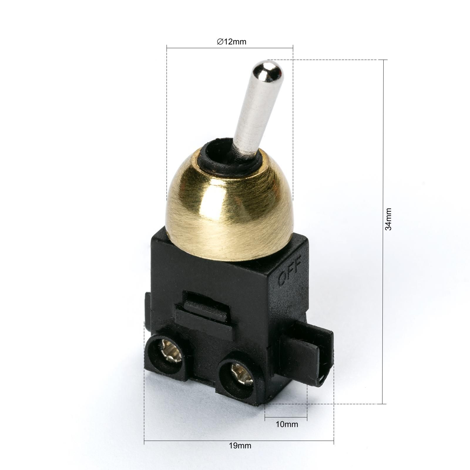 Vestavěný páčkový vypínač, Ø 12 mm, mosaz