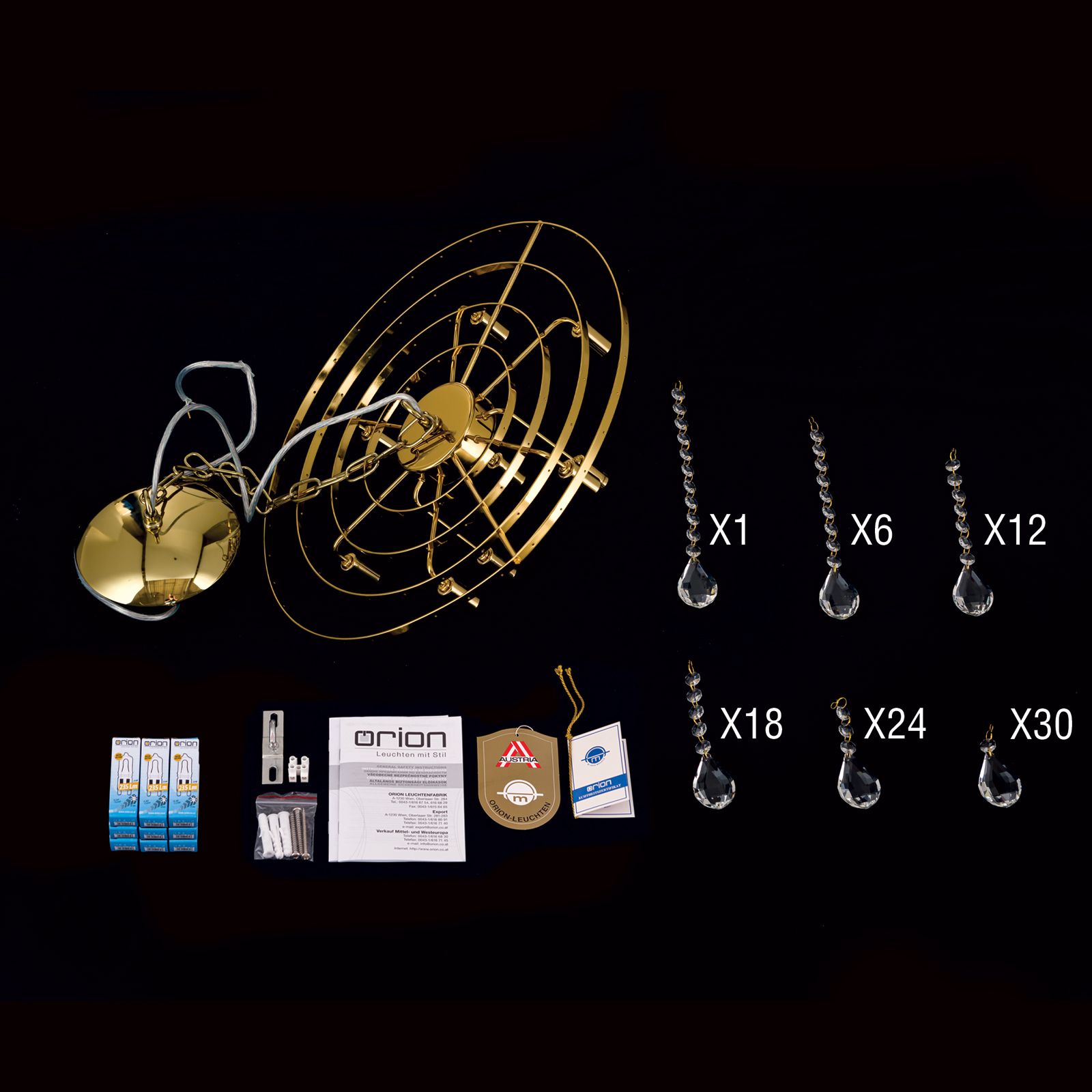 Ze stropu na řetízku visí kovový rám o průměru 45 centimetrů, na kterém ke středu kaskádovitě padají krystaly ve tvaru kapky. Lesklý rám umocňuje podmanivou jiskru křišťálových závěsů a vytváří neuvěřitelnou hru světla.
