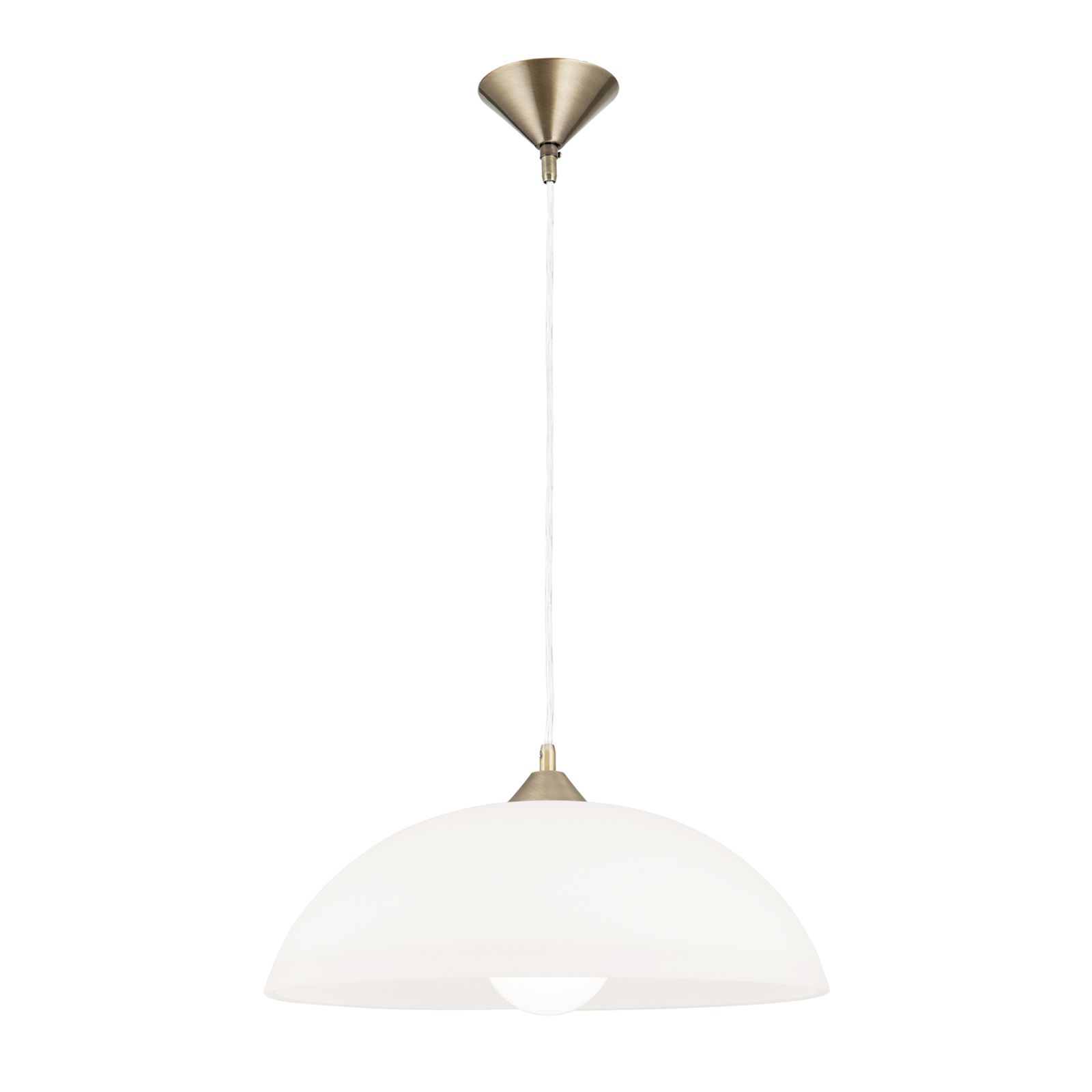Závěsné svítidlo SUSAN zaujme svým jednoduchým, skladným tvarem. Klasické půlkruhové skleněné stínidlo rozptyluje světlo rovnoměrně po celé místnosti a vytváří útulnou obytnou situaci nad jídelním nebo kuchyňským stolem. Kabel současného průhledného vzhledu vede od kužele na vrchní straně stínidla k kuželovité růžici na stropě. Patinovaný povrch ocelového rámu odráží vysoce kvalitní provedení. Pro patici E27 se doporučuje matná, kulatá kulová lampa s maximálním výkonem 60 wattů. Pokud je použita LED lampa, šetří se elektřina a peníze.