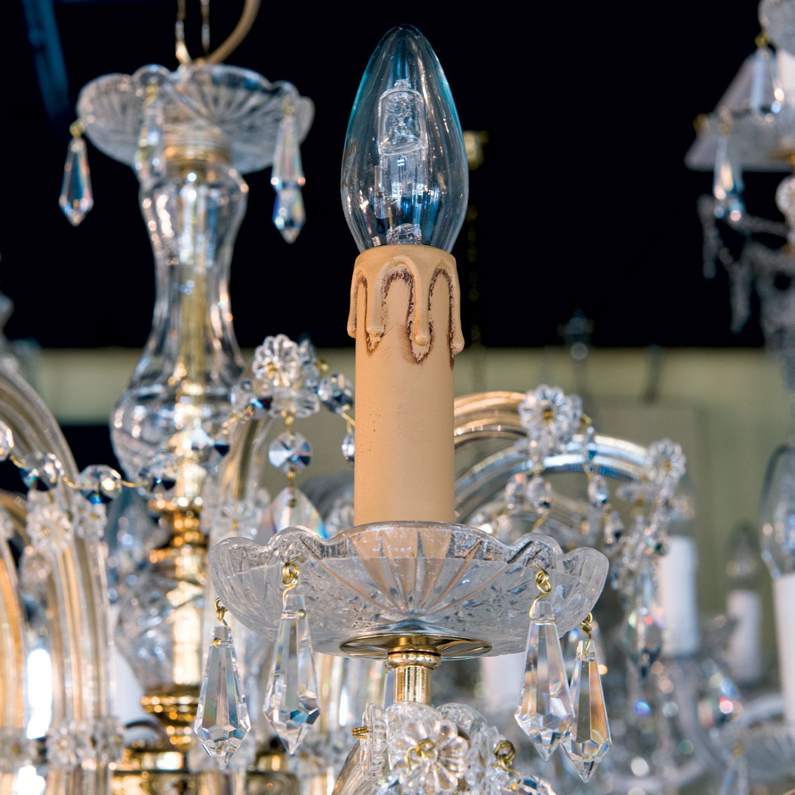 Candle Holder with Droplet, E14, 100 mm, ancient