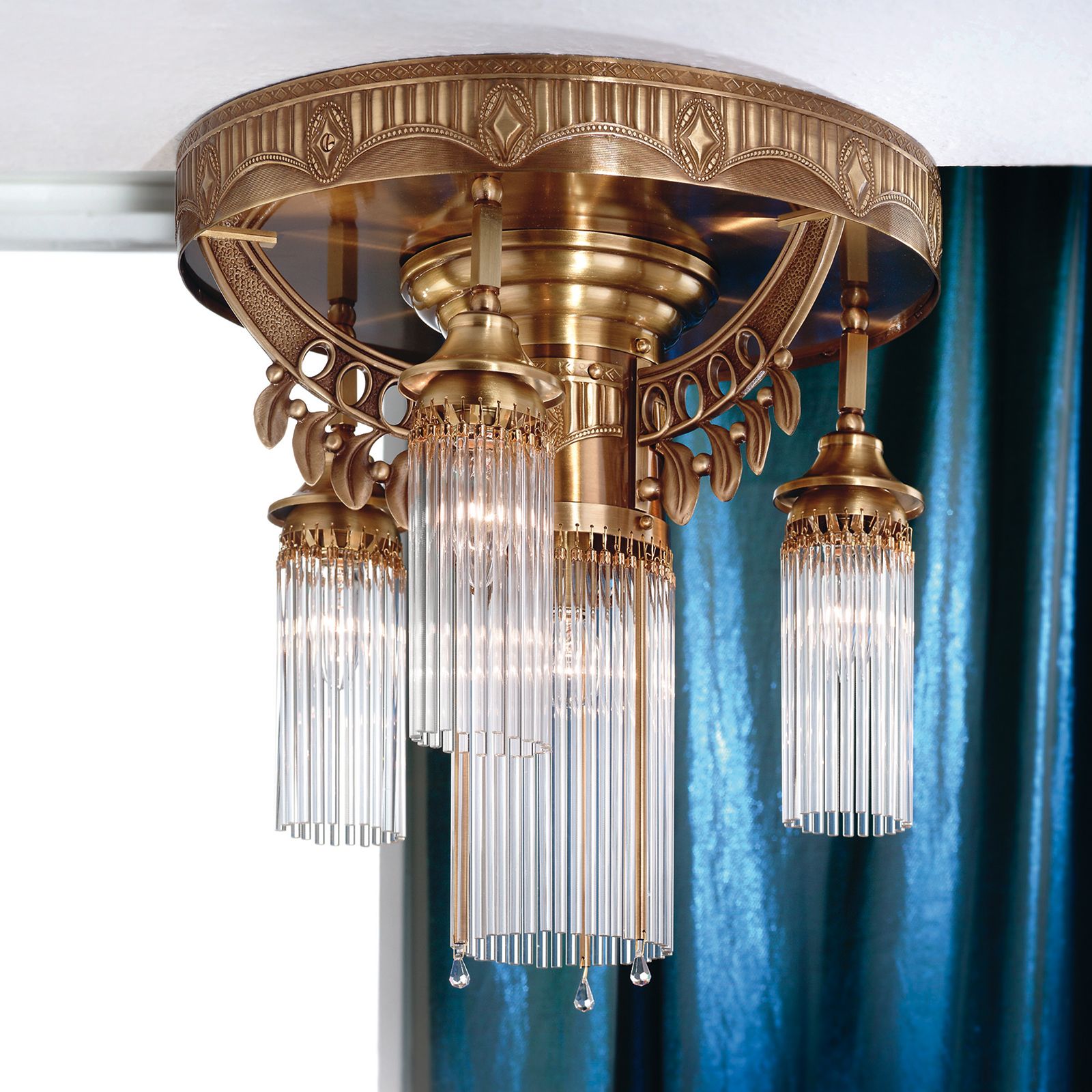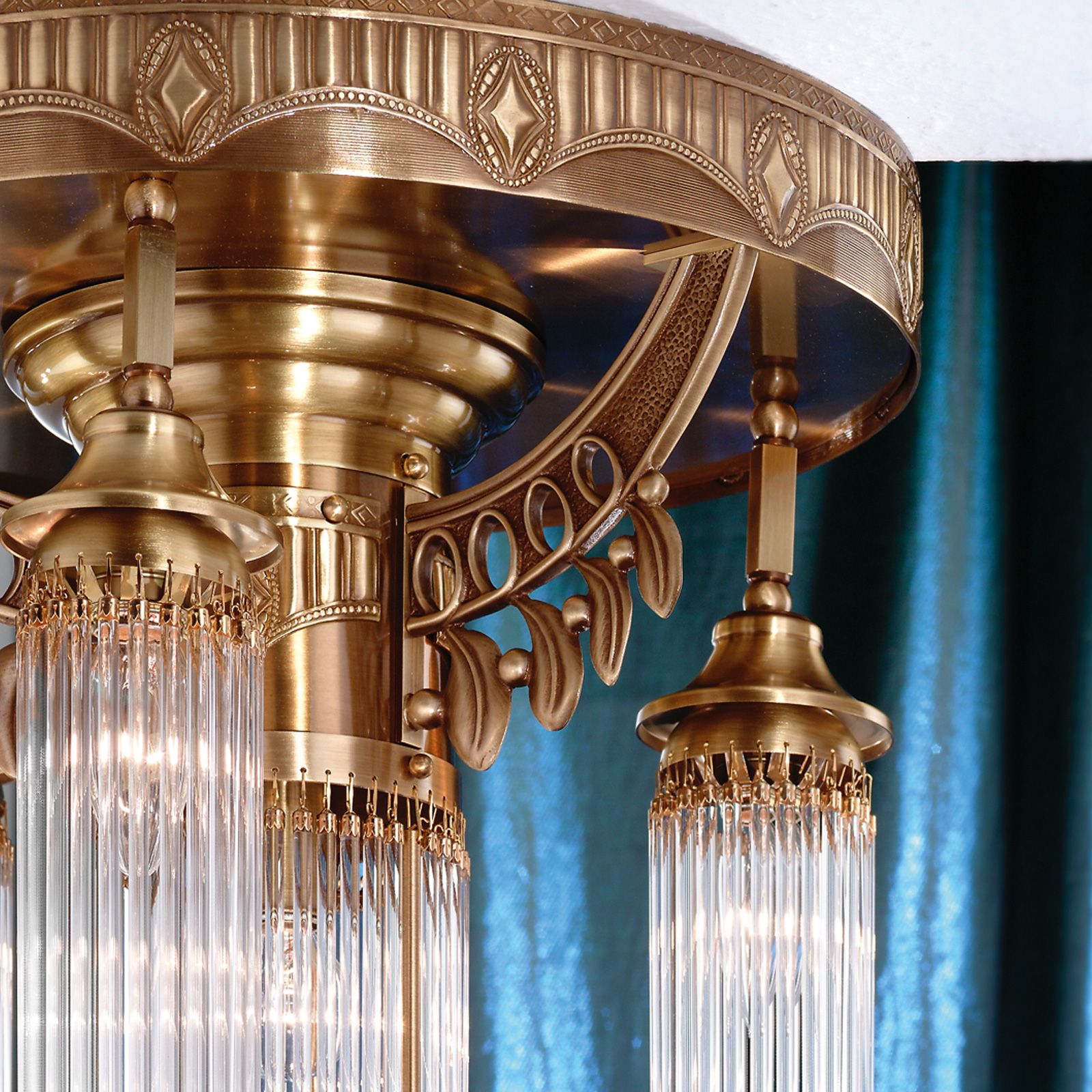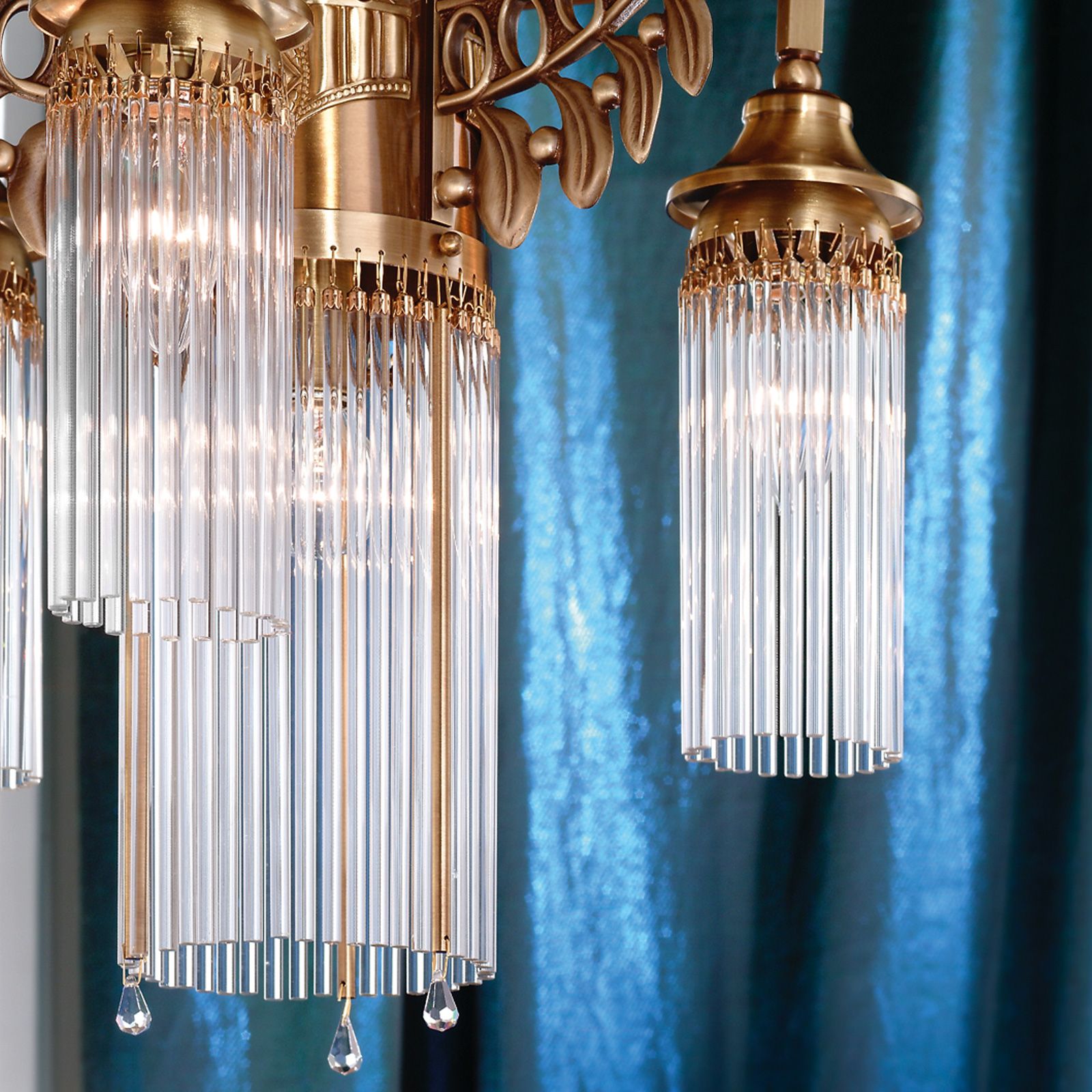 Ceiling chandelier ADELE, 4-flames, antique brass, with glass rods