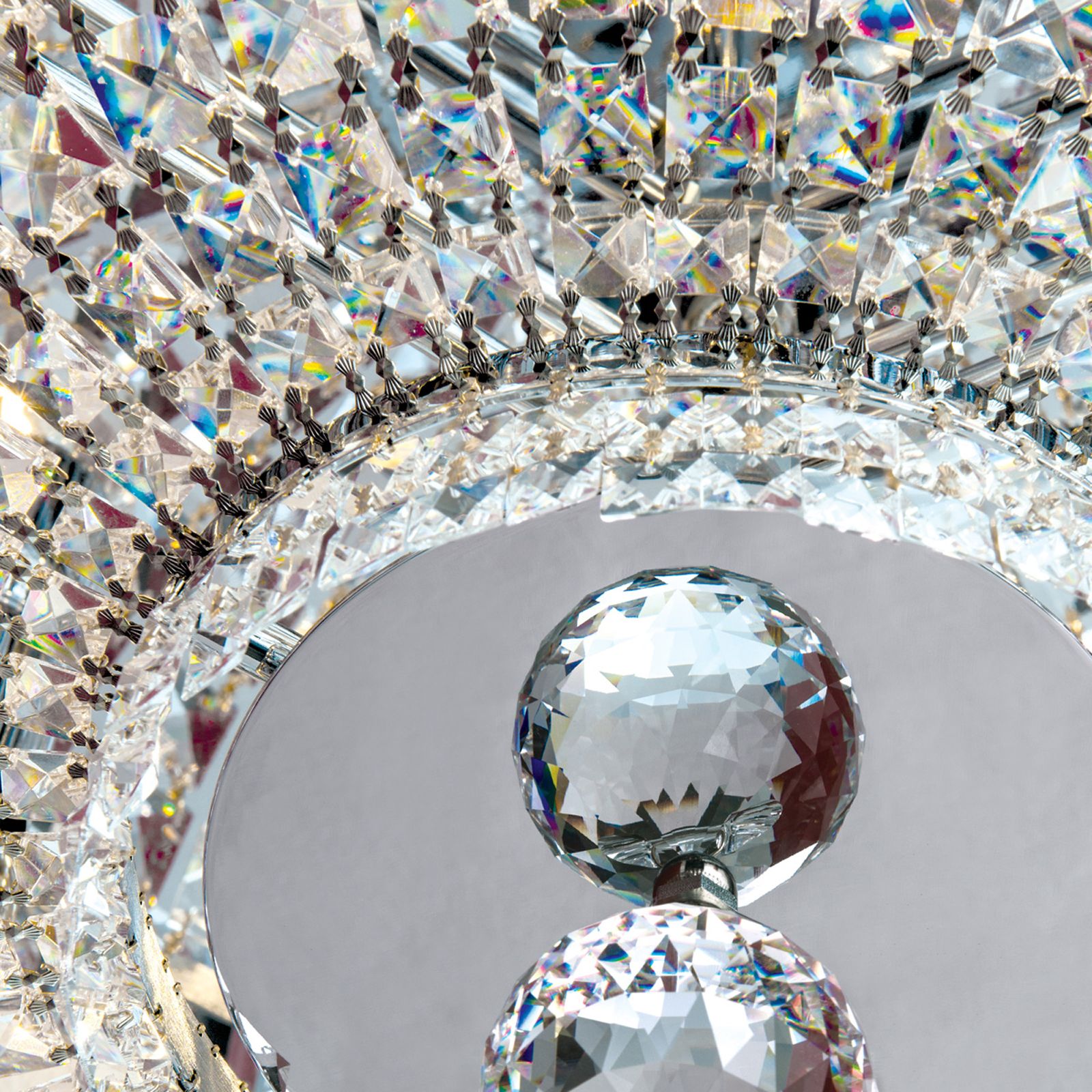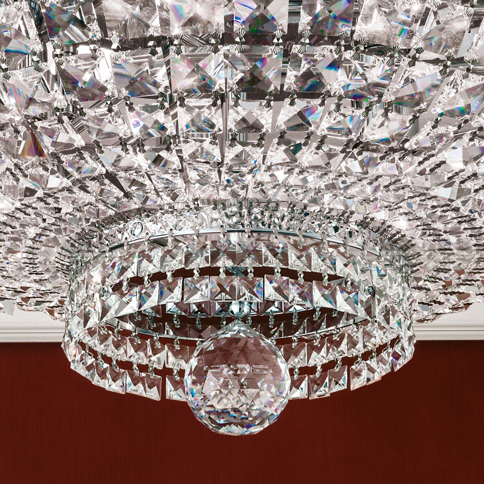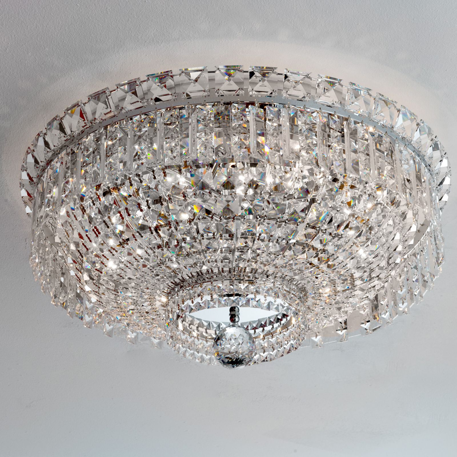 This ceiling chandelier is available in finishes: chrome, gold (24-carat). This product is a shipping item.