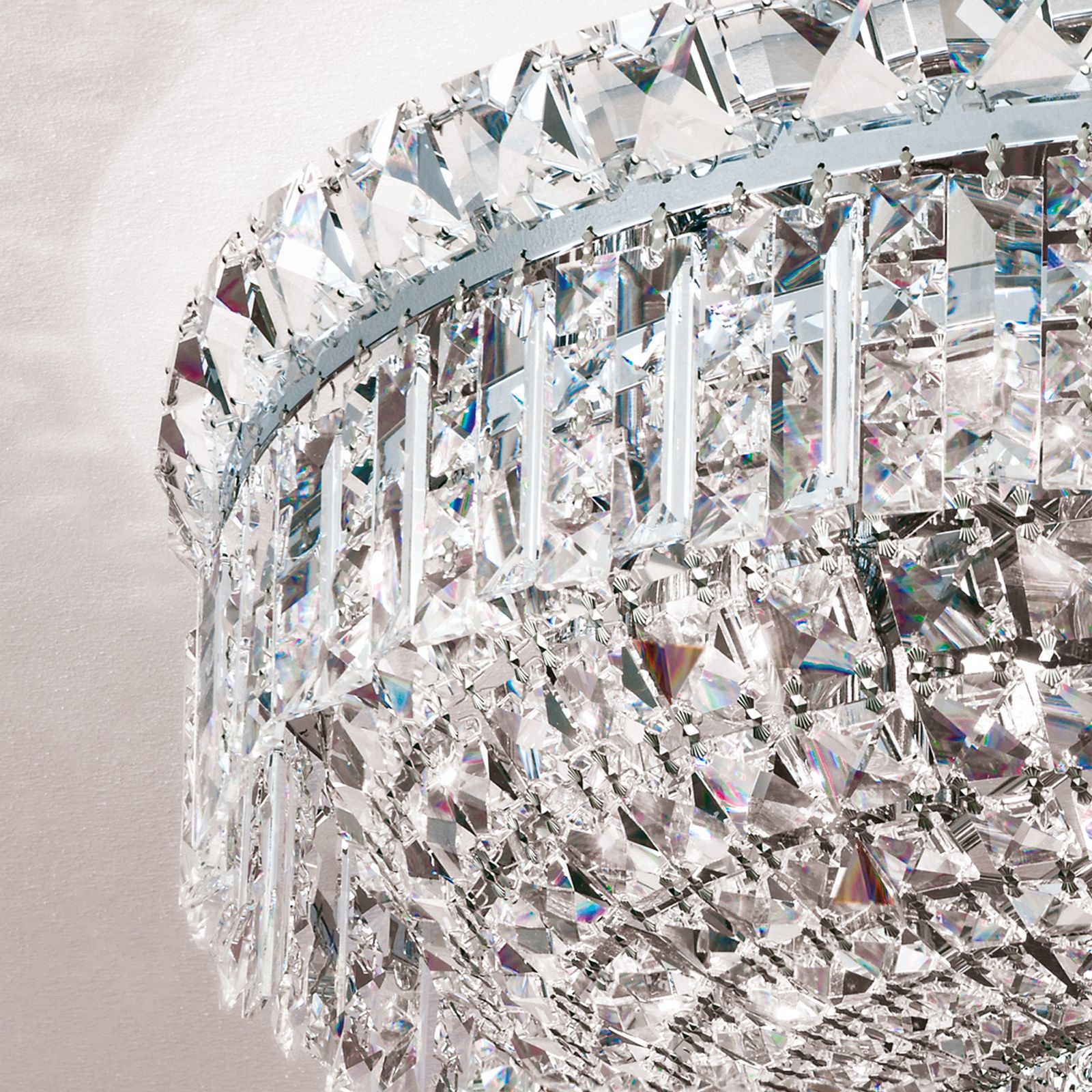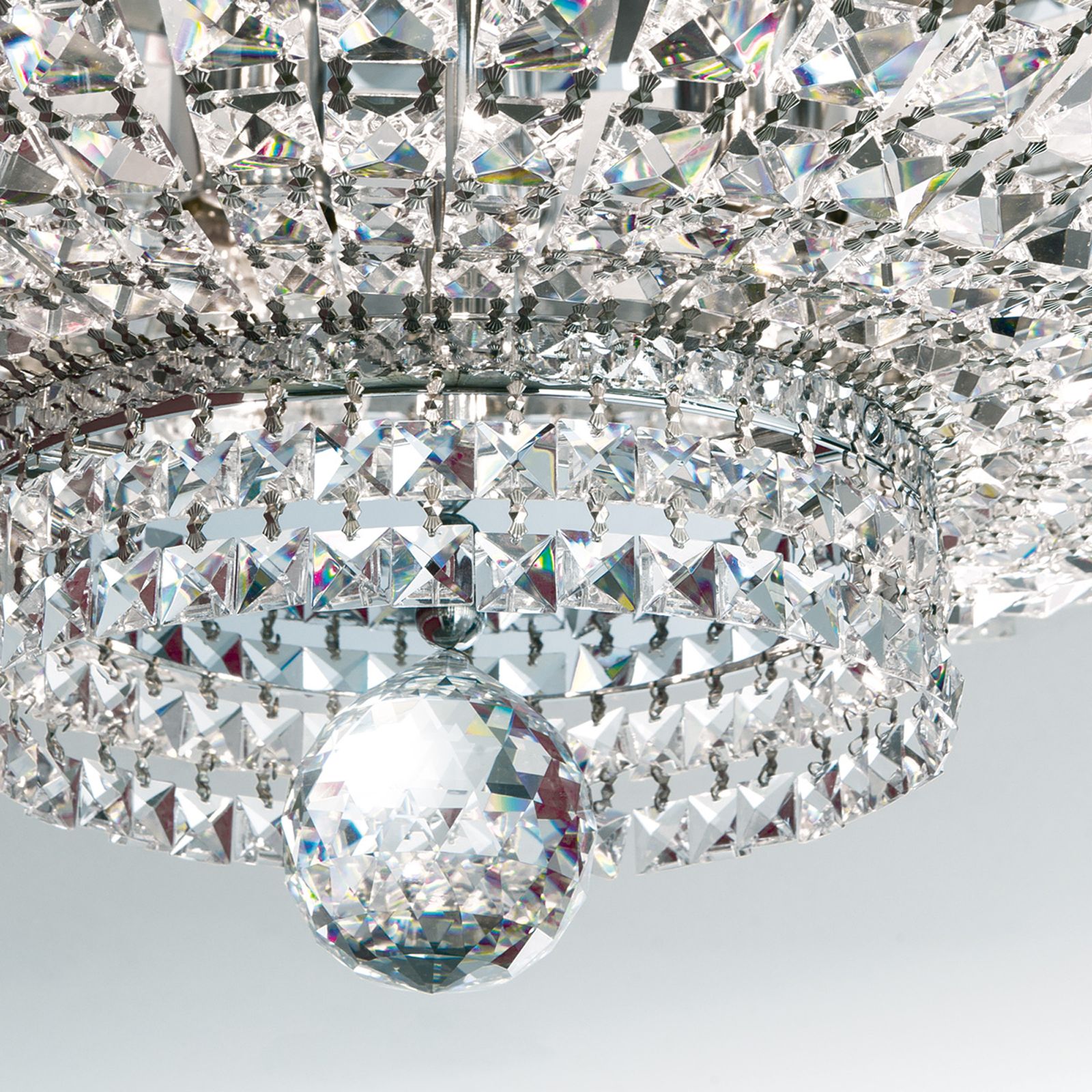 For those who appreciate a regal, splendid ambience, ceiling chandelier AMBASSADOR with its exquisite crystal jewellery will convince even when switched off. Ideal for classically furnished interiors, it can contribute to illuminating a living room all the while turning into its main eye-catcher.