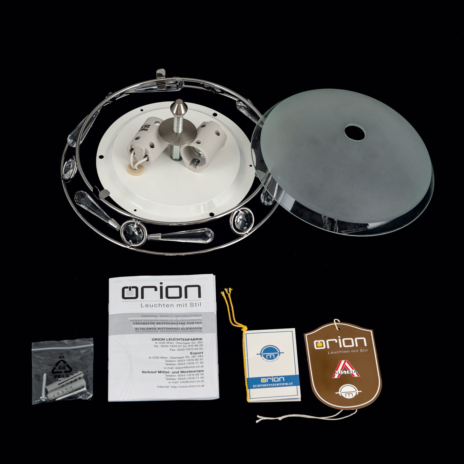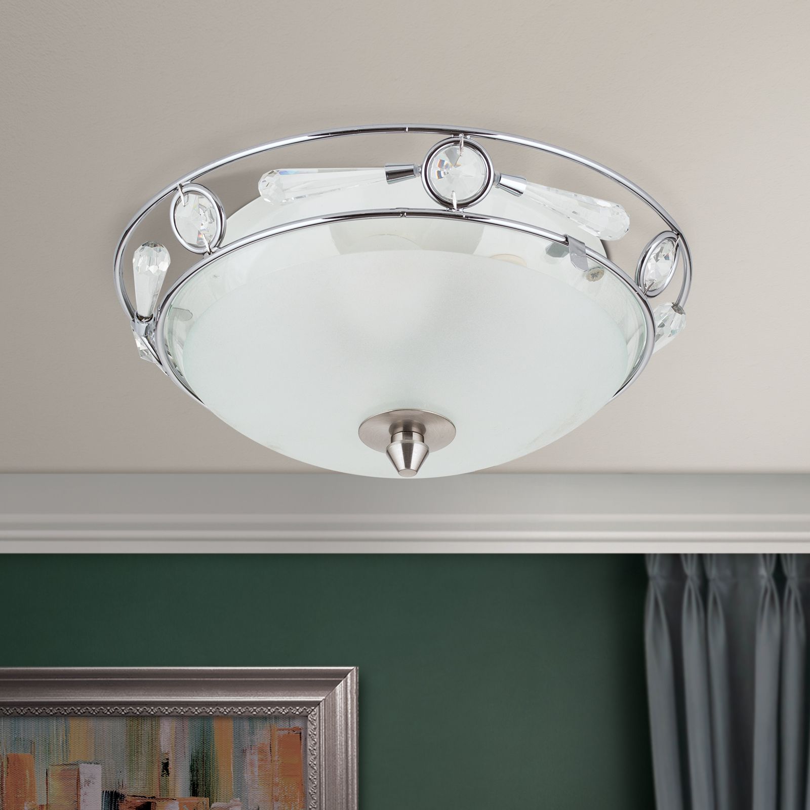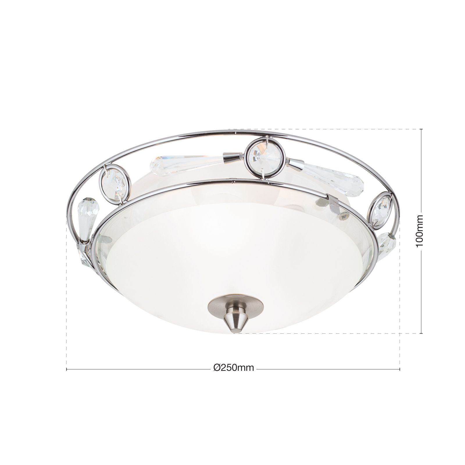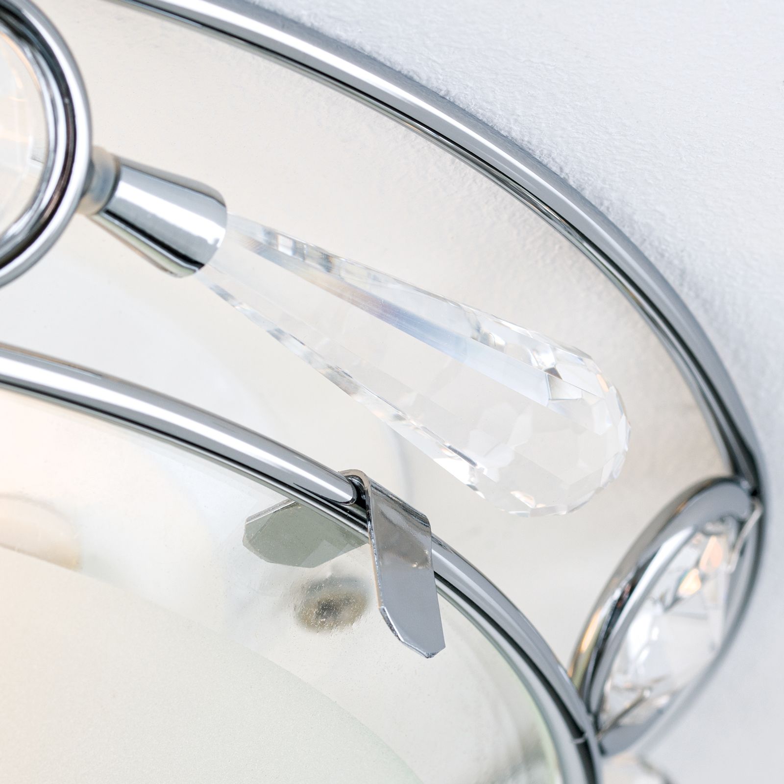 The diameter of 25 cm makes it the ideal choice for living rooms, bedrooms or hallways. But the real beauty is in the detail: at the top of the light, sparkling crystals adorn the design and add a touch of luxury.