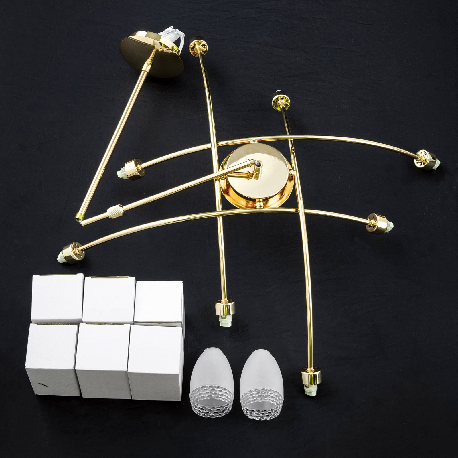 Chandelier CARLA, 8-flames, shiny brass with satin diffused glasses