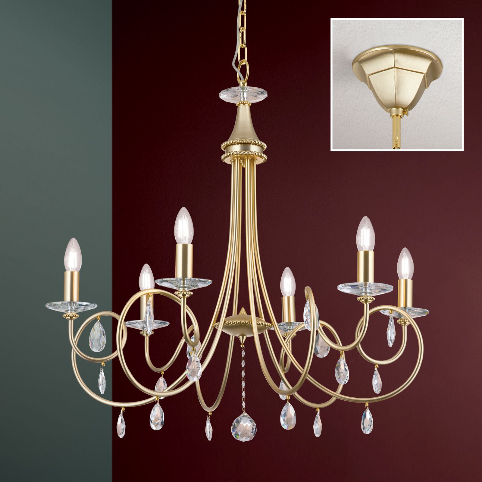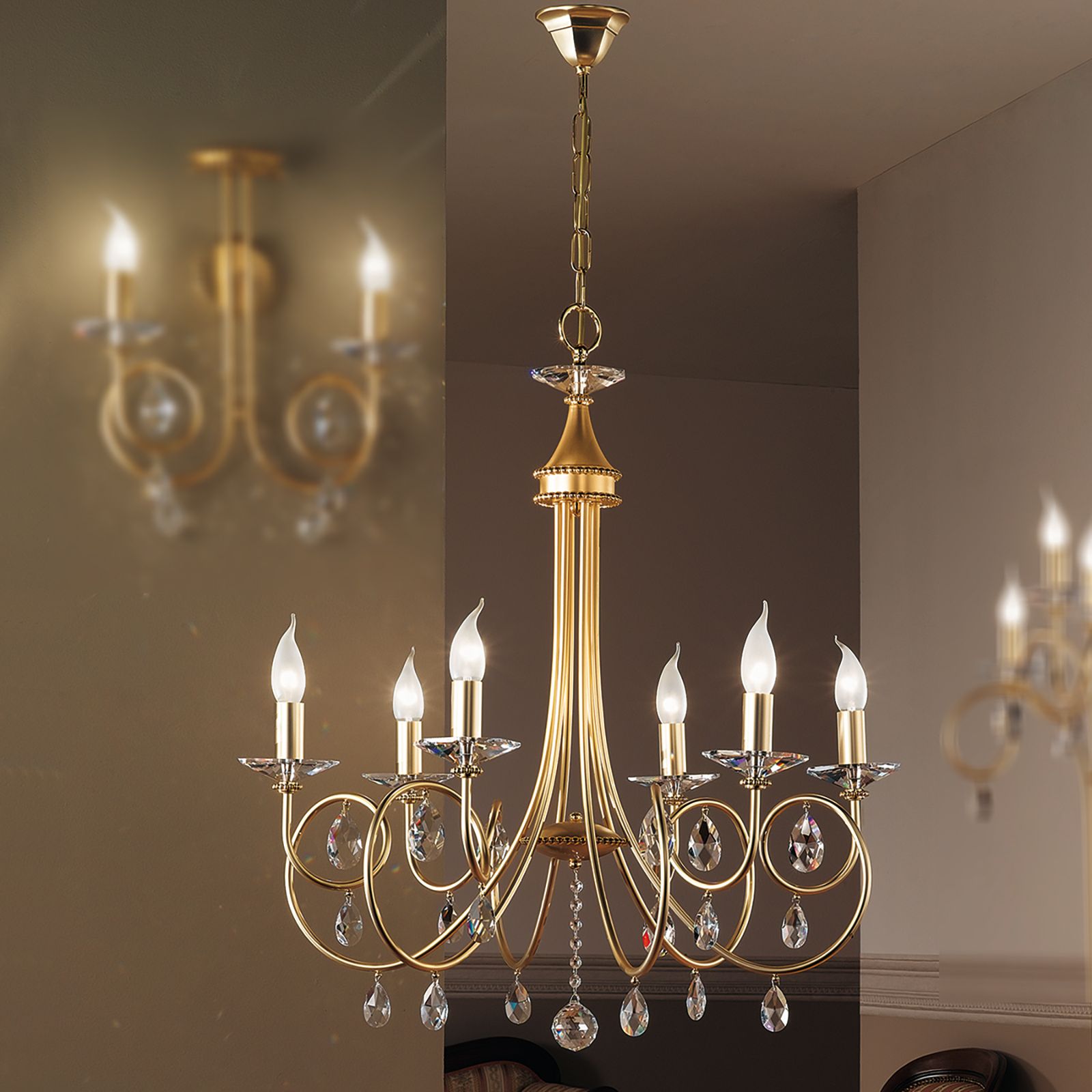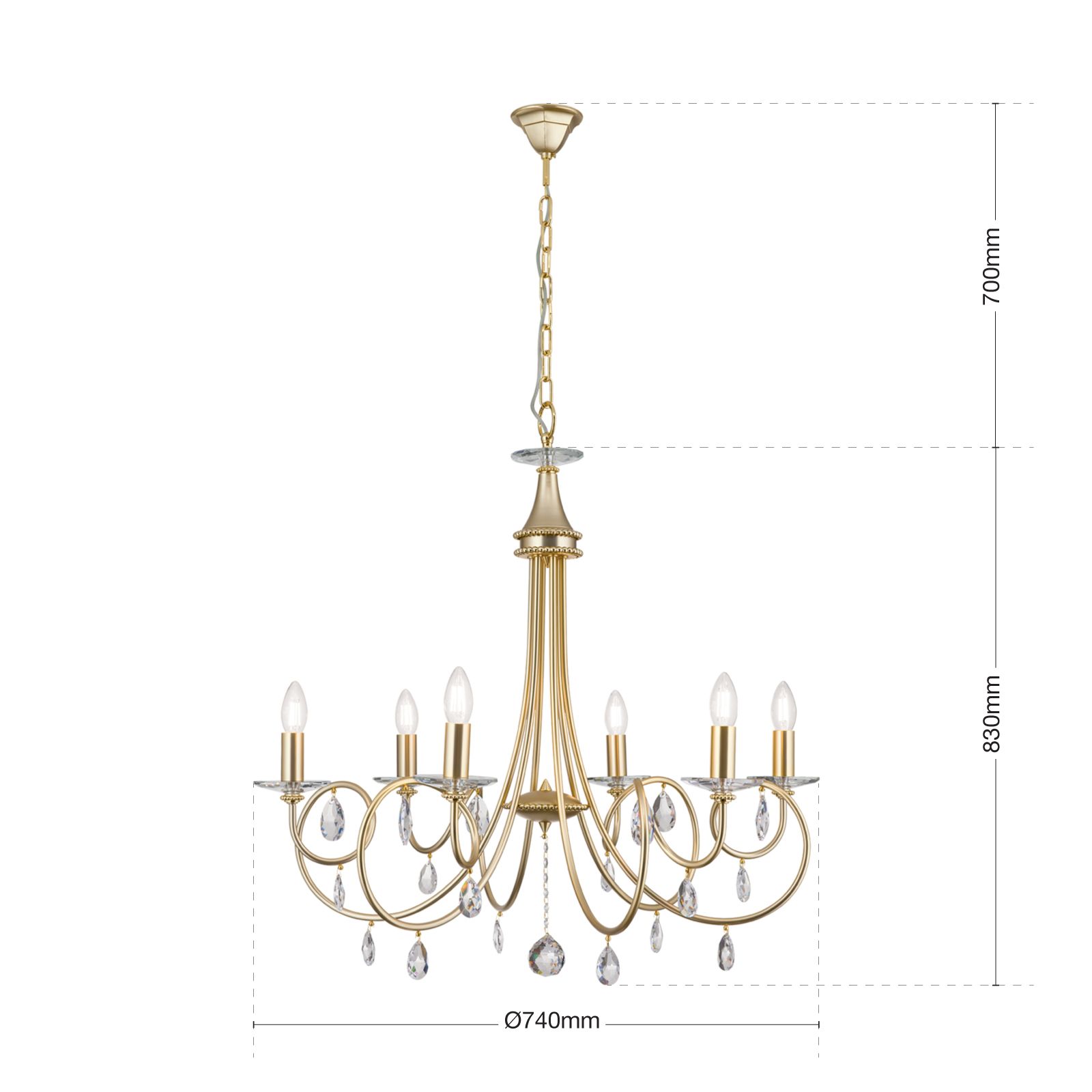 Chandelier GIADA, 6-flames, gold matt