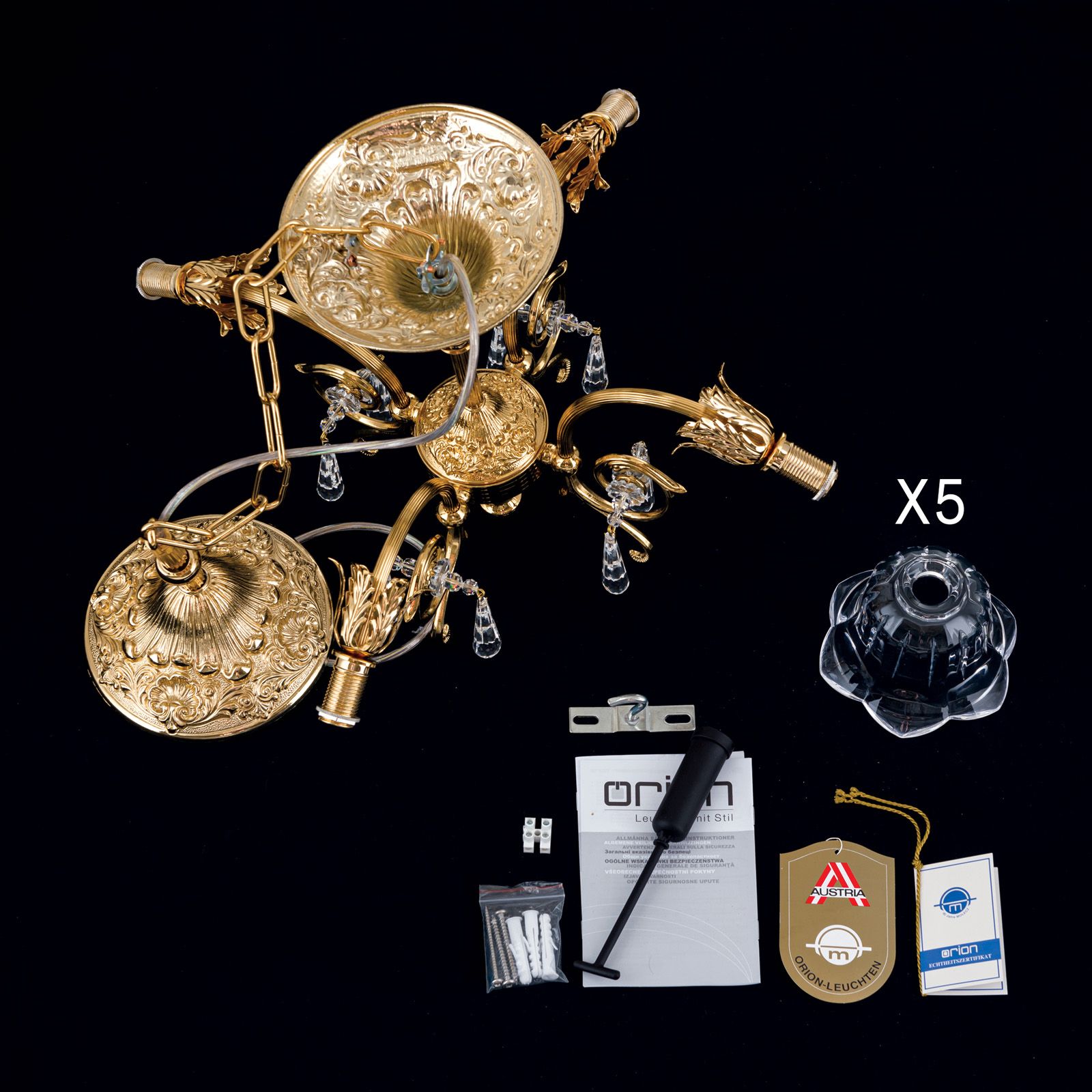 Chandelier LA BOHEME, 5 lamps, 24K gold plated